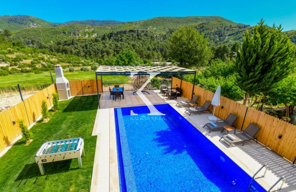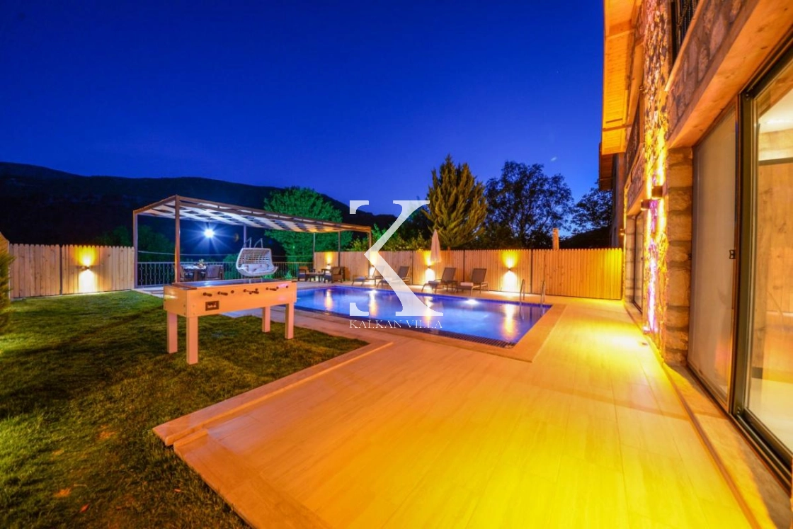 Villa Daffy’nin geniş havuz terası ve bahçesi, tatilinizi keyifli ve eğlenceli hale getirecek şekilde özenle tasarlanmıştır. Bahçede bulunan langırt ve salıncak eğlenceli anlar sunarken, ahşap çitlerle çevrili korunaklı havuz alanı mahremiyetine önem veren misafirler için rahat ve güvenli bir ortam sağlar. Şehrin gürültüsünden uzak, huzurlu ve doğa ile iç içe bir tatil arayanlar için Villa Daffy mükemmel bir tercihtir.