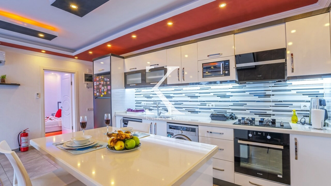 Deniz manzaralı ve modern dizayn edilmiş salonda;