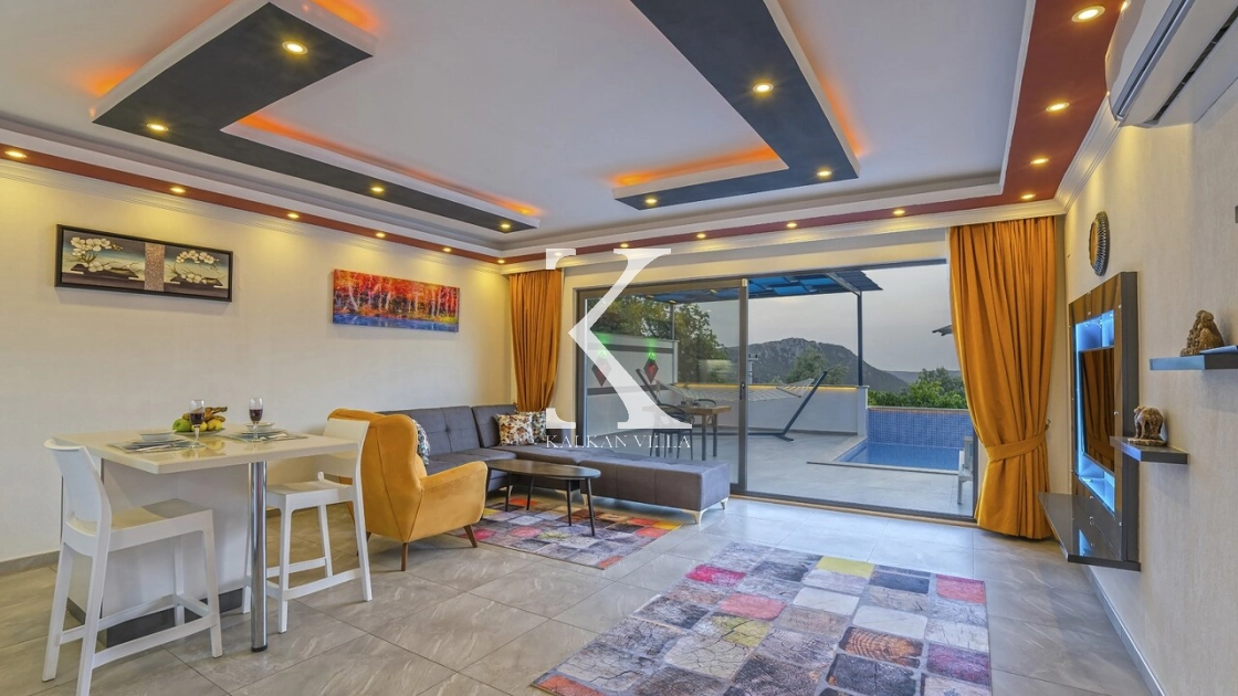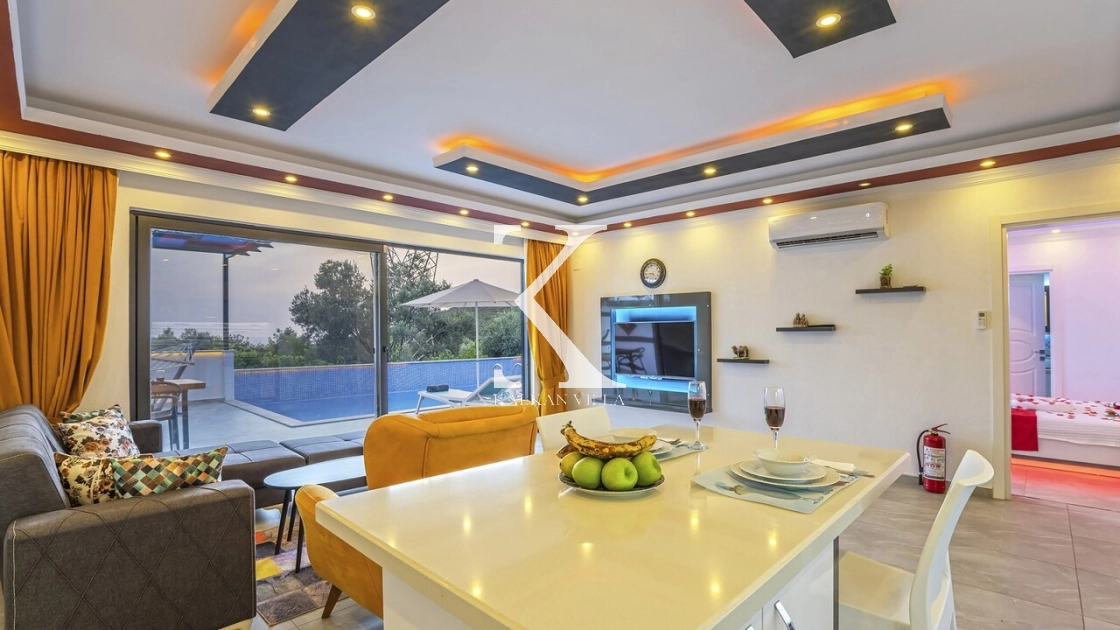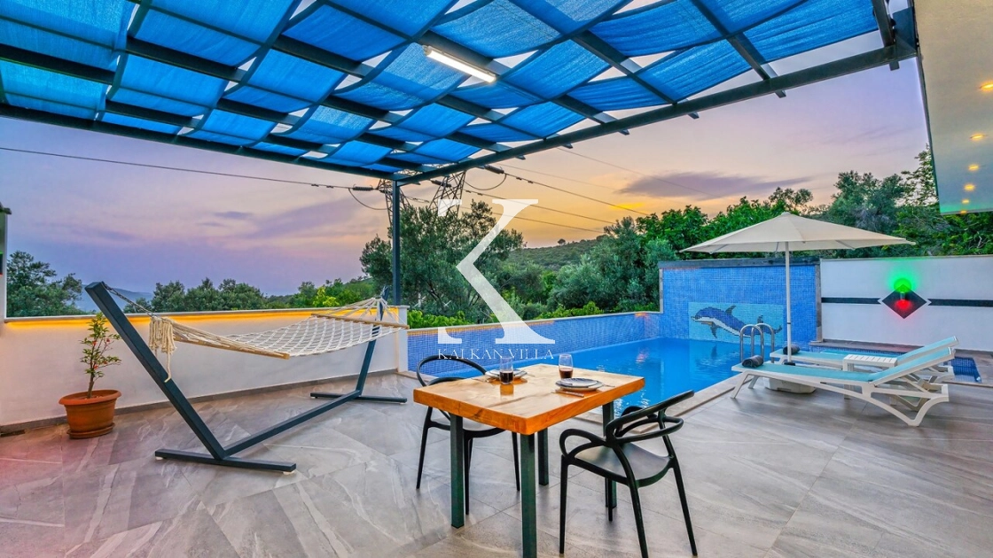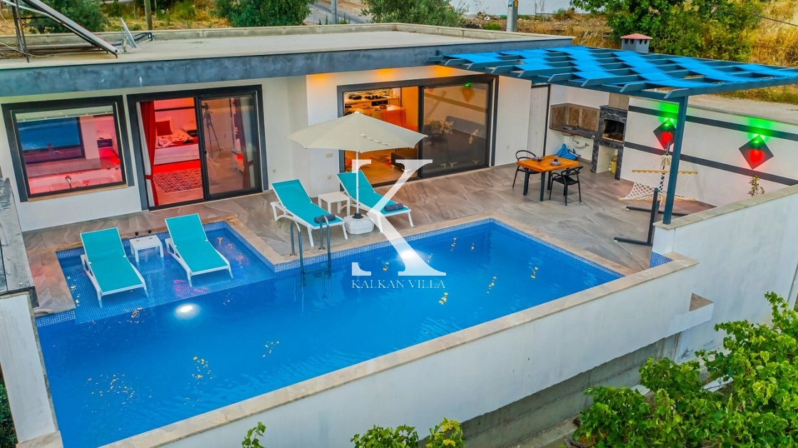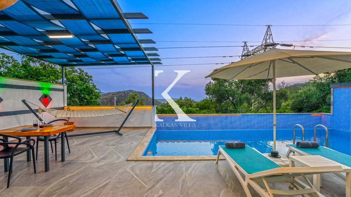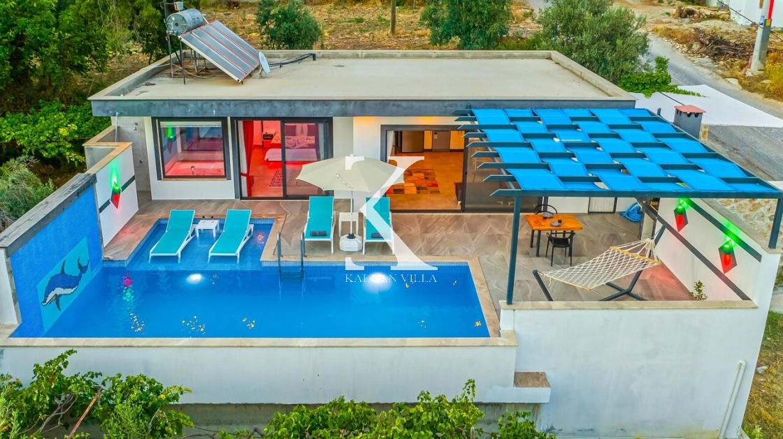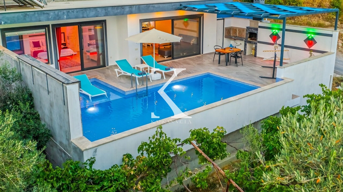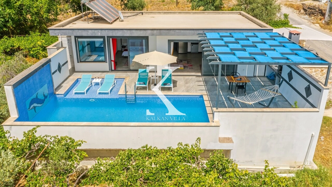 Villa Damla Duo, Kalkan’ın Üzümlü Bölgesi’nde, doğayla iç içe ve şehir gürültüsünden uzak bir konumda yer alan, 1 yatak odalı ve 2 kişilik konaklama kapasitesine sahip özel bir balayı villasıdır. Mahremiyete önem veren çiftler için tamamen korunaklı olarak tasarlanan villa, huzurlu ve romantik bir tatil ortamı sunar.