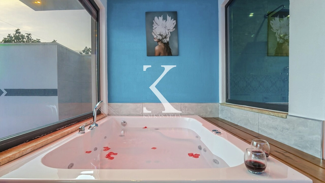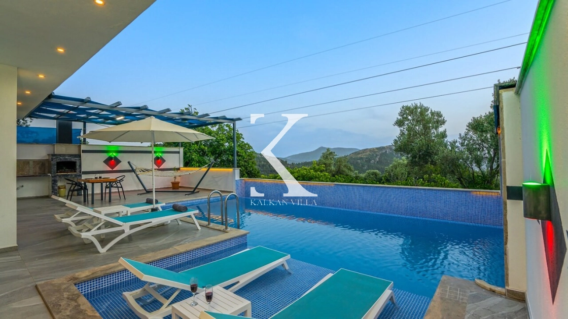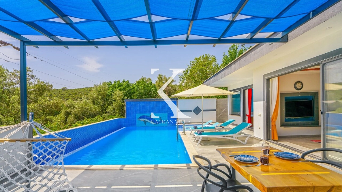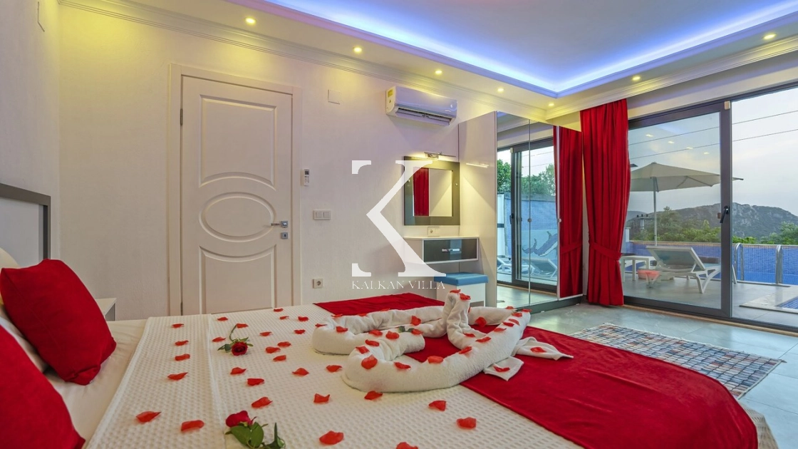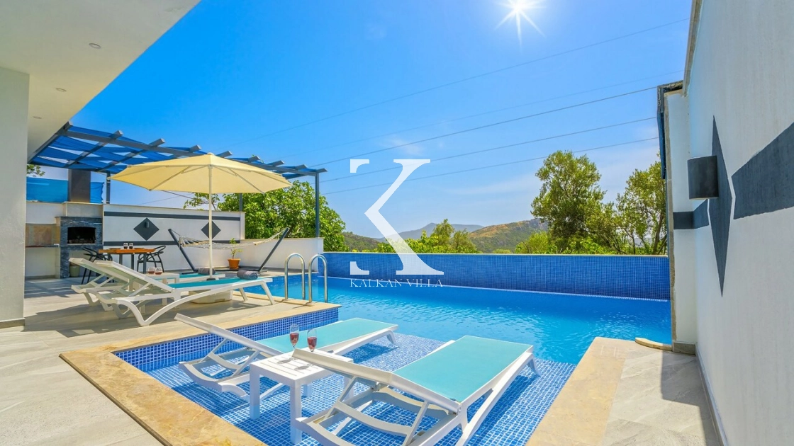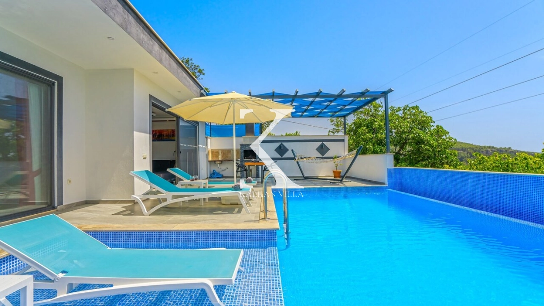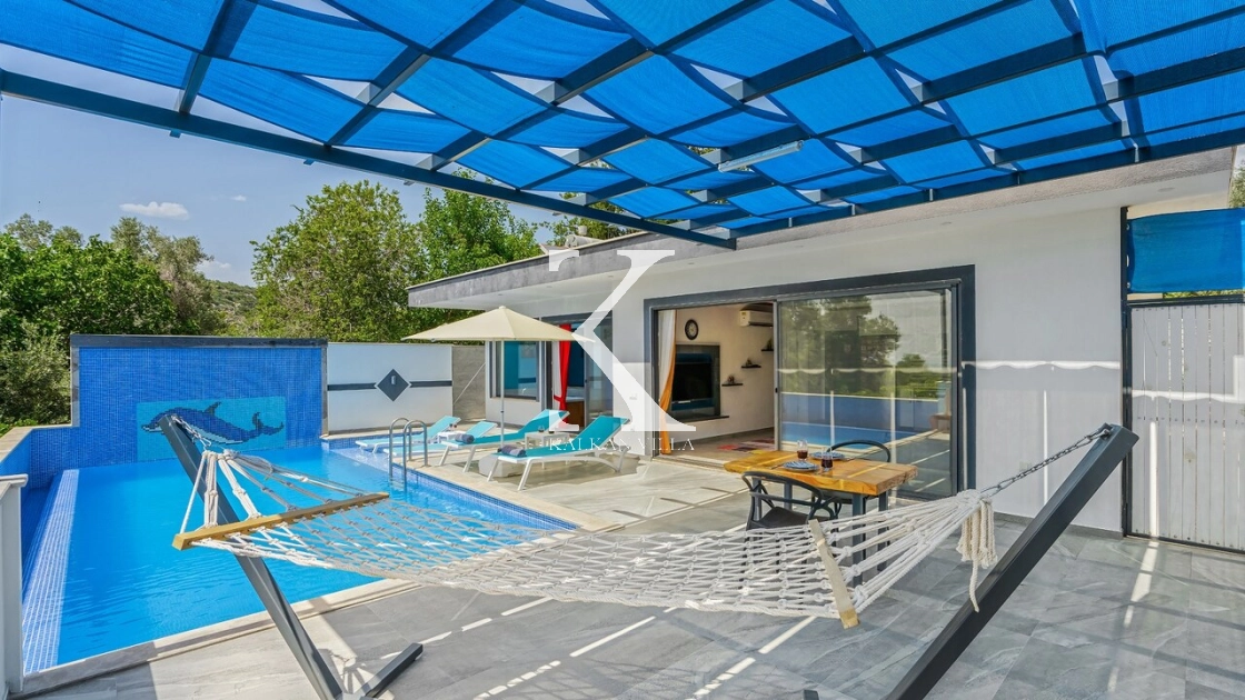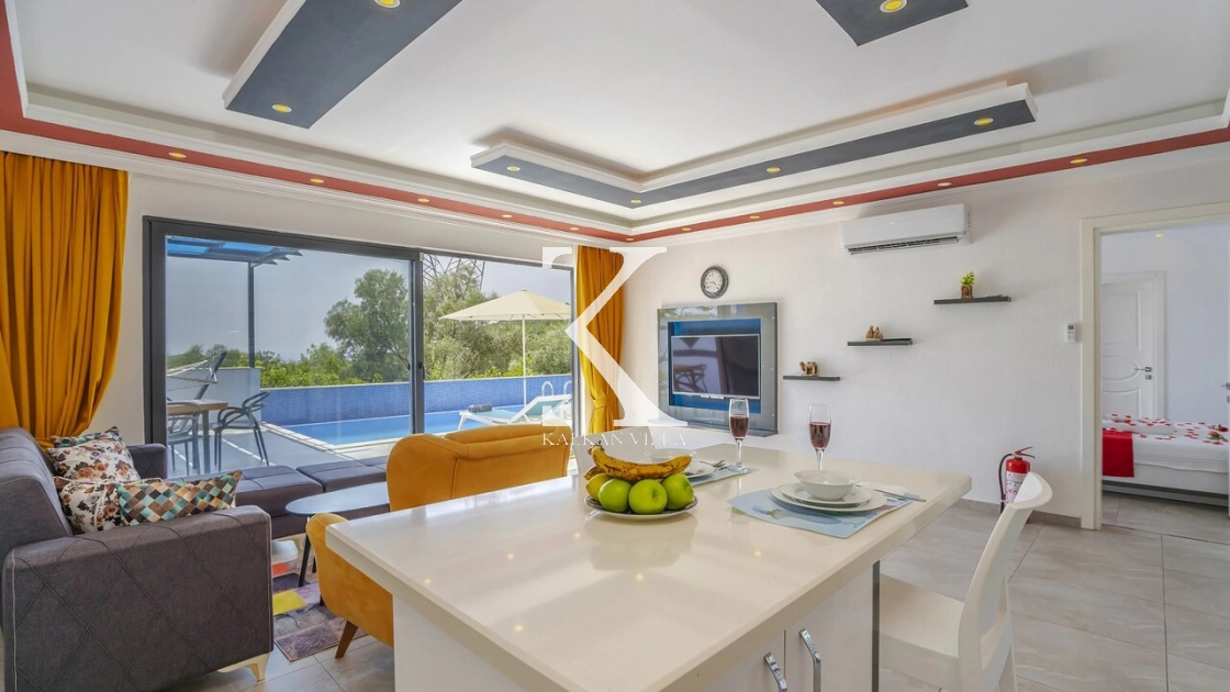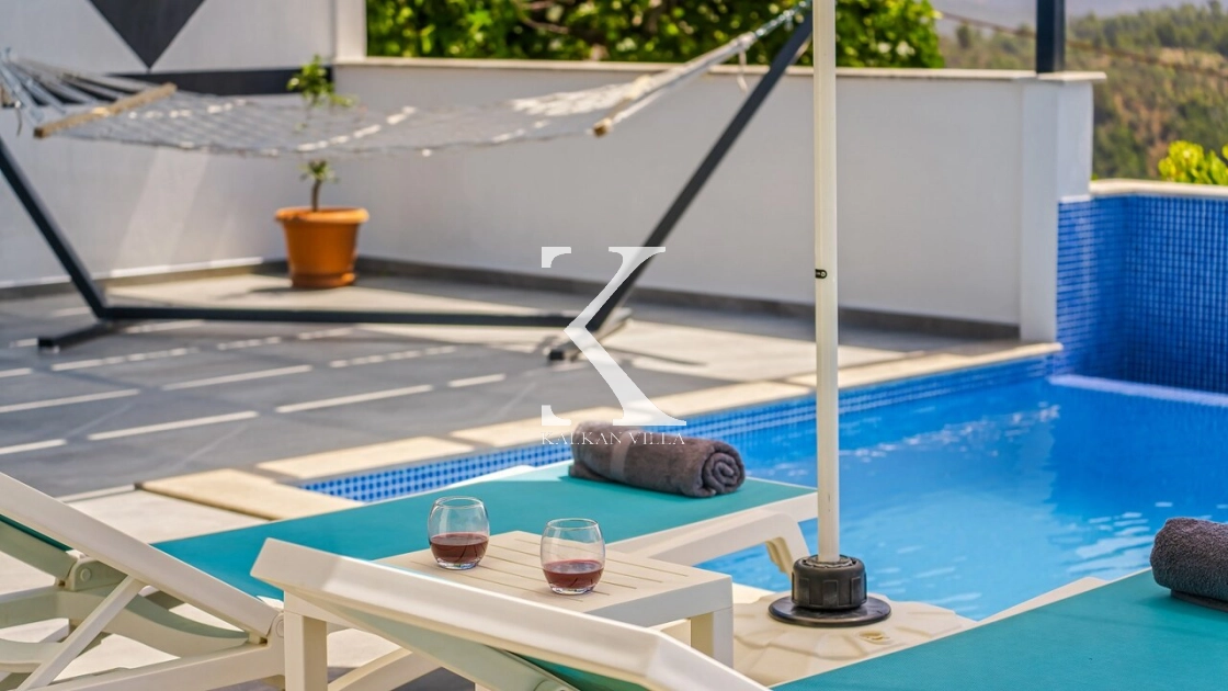 Villa Damla Duo, Kalkan’ın Üzümlü Bölgesi’nde, doğayla iç içe ve şehir gürültüsünden uzak bir konumda yer alan, 1 yatak odalı ve 2 kişilik konaklama kapasitesine sahip özel bir balayı villasıdır. Mahremiyete önem veren çiftler için tamamen korunaklı olarak tasarlanan villa, huzurlu ve romantik bir tatil ortamı sunar.