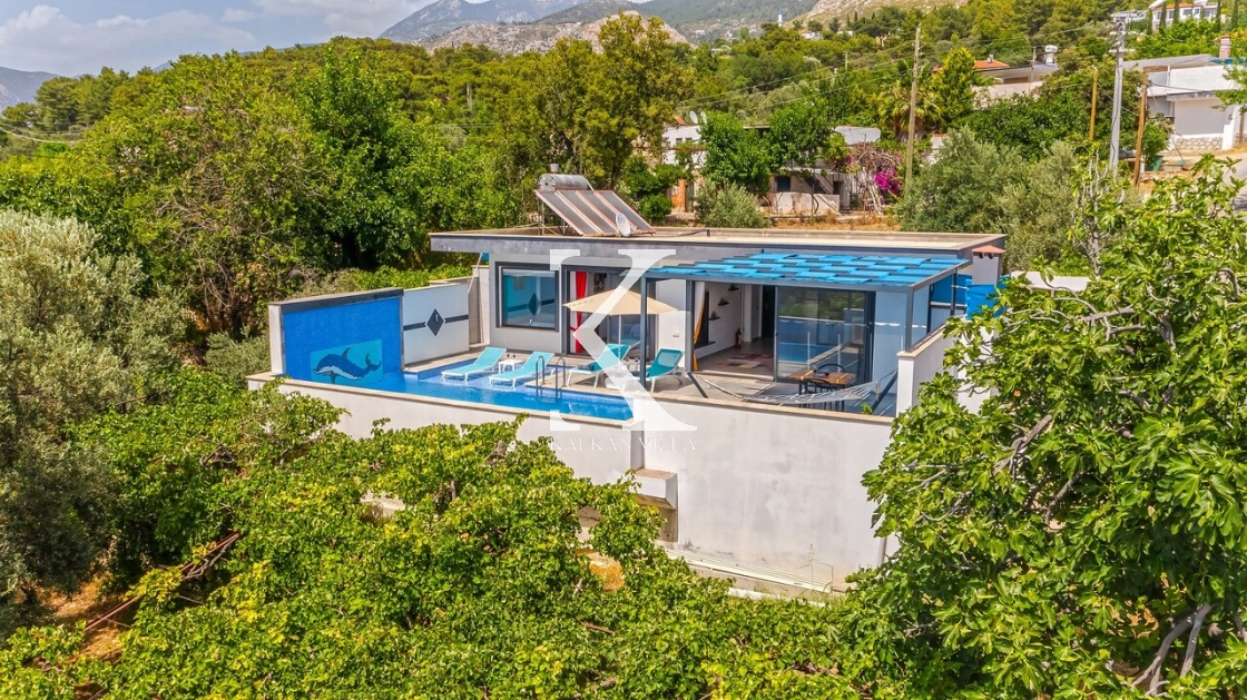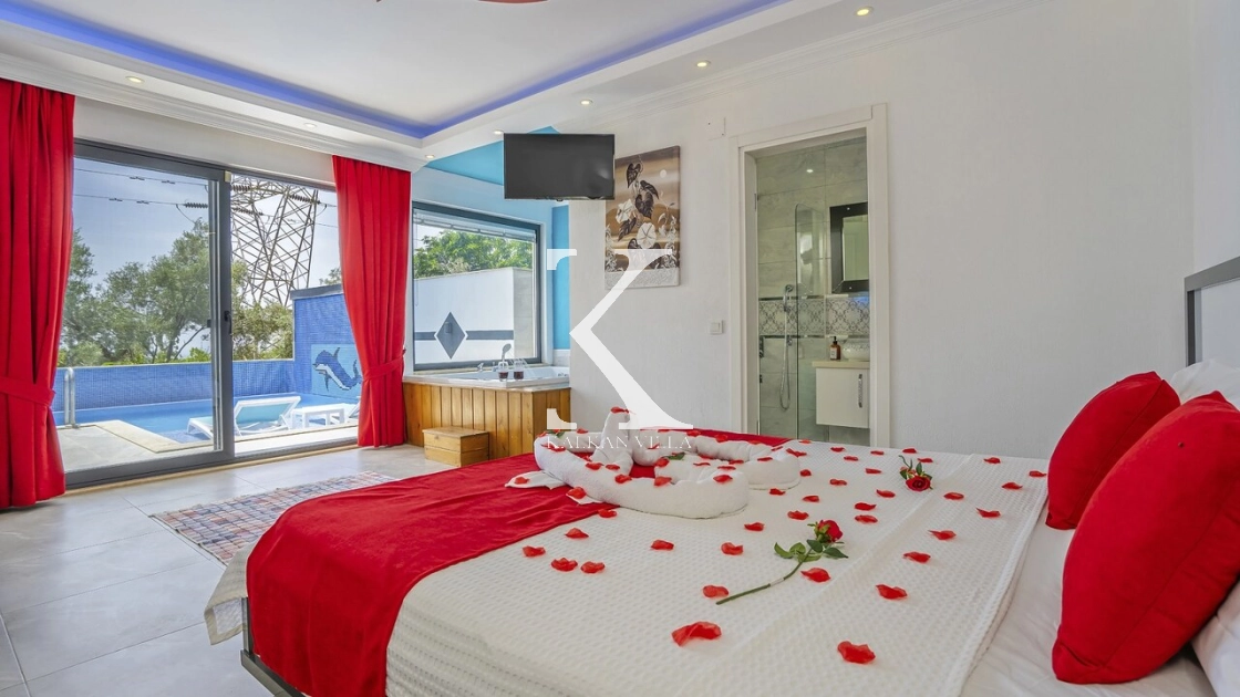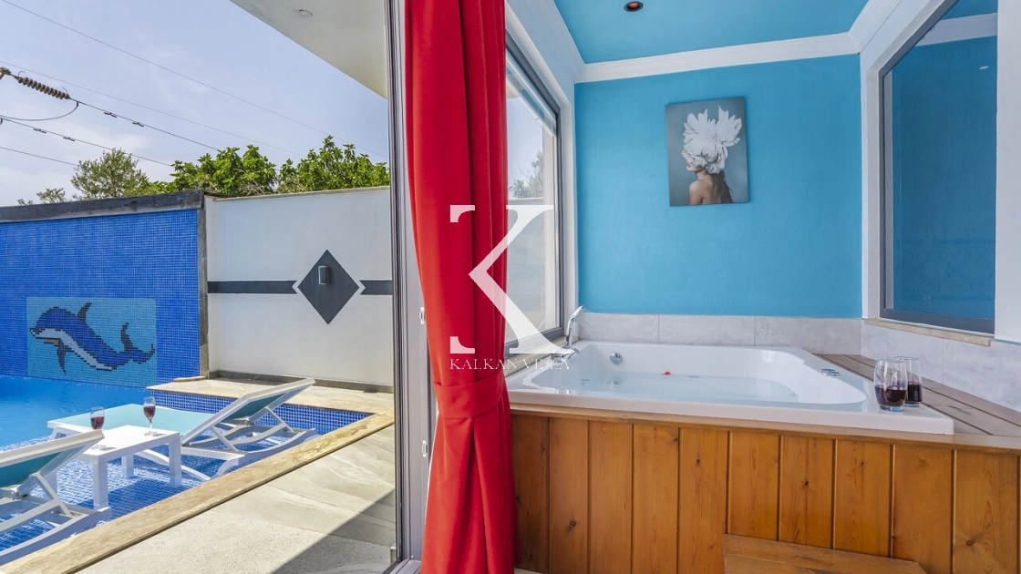 Villanın korunaklı bahçesinde; özel yüzme havuzu, şezlonglar, hamak, oturma köşesi, yemek masası ve barbekü alanı bulunmaktadır. İç mekânda ise jakuzili yatak odası yer almakta olup, konfor ve rahatlık ön planda tutulmuştur. Doğa ve deniz manzarasına sahip Villa Damla Duo, özellikle balayı çiftleri için unutulmaz bir tatil deneyimi vadeder.