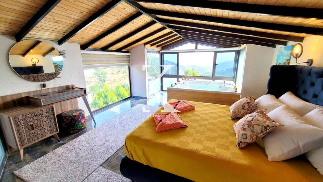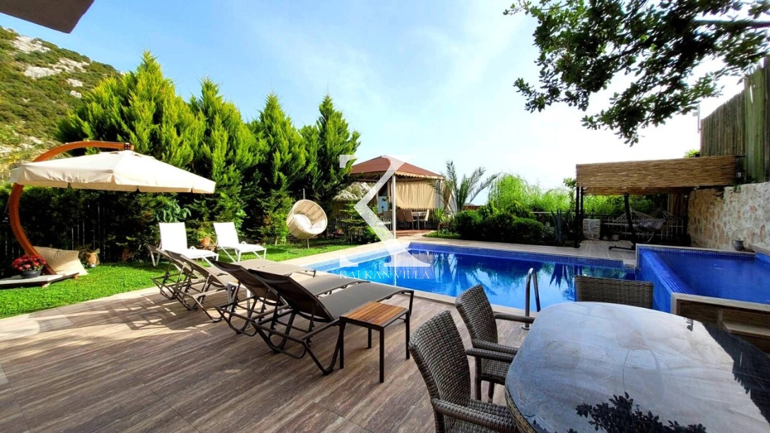 Villa Dere, yeşilliklerle çevrili Kalkan’ın İslamlar Bölgesi’nde, dağ evi konseptiyle tasarlanmış, doğa ile iç içe özel bir tatil villasıdır. 3 yatak odalı ve 6 kişilik konaklama kapasitesine sahip olan villa; muhafazakâr aileler ve arkadaş grupları için ideal bir konaklama seçeneği sunmaktadır.