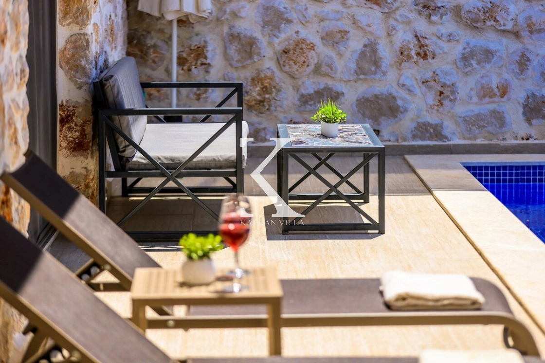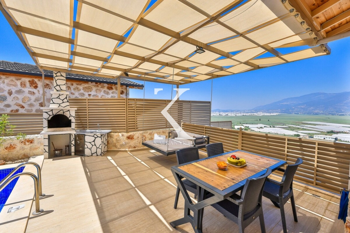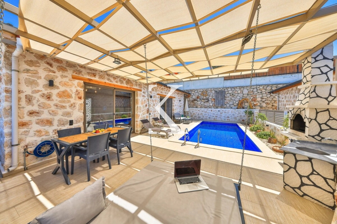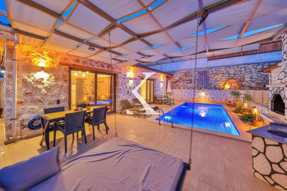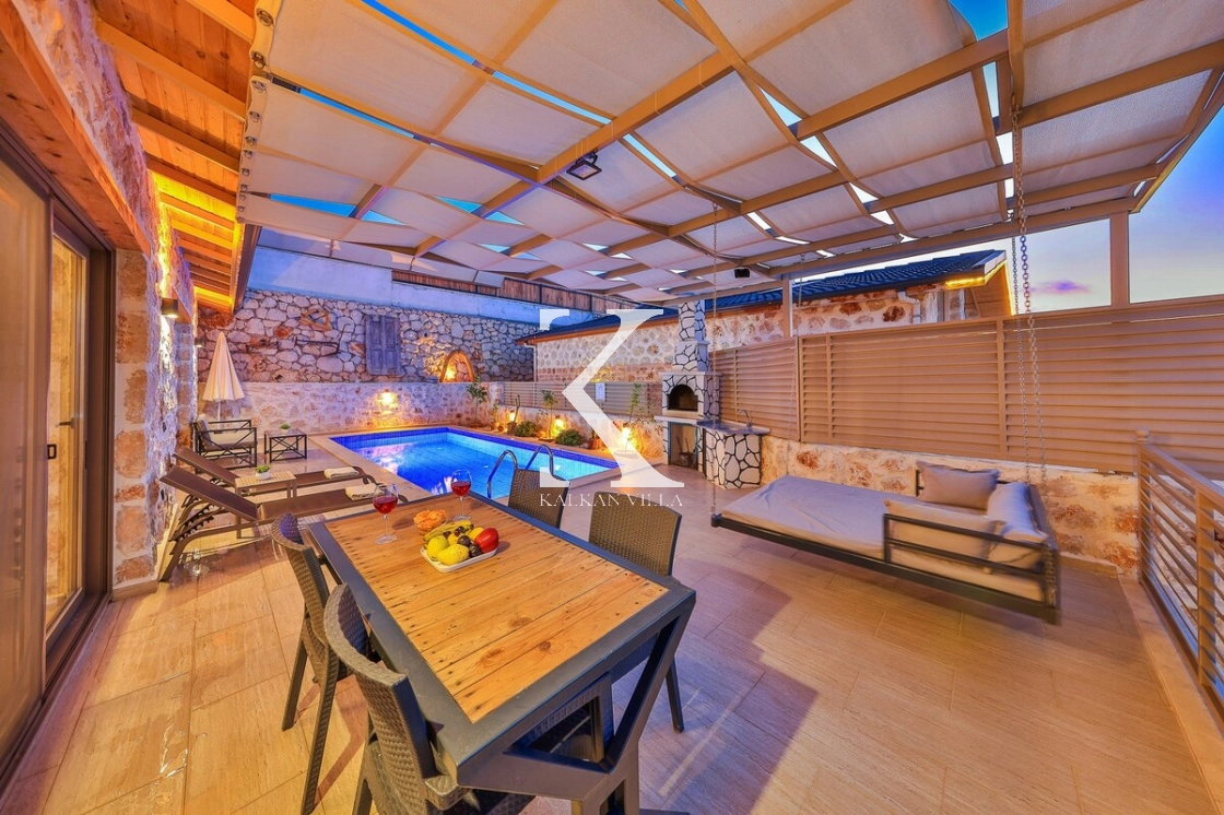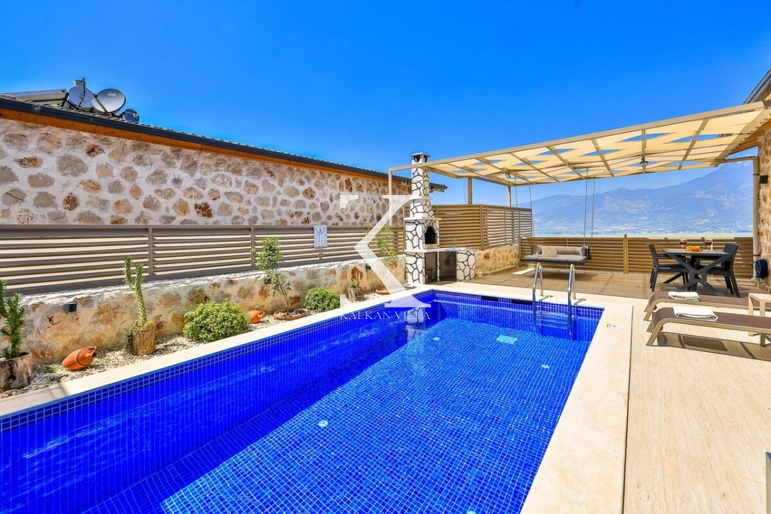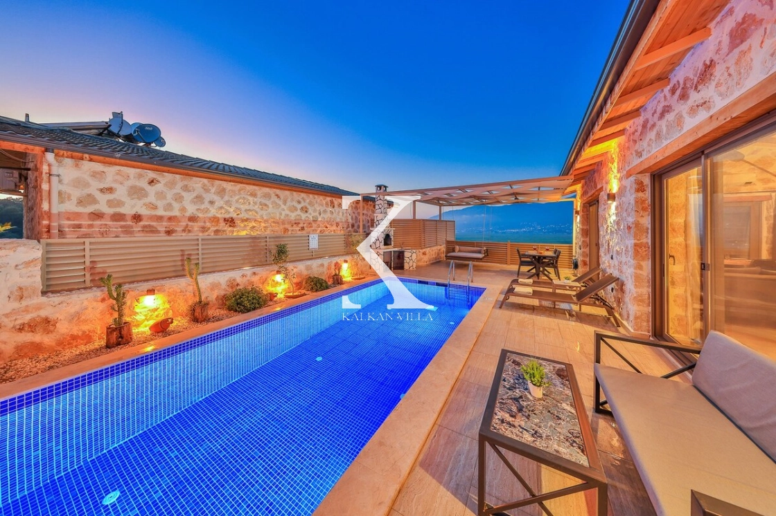 Villa Dio, Kalkan’ın doğal güzellikleriyle öne çıkan Yeşilköy bölgesinde, doğa manzaralı ve tertemiz havasıyla öne çıkan özel bir kiralık villadır.