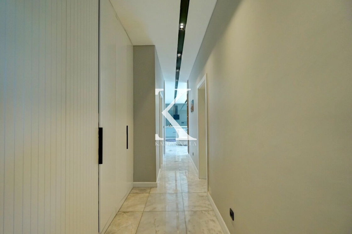 Konforun ön planda tutulduğu modern tasarımlı salonda ultra lüks oturma grubu, TV, sehpa ve klima bulunmaktadır. Salondan havuz terasına doğrudan çıkış vardır.