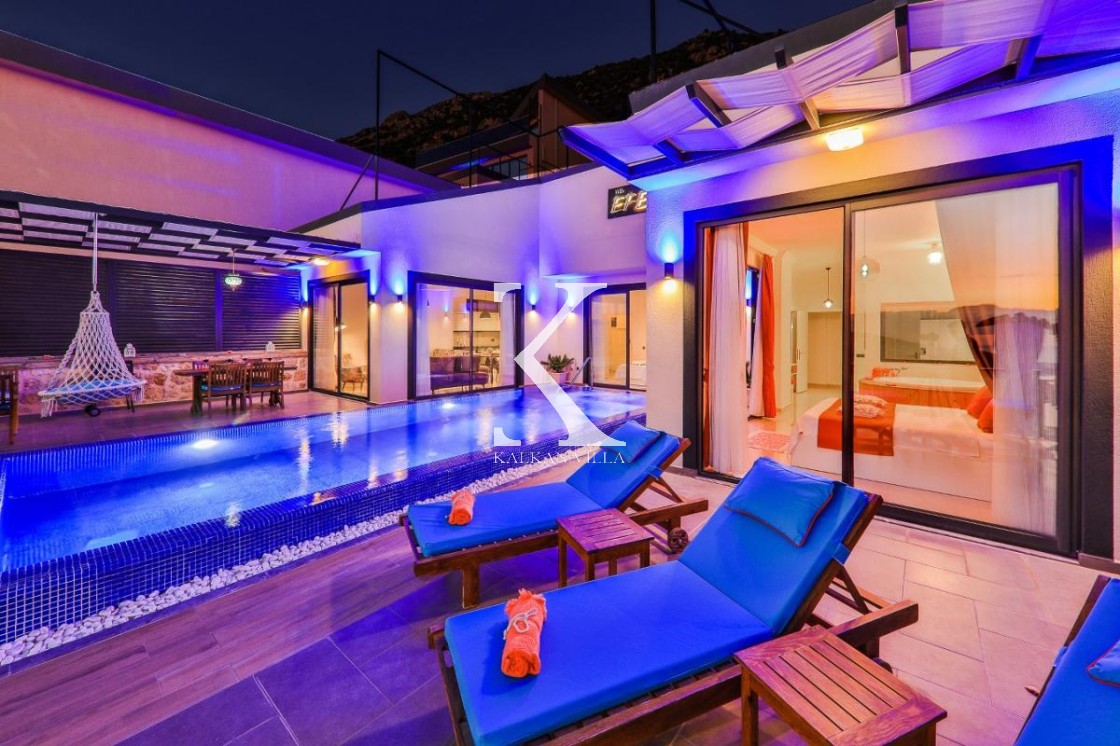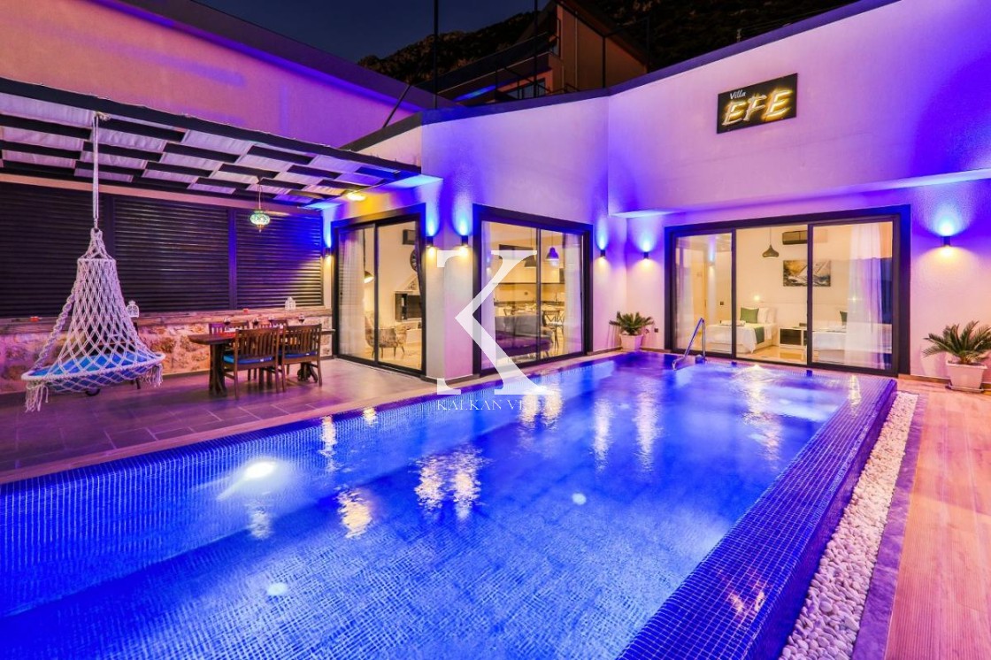 Kalkan’ın gözde lokasyonlarından Kördere’de yer alan Villa Efe, modern mimarisi, rafine iç dekorasyonu ve panoramik deniz manzarasıyla unutulmaz bir tatil deneyimi sunar.
