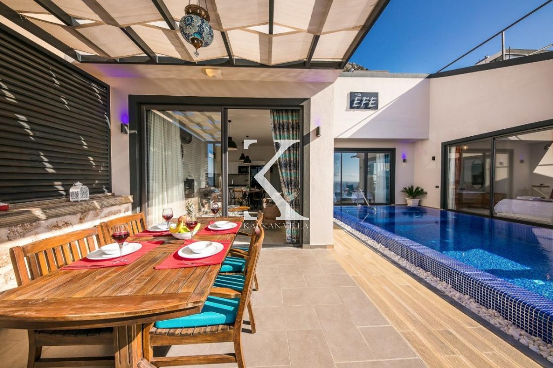 Villa Efe, Kalkan’ın masmavi denizi, adaları ve yeşil doğasıyla çevrilidir. Her sabah nefes kesen manzaraya uyanır, her akşam gün batımını özel terasınızdan izlersiniz.