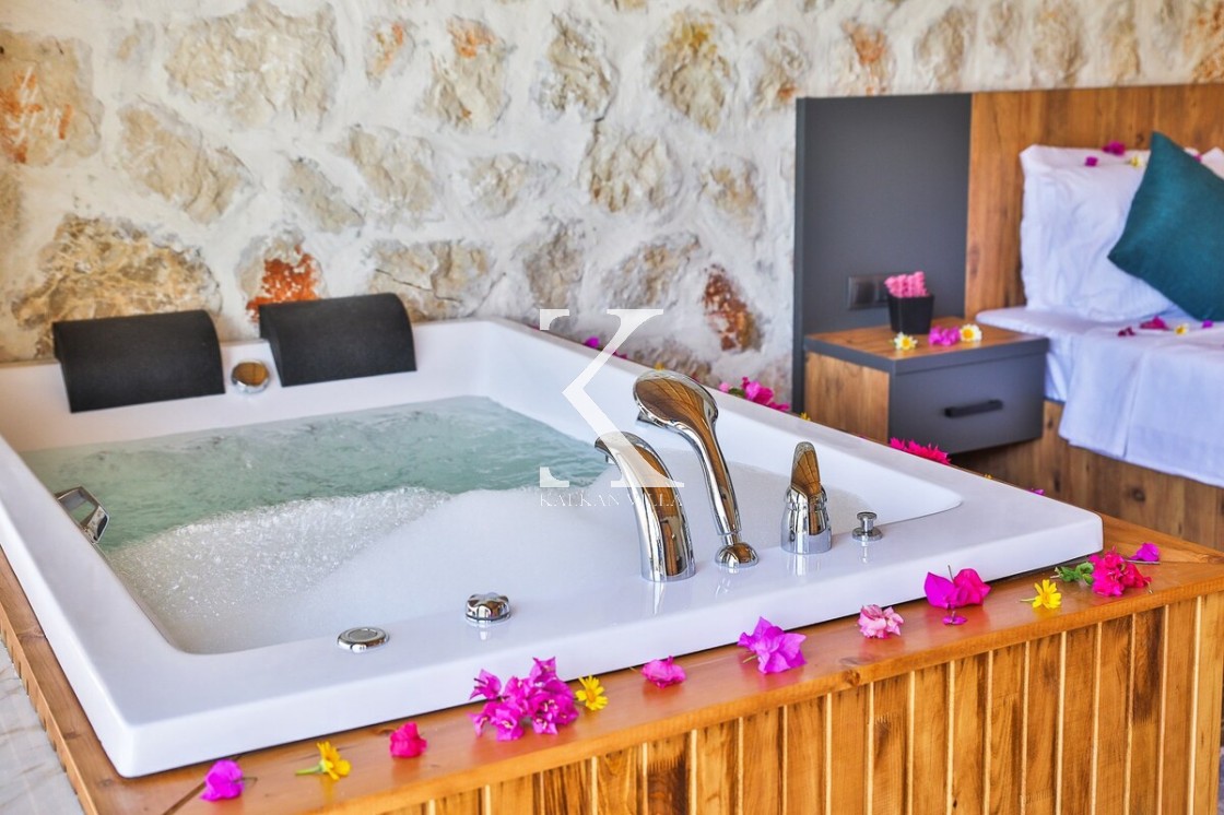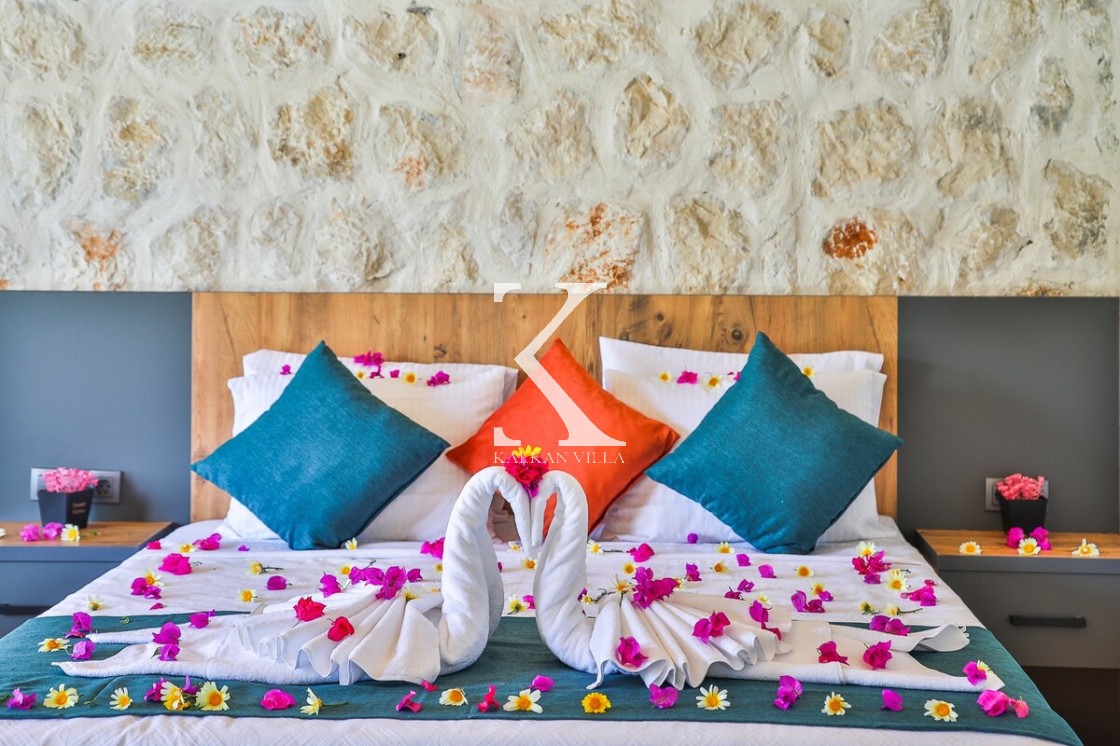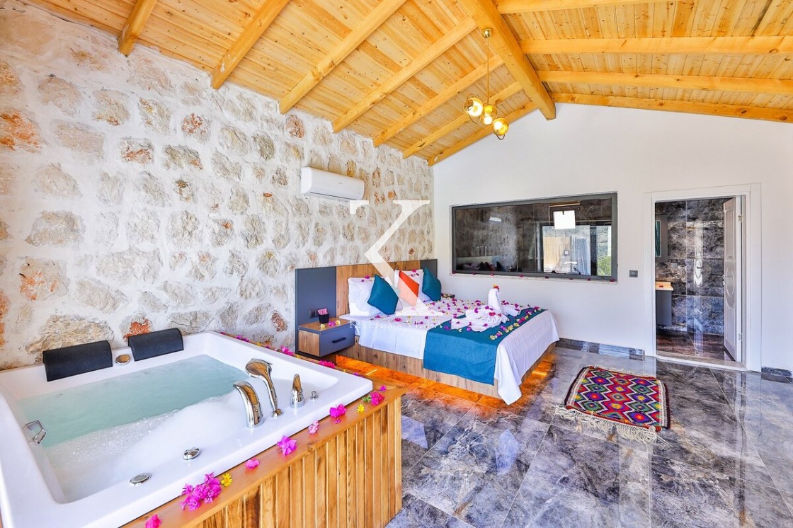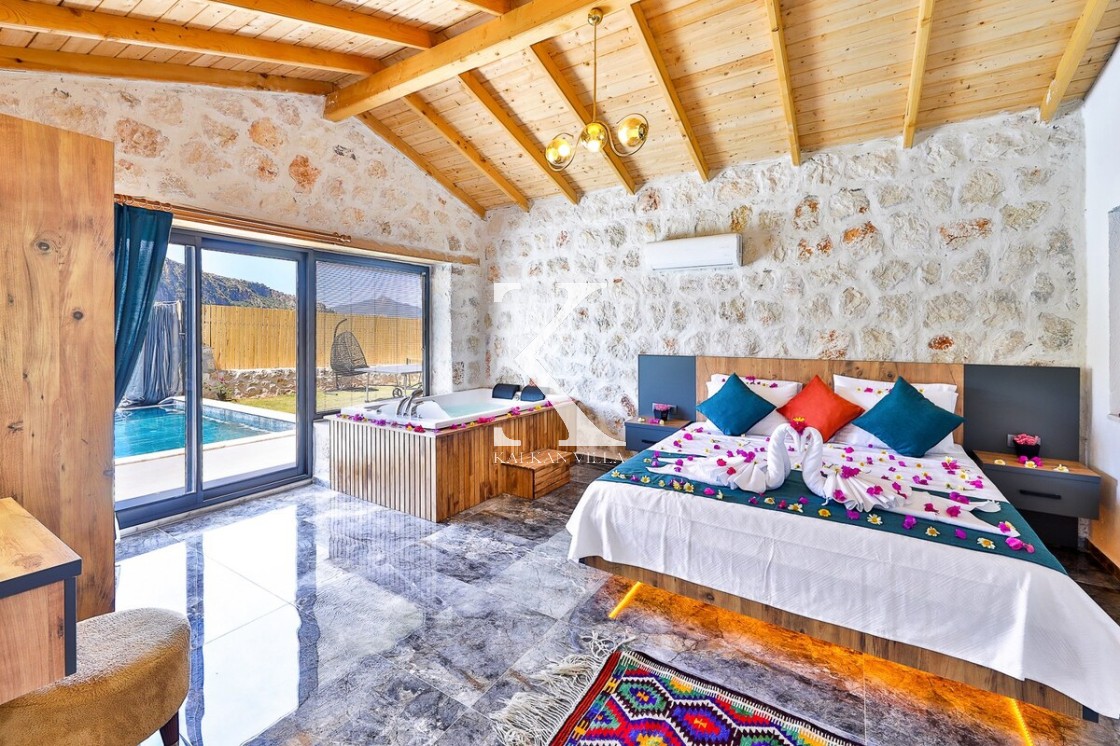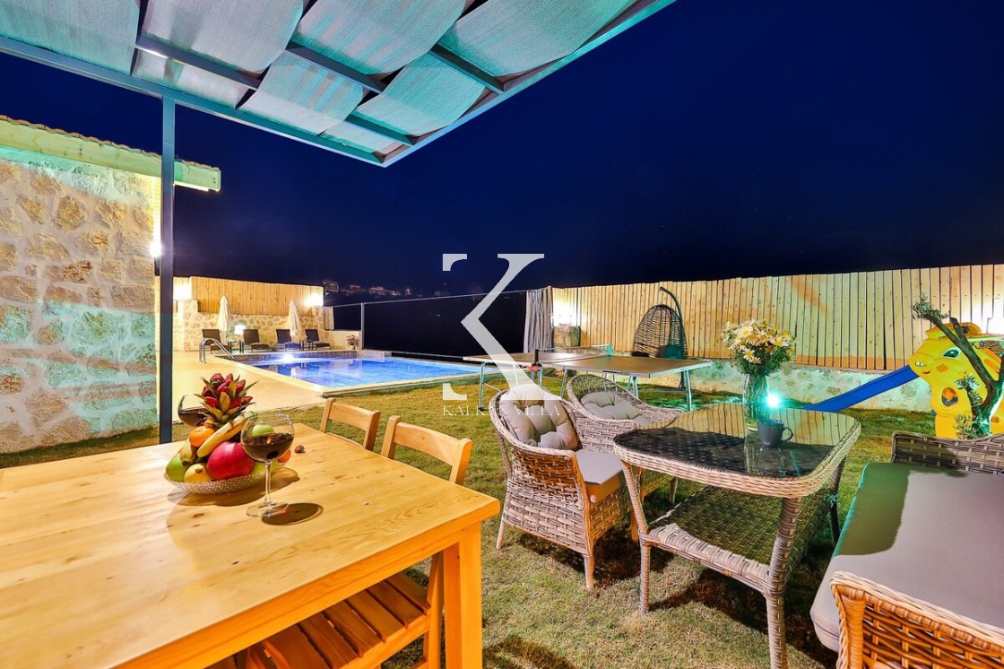 Villanın yemyeşil doğa içindeki konumu, kuş sesleriyle dolu huzurlu bir atmosfer yaratırken; Kalkan merkeze yalnızca 5 dakikalık sürüş mesafesinde olmasıyla da misafirlerine hem izole hem ulaşılabilir bir tatil fırsatı sunar.