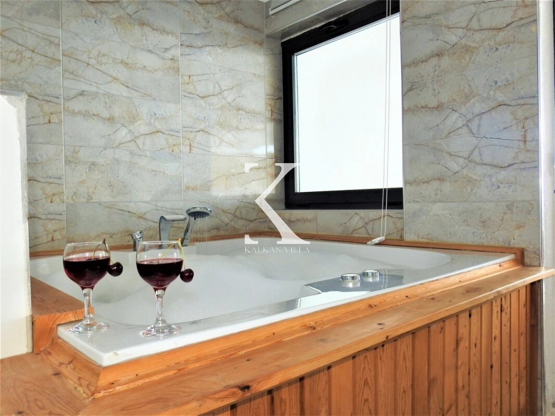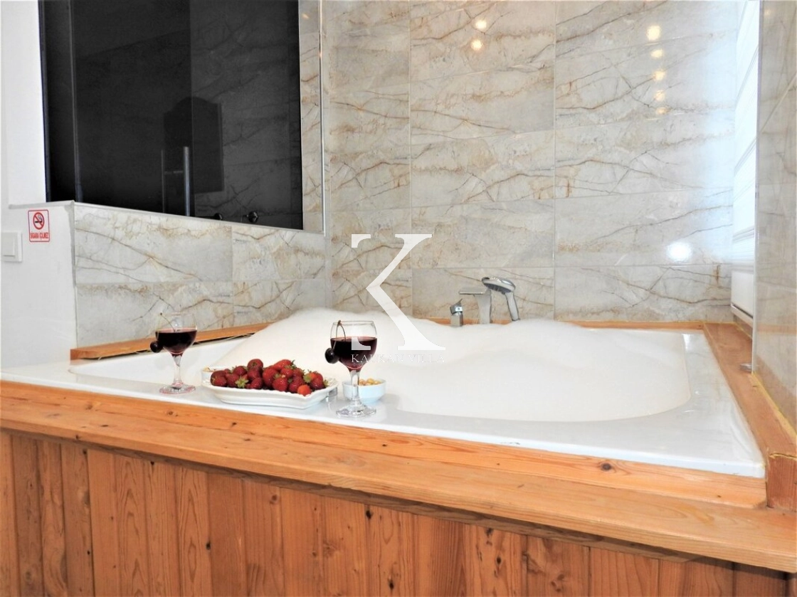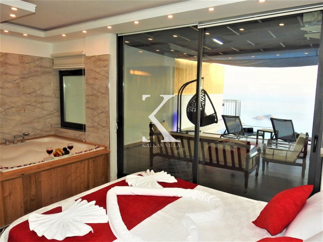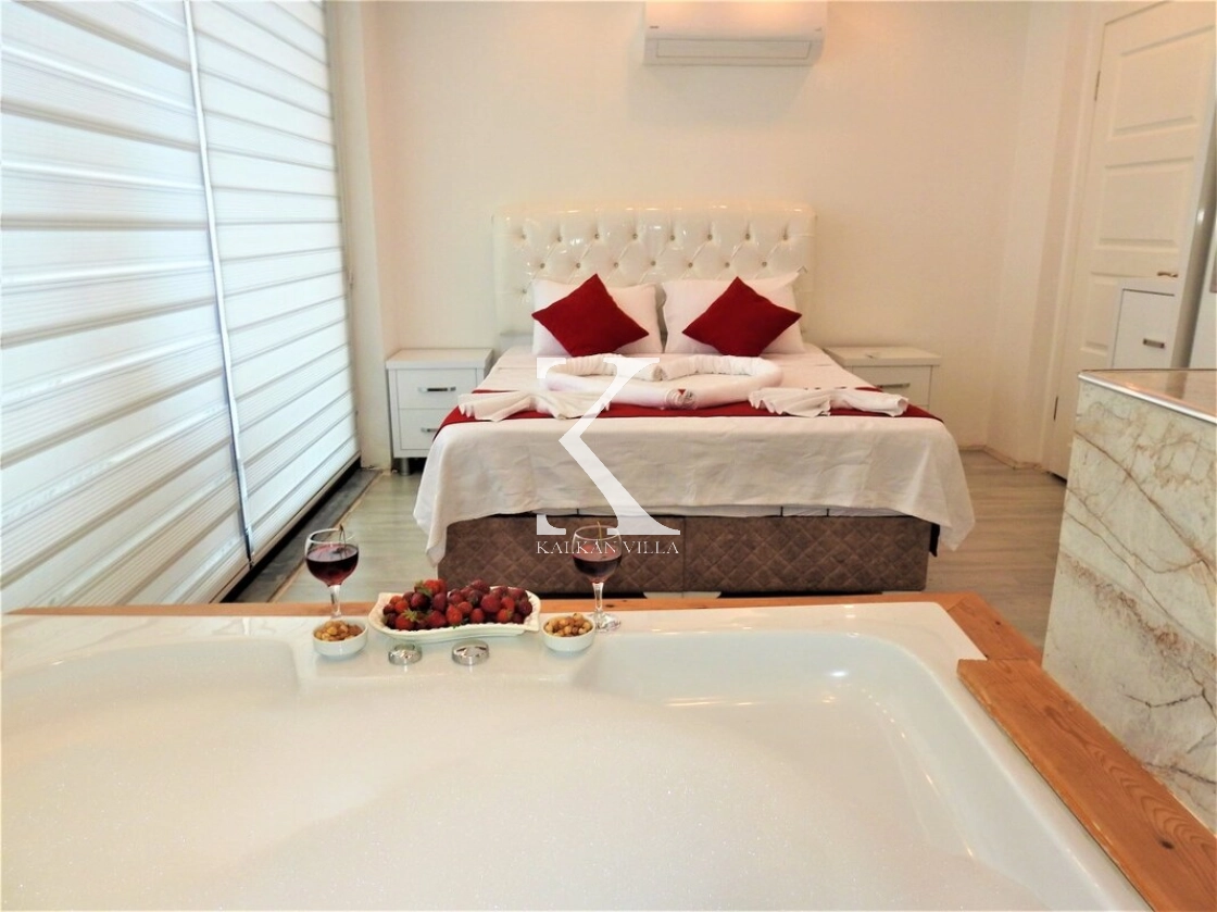 Ebeveyn yatak odasında bulunan jakuzi, gün batımı manzarası eşliğinde dinlenmek isteyen misafirler için eşsiz bir deneyim sunar.