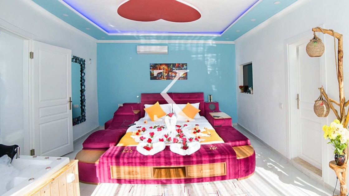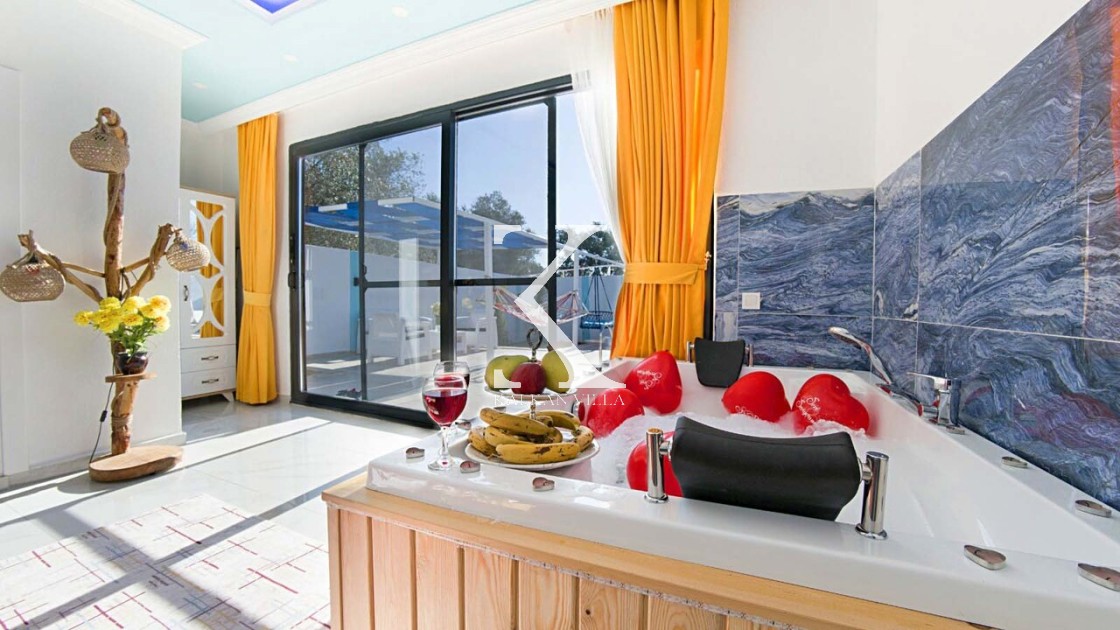 Balayı çiftleri için tasarlanan bu özel oda, manzaraya karşı jakuzi keyfiyle tatilinizi daha da özel kılar.
