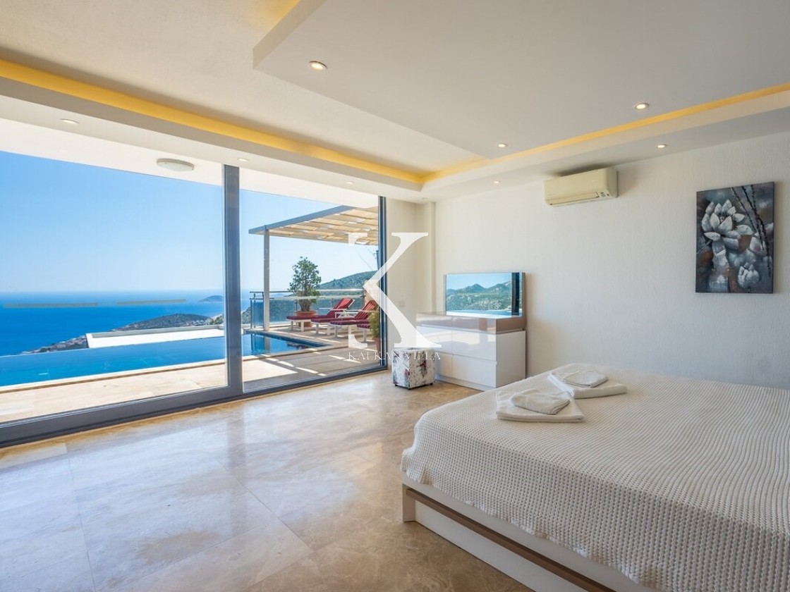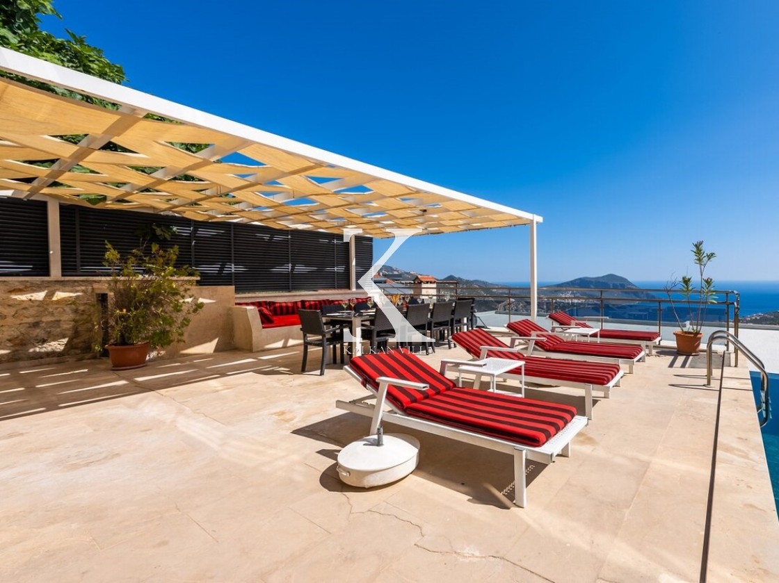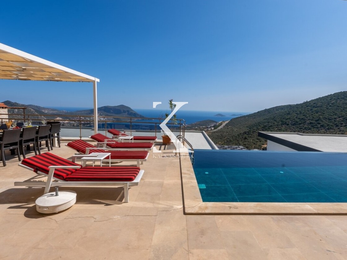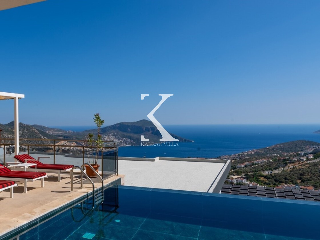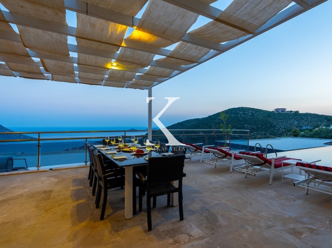 Pencerelerden ve teraslardan baktığınızda Kalkan Körfezi ve Adalar manzarasını doyasıya izleyebileceğiniz bir konuma sahiptir. Terasında yer alan sonsuzluk havuzu ise bu manzara keyfini bambaşka bir seviyeye taşır.