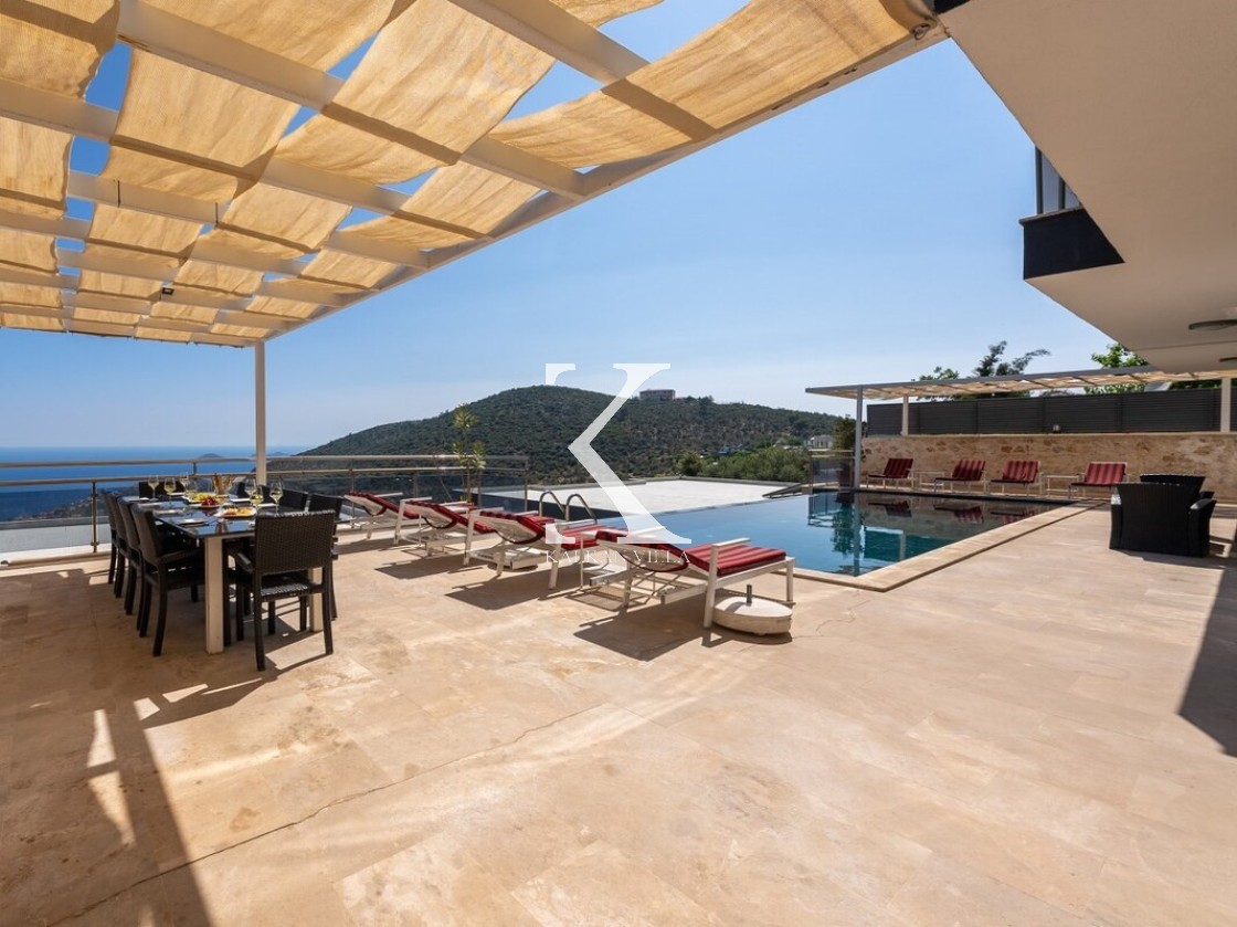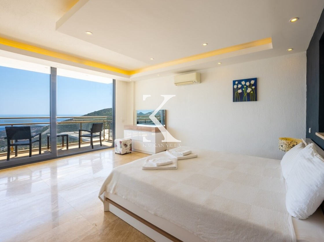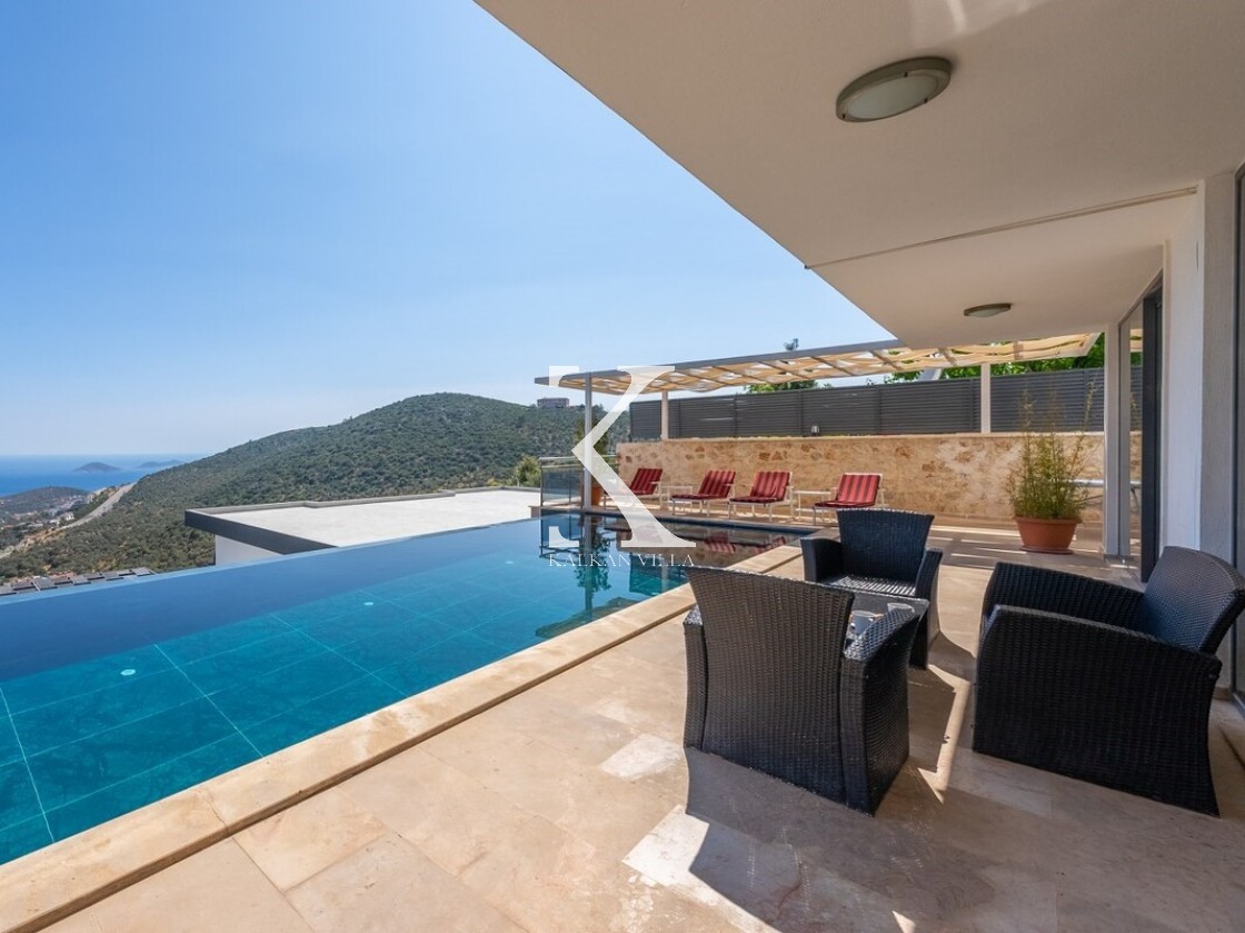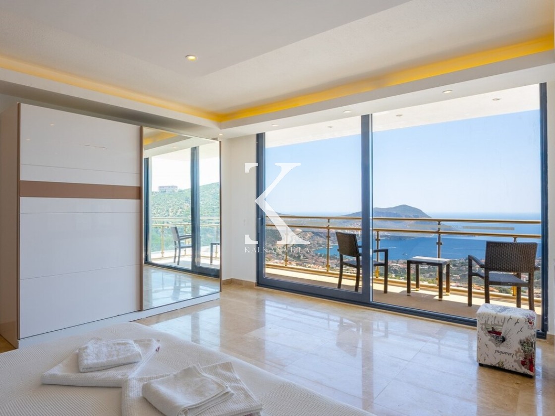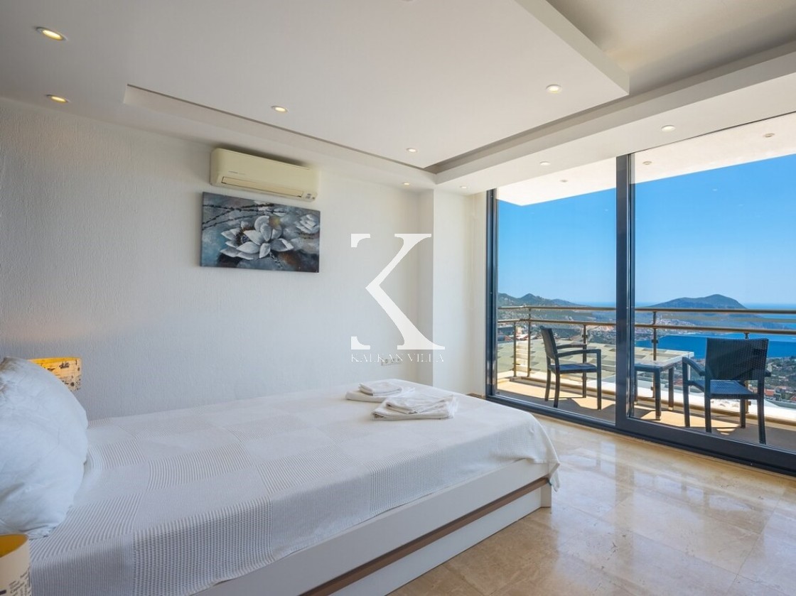 Pencerelerden ve teraslardan baktığınızda Kalkan Körfezi ve Adalar manzarasını doyasıya izleyebileceğiniz bir konuma sahiptir. Terasında yer alan sonsuzluk havuzu ise bu manzara keyfini bambaşka bir seviyeye taşır.