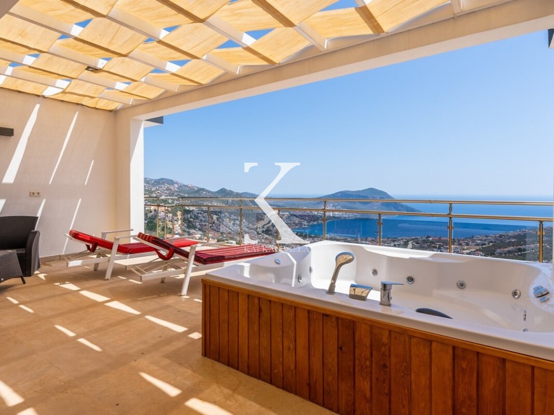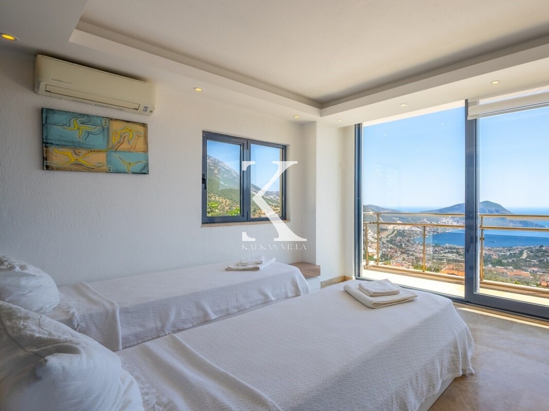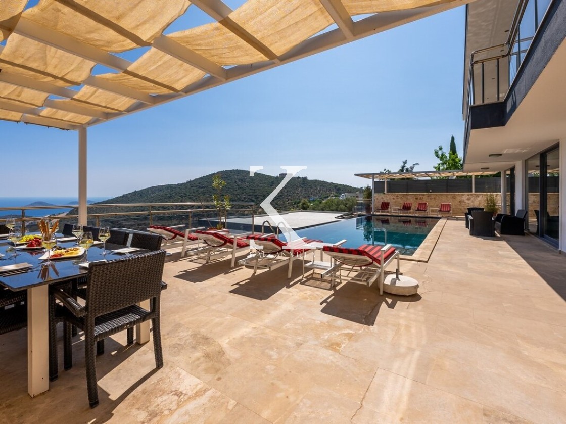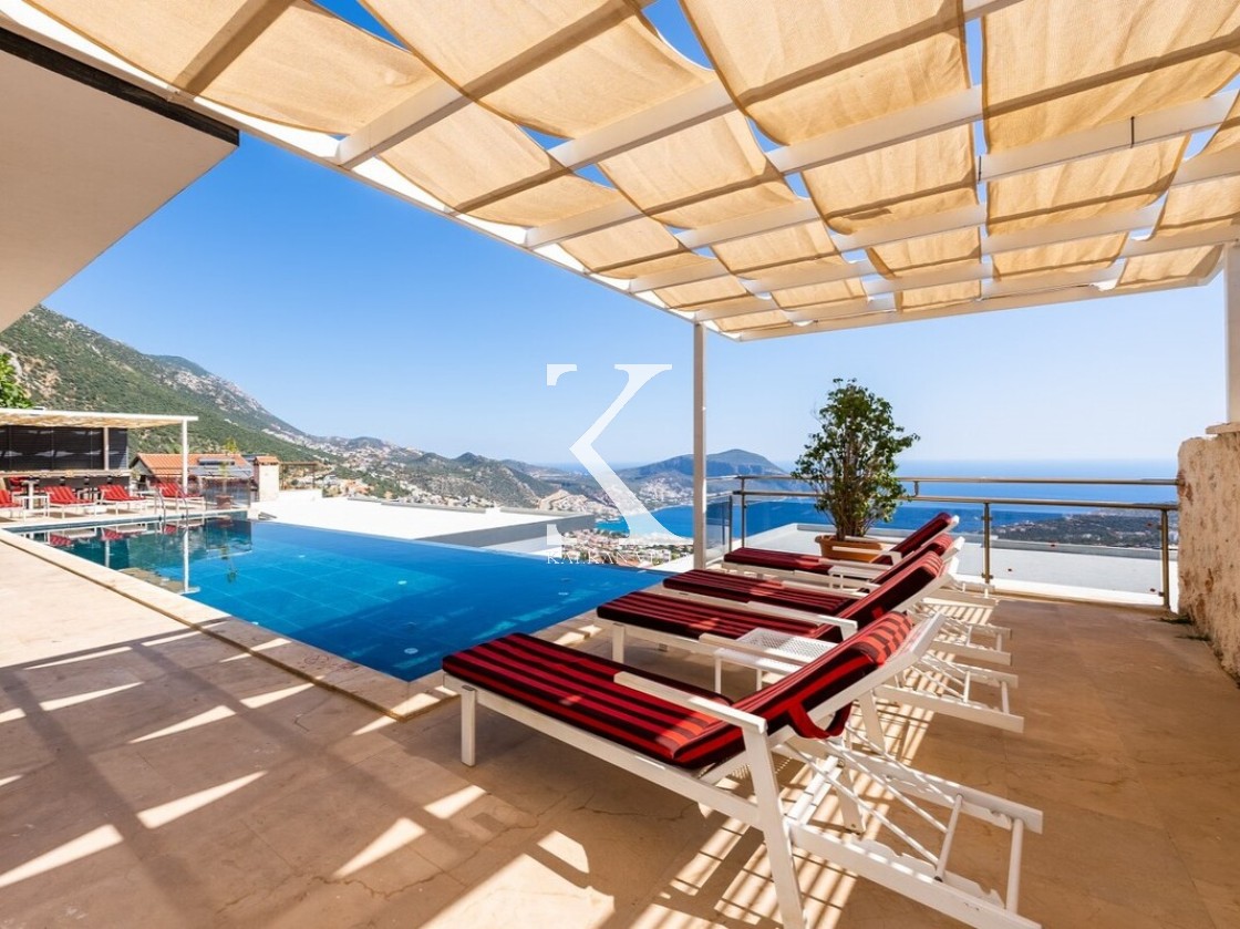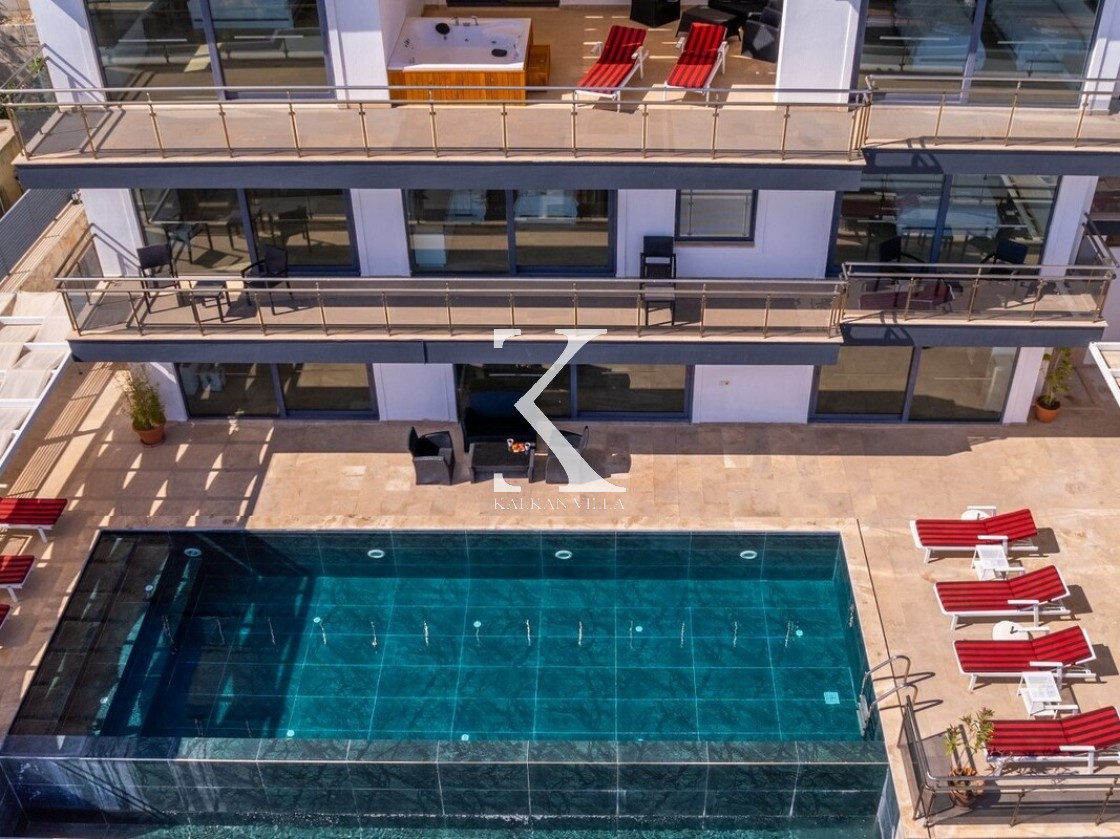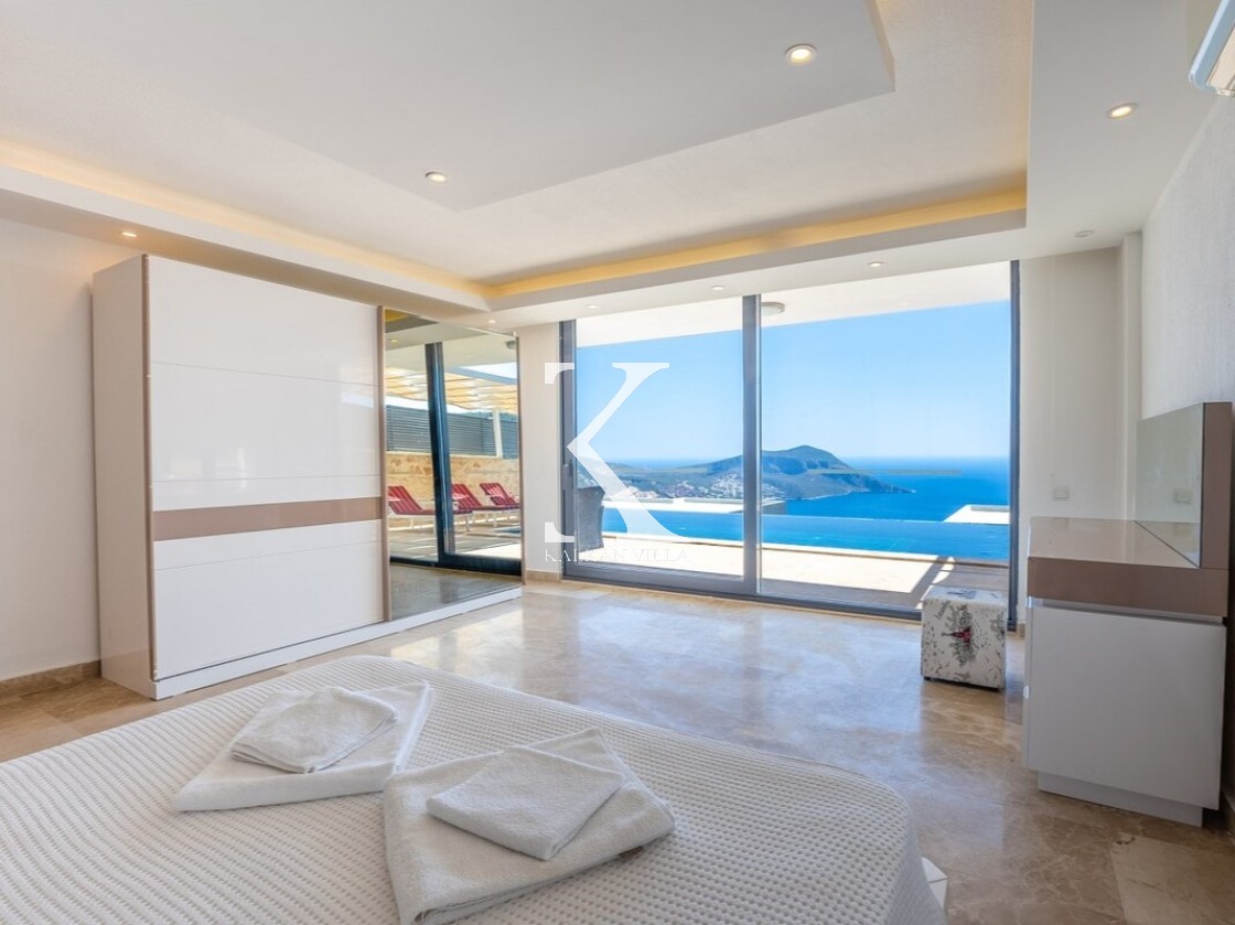 Pencerelerden ve teraslardan baktığınızda Kalkan Körfezi ve Adalar manzarasını doyasıya izleyebileceğiniz bir konuma sahiptir. Terasında yer alan sonsuzluk havuzu ise bu manzara keyfini bambaşka bir seviyeye taşır.
