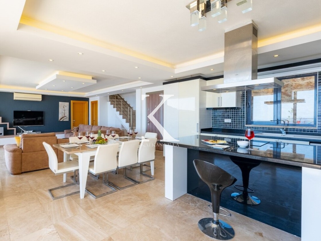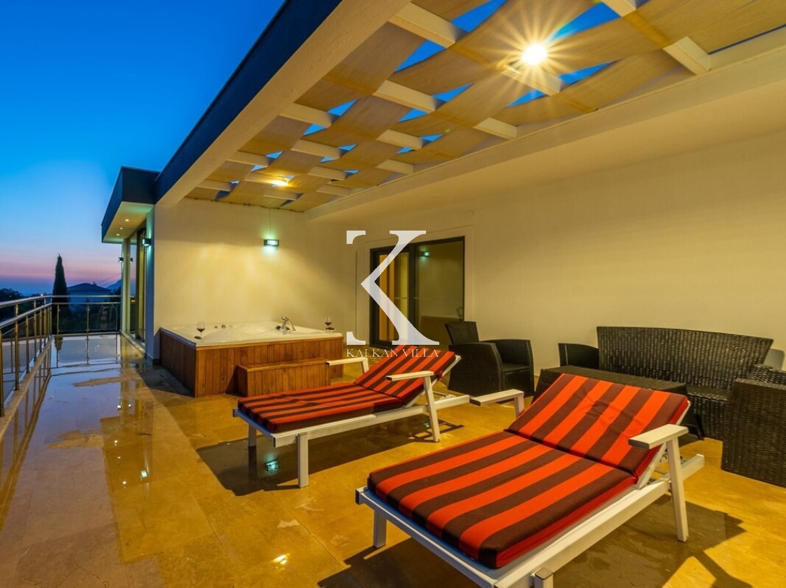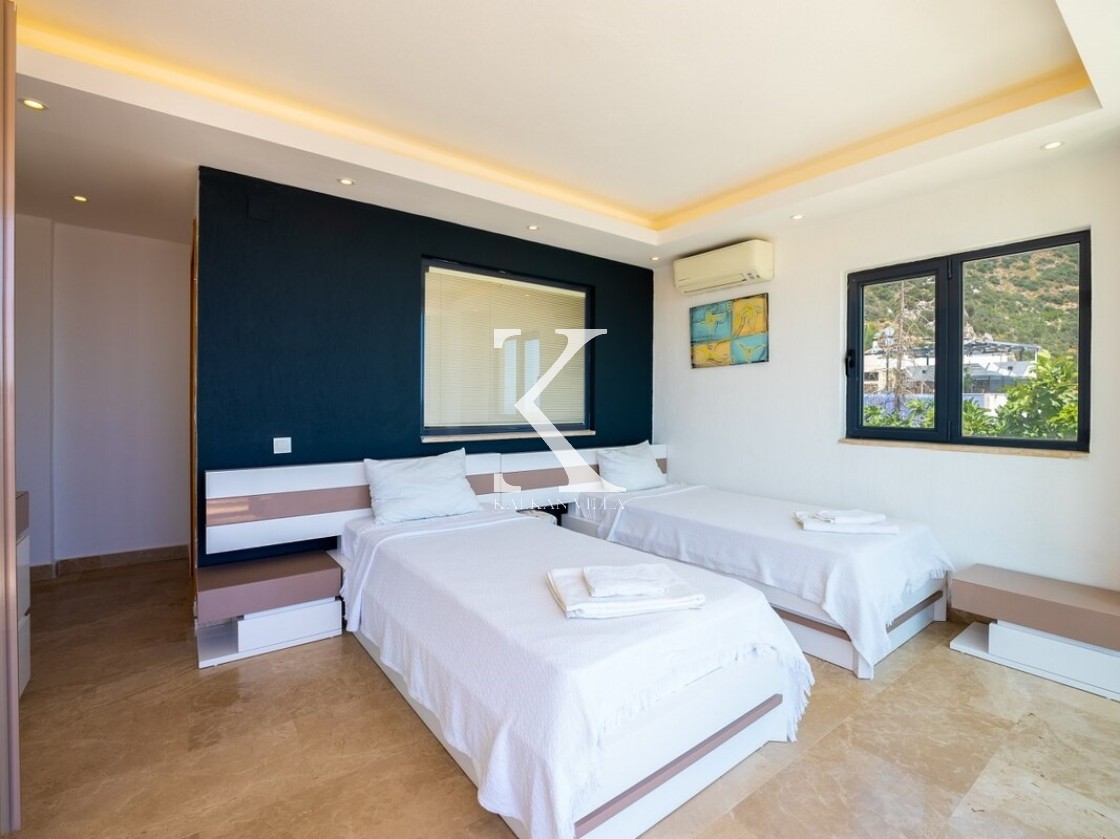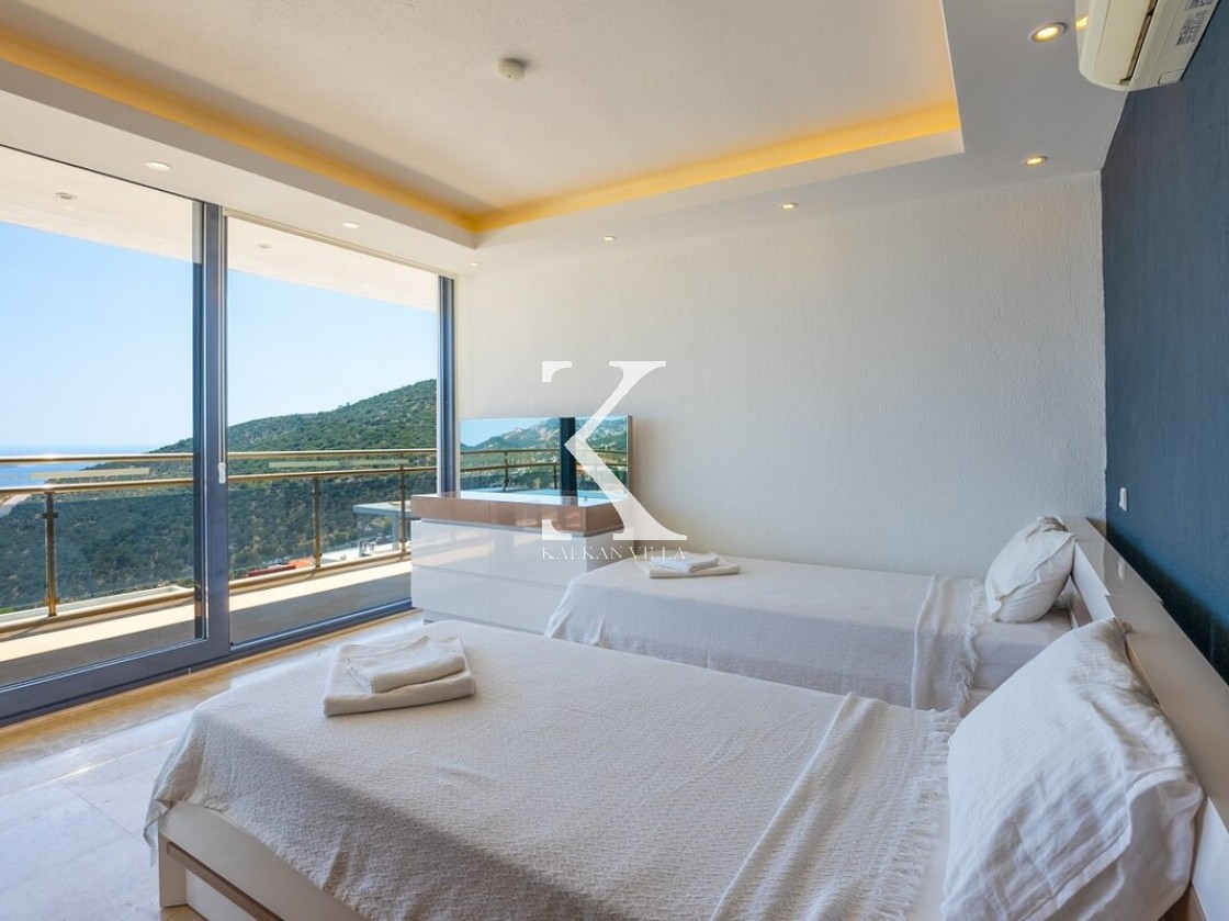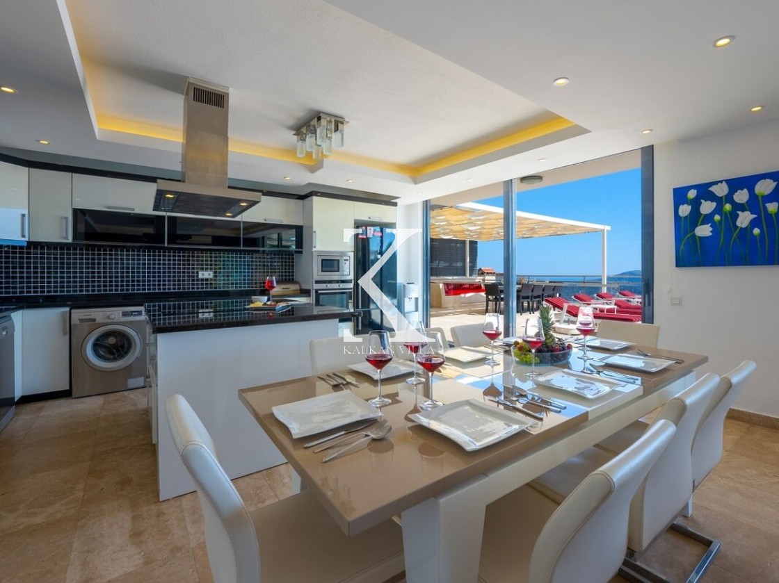Pencerelerden ve teraslardan baktığınızda Kalkan Körfezi ve Adalar manzarasını doyasıya izleyebileceğiniz bir konuma sahiptir. Terasında yer alan sonsuzluk havuzu ise bu manzara keyfini bambaşka bir seviyeye taşır.