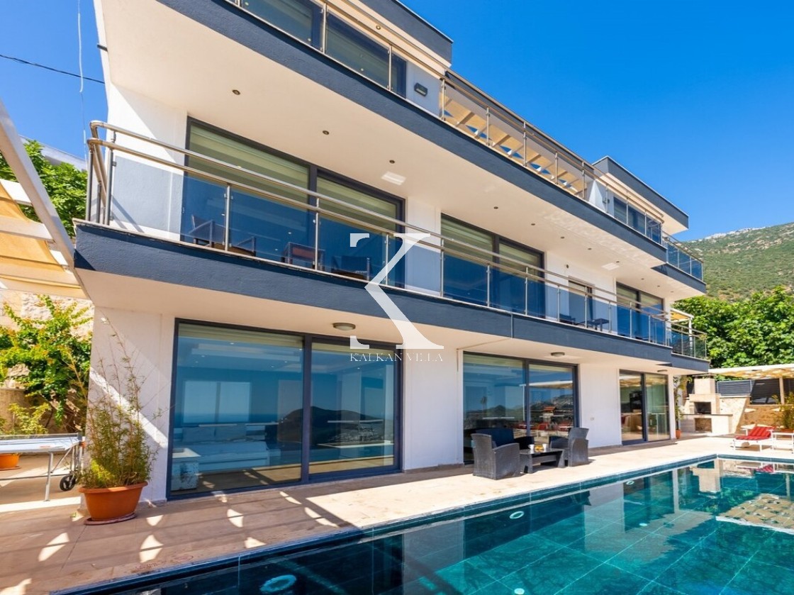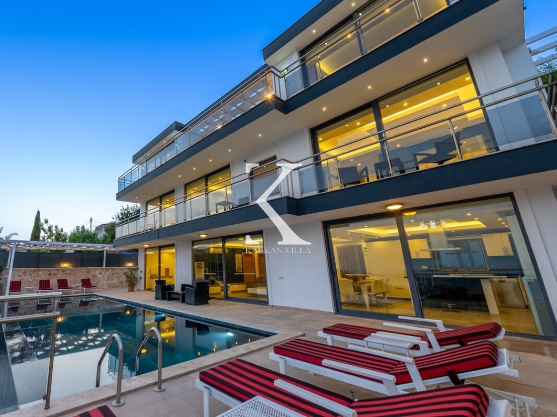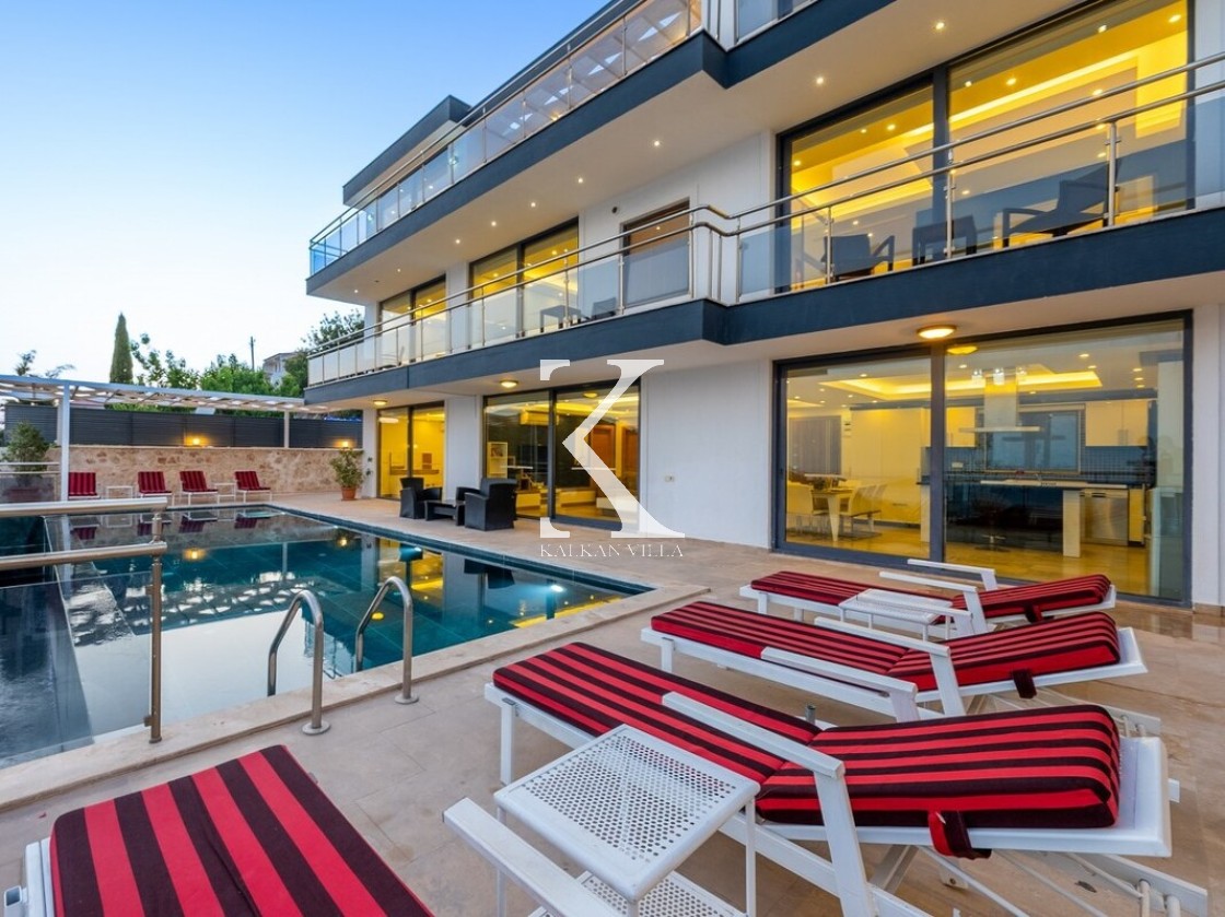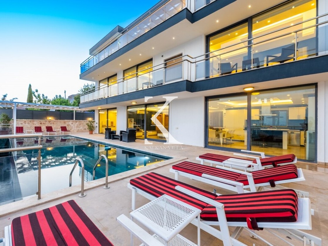 Villa Elit 1, Kalkan’ın Akbel mevkisinde yer alan, 6 yatak odalı ve 12 kişi konaklama kapasiteli, deniz manzaralı geniş ve lüks bir tatil villasıdır.
