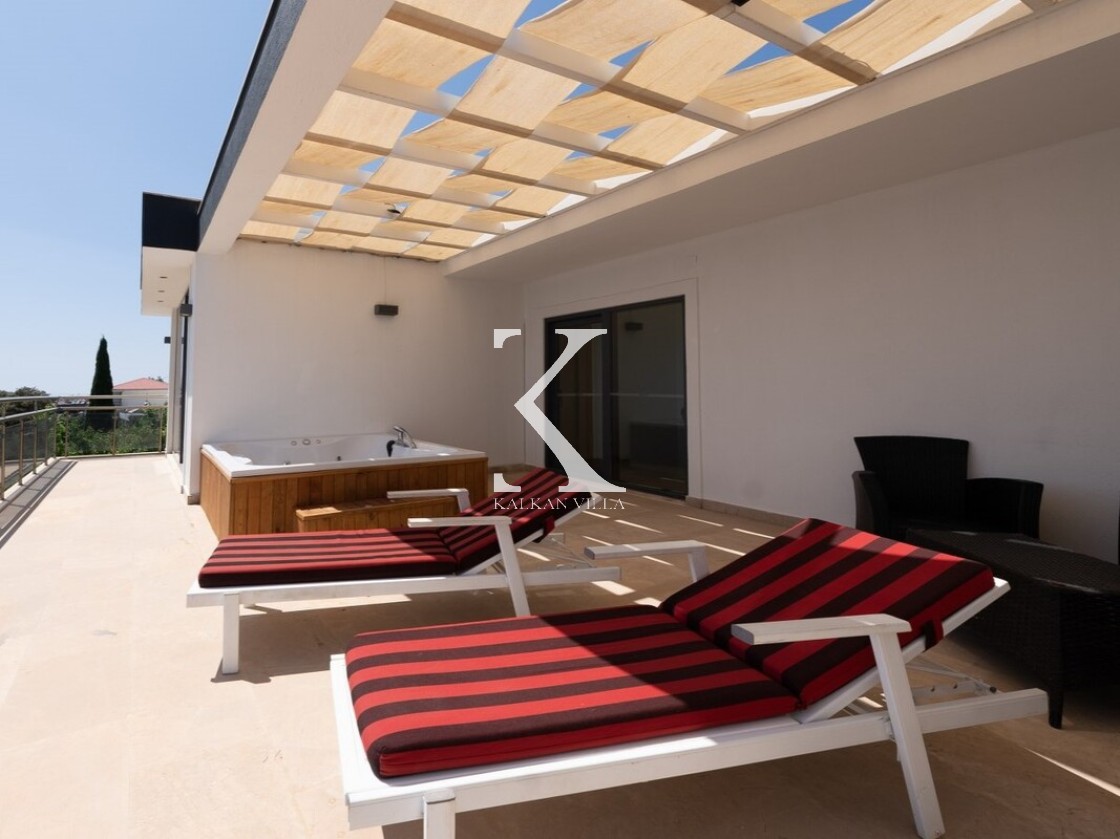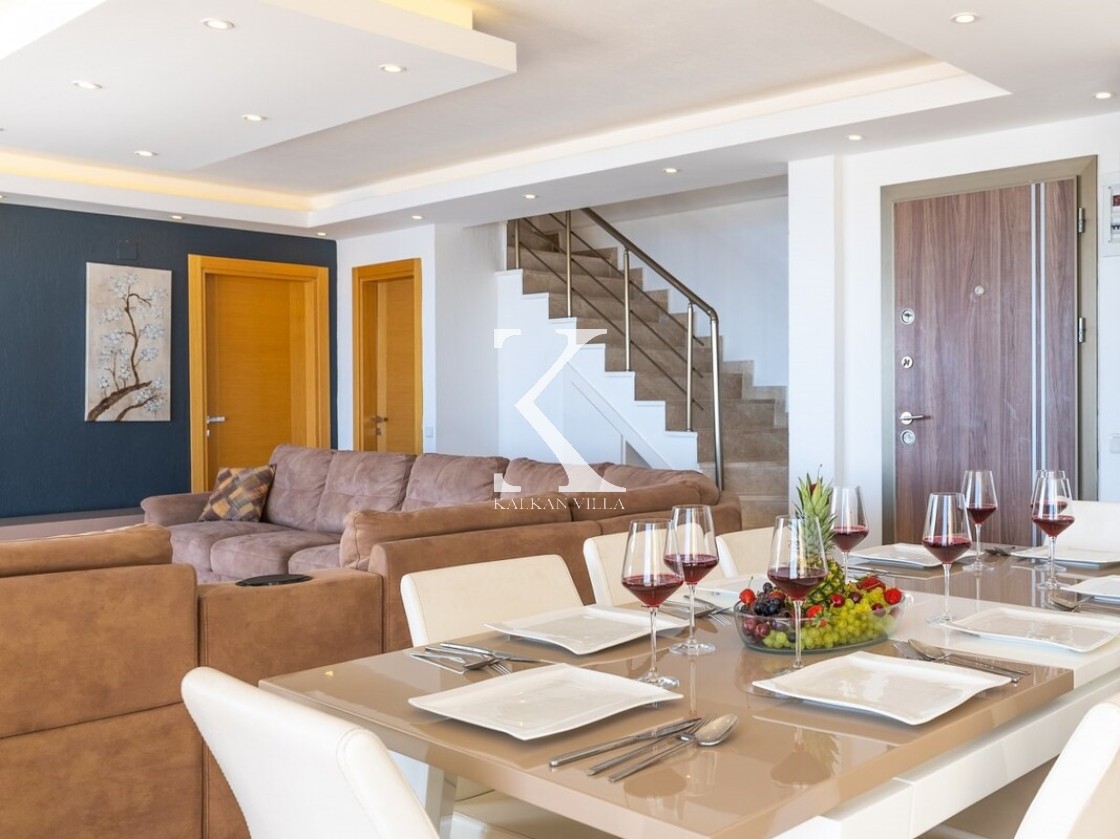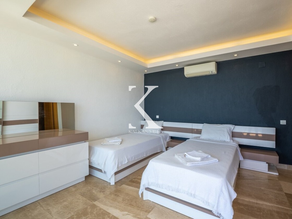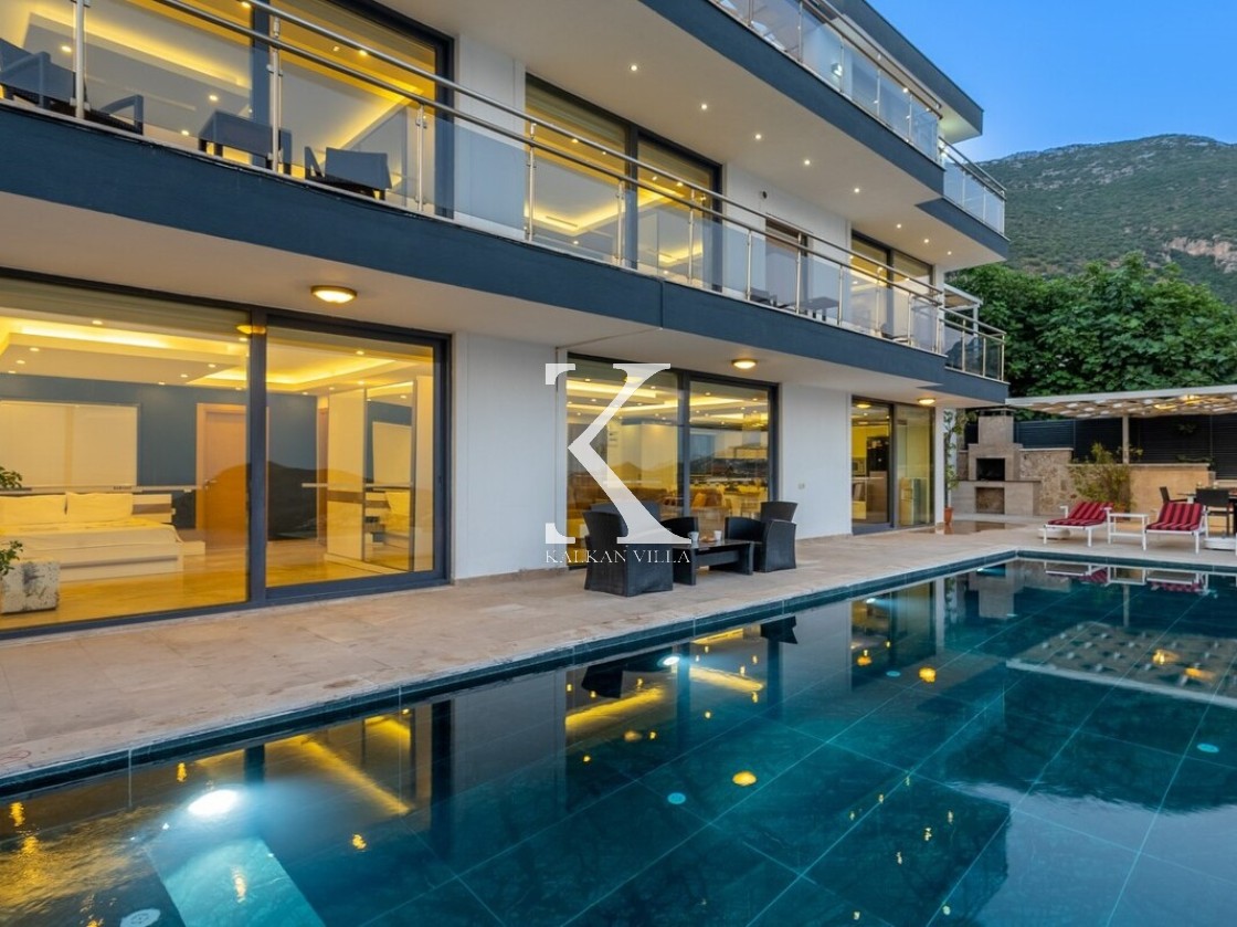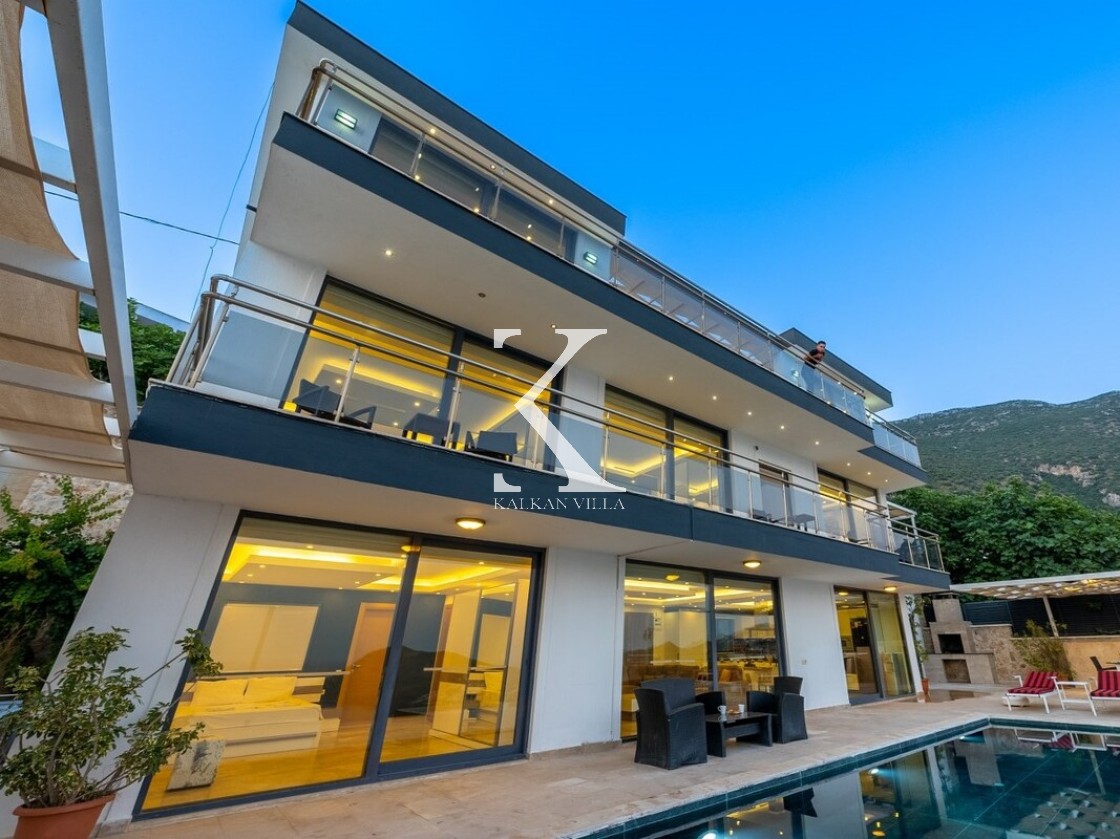 Villa Elit 1, Kalkan’ın Akbel mevkisinde yer alan, 6 yatak odalı ve 12 kişi konaklama kapasiteli, deniz manzaralı geniş ve lüks bir tatil villasıdır.