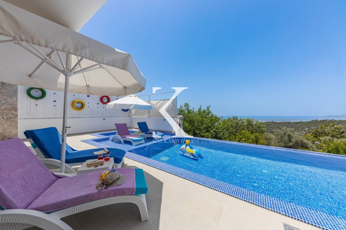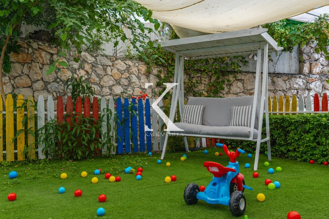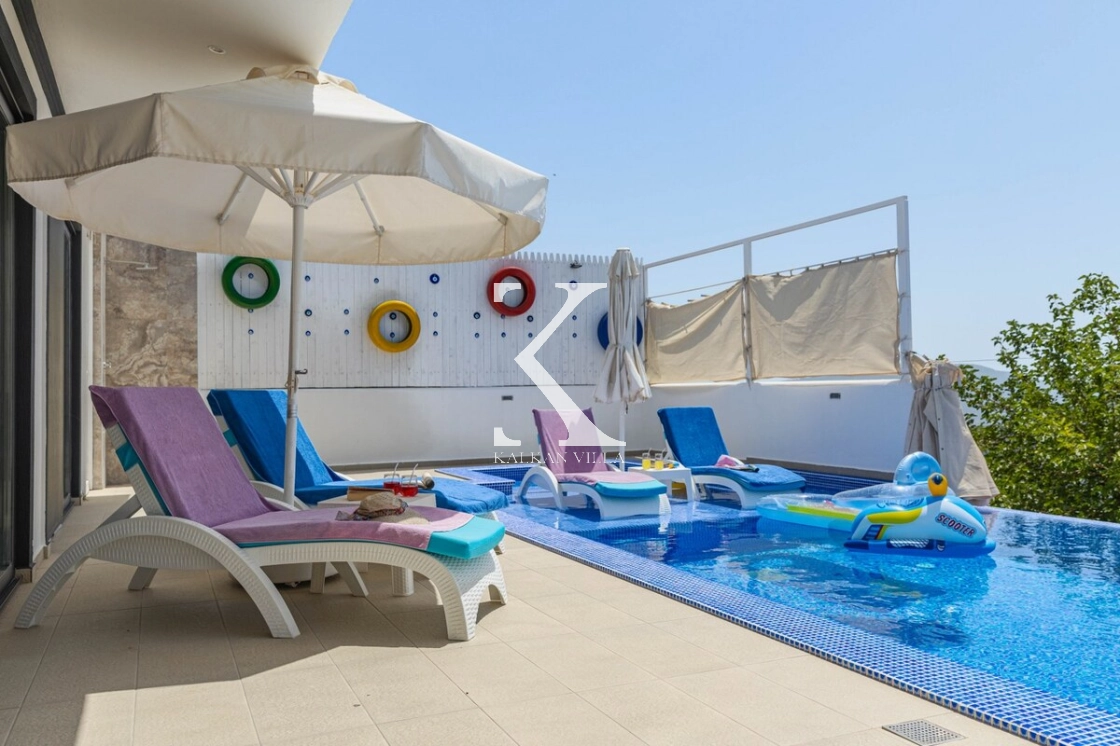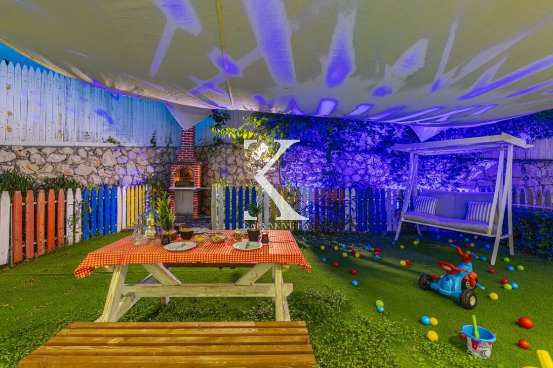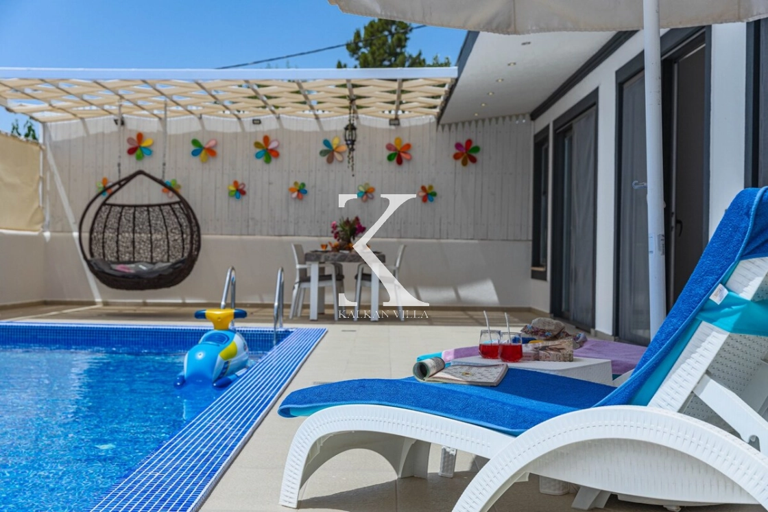 Villanın özel yüzme havuzu, çocuk havuzu, sığ havuzu ve oyun alanı, çocuklu aileler için eşsiz bir tatil deneyimi sunar.