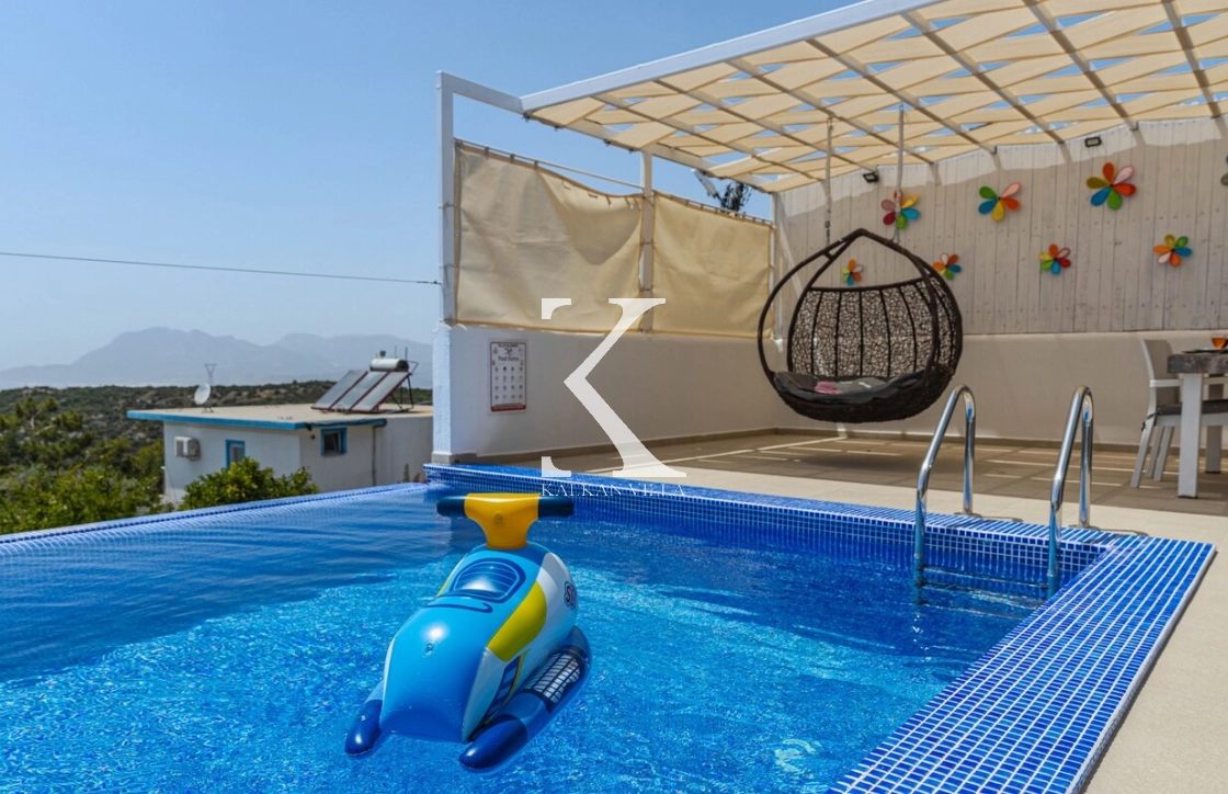 Tamamen korunaklı havuz alanı ve doğa manzarasıyla dikkat çeken villamız, 2 yatak odalı ve 4 kişilik konaklama kapasitesine sahiptir.