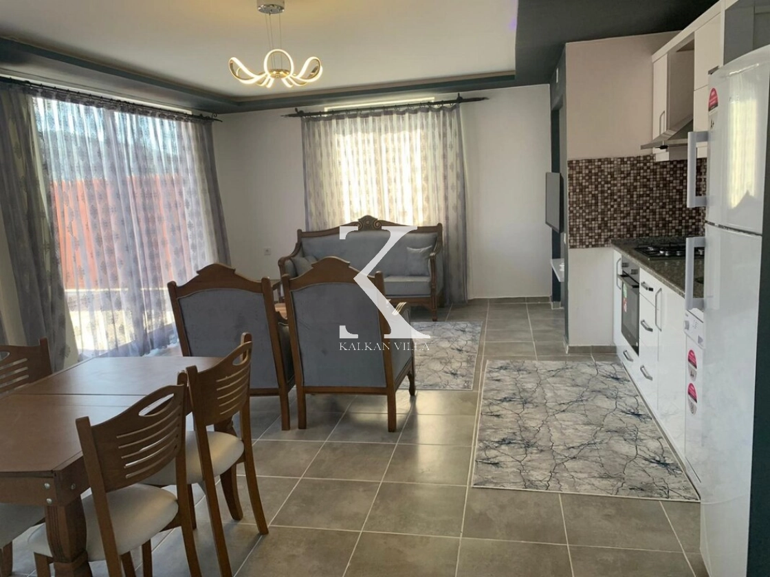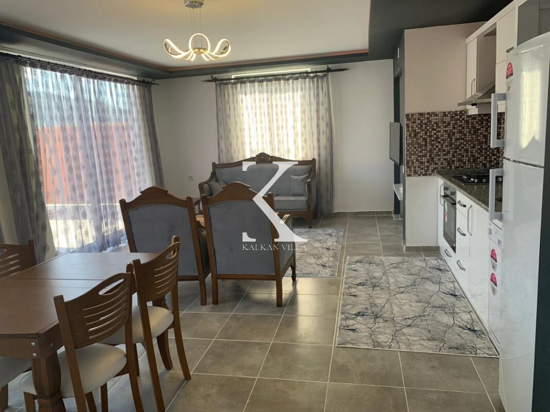 Beyaz dolaplarıyla modern bir görünüme sahip Amerikan mutfak içerisinde; buzdolabı, bulaşık makinesi, ocak, fırın, elektrikli su ısıtıcısı, tost makinesi, 4 kişilik yemek masası, yemek takımları ve yemek pişirme araç gereçleri bulunmaktadır.