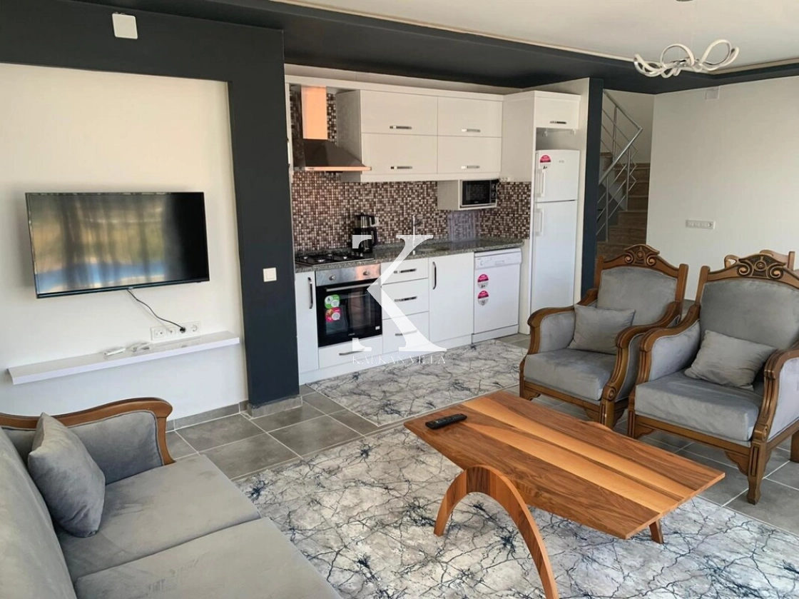 Doğa manzaralı ve modern eşyalarla tasarlanmış salonda konforlu oturma grubu, sehpa, TV, uydu alıcı ve internet yer almaktadır. Salondan havuz terasına doğrudan çıkış mevcuttur.