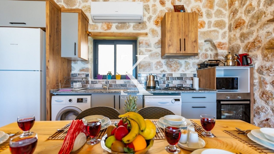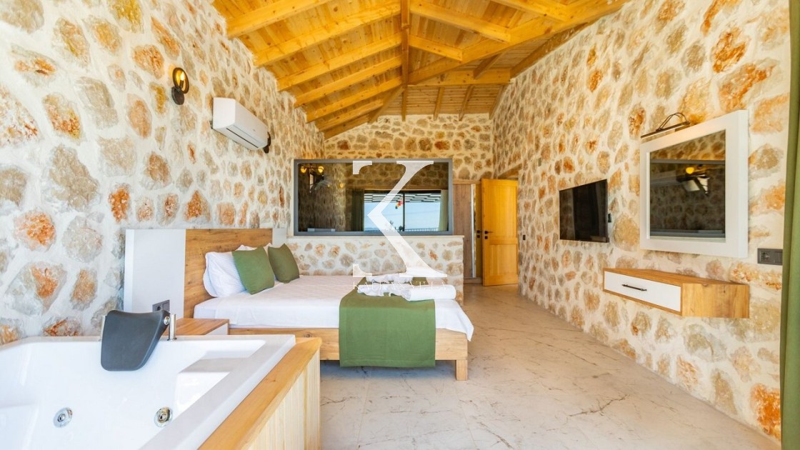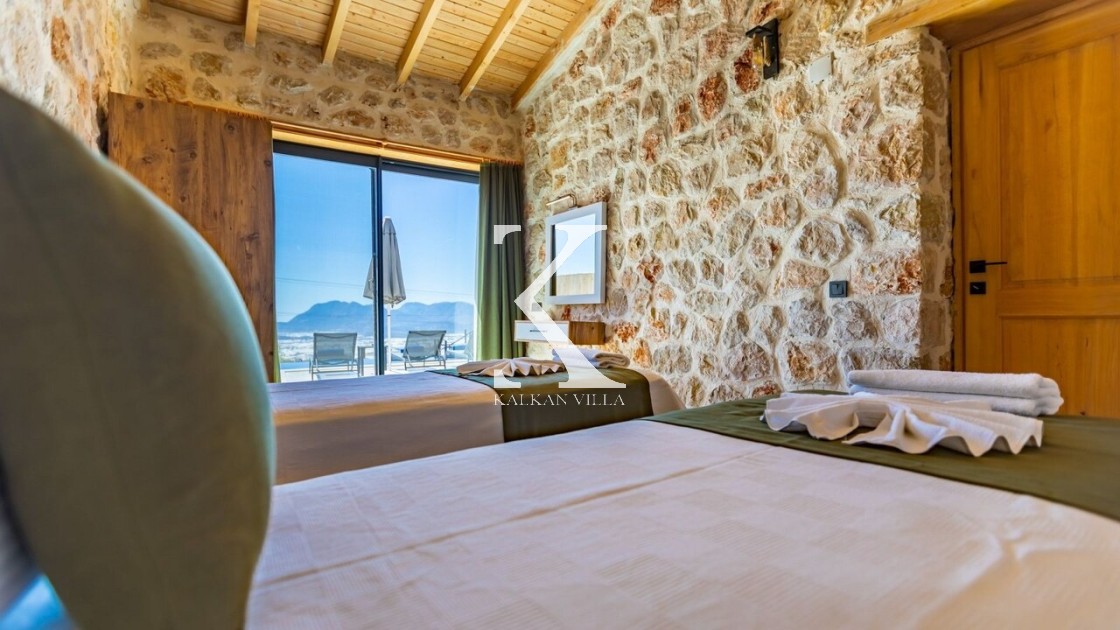 2 yatak odası ve 2 banyosu ile 4 kişilik konaklama kapasitesine sahip olan villa; hem huzurlu bir balayı hem de çekirdek aile tatilleri için ideal bir seçenektir.