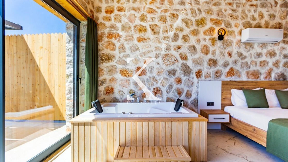 Özel yüzme havuzu içerisinde yer alan jakuzili bölüm, hem serinleme hem de dinlenme anlarınıza ekstra konfor katarken; ebeveyn yatak odasındaki oda içi jakuzi romantik ve ayrıcalıklı bir atmosfer sunar.