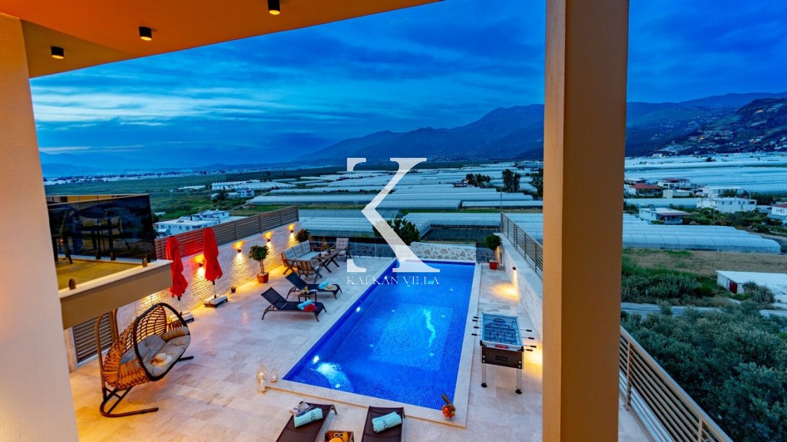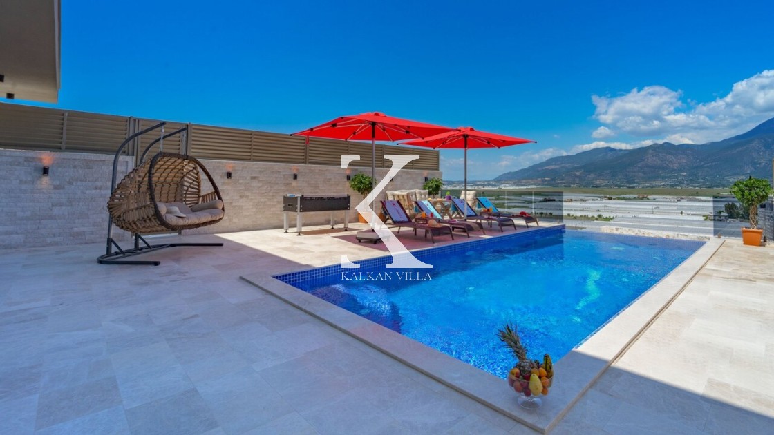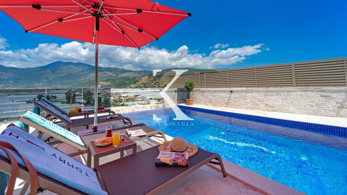 Villa Eser Yeşilköy, Kalkan’ın Yeşilköy bölgesinde, doğa ile iç içe huzurlu bir konumda yer alan, 2 yatak odalı ve 5 kişilik konaklama kapasiteli özel bir tatil villasıdır. Modern ve konforlu iç tasarımı, korunaklı havuzu ve jakuzili ebeveyn süiti ile balayı çiftleri, çekirdek aileler ve küçük arkadaş grupları için ideal bir konaklama seçeneği sunar.