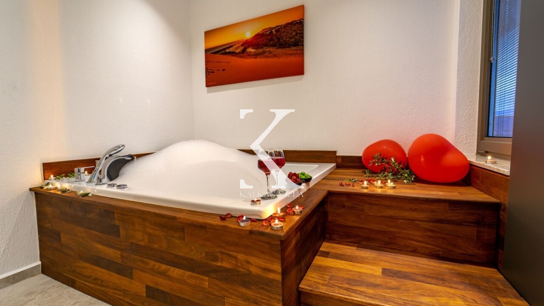 2 yatak odası • 5 kişi • korunaklı havuz • jakuzili ebeveyn süiti • langırt