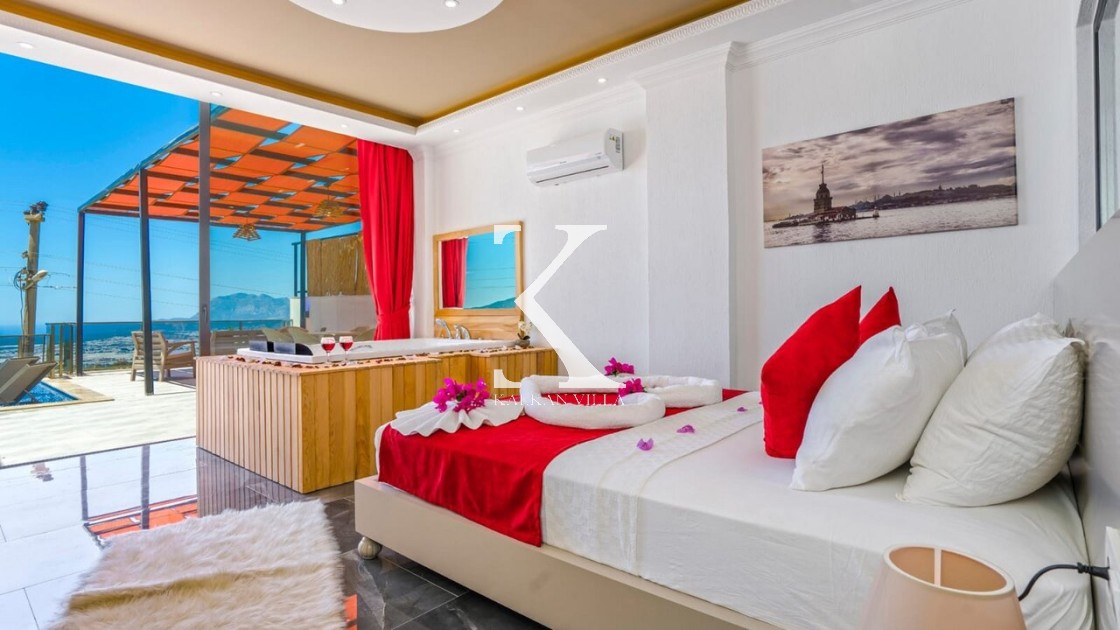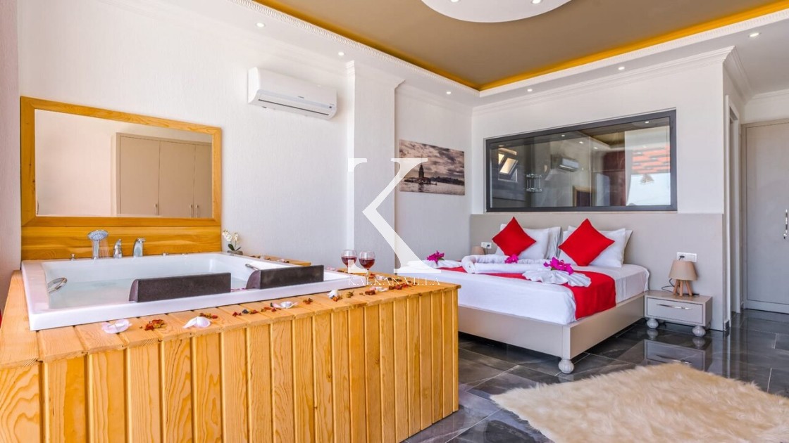 1 adet çift kişilik yatak, klima, oda içi jakuzi, komodin, elbise dolabı, makyaj masası, banyo & WC.