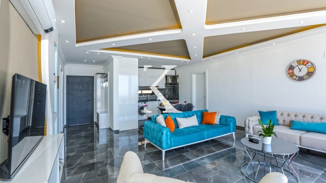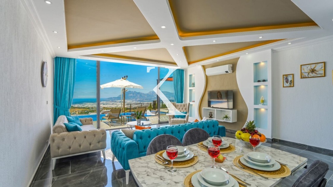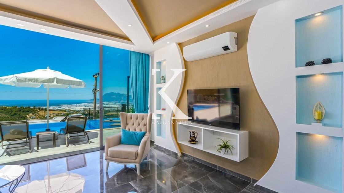 Modern ve lüks dizayna sahip salonda konforlu oturma grubu, TV, DVD oynatıcı, klima ve internet bulunmaktadır. Salondan havuz terasına direkt çıkış vardır.