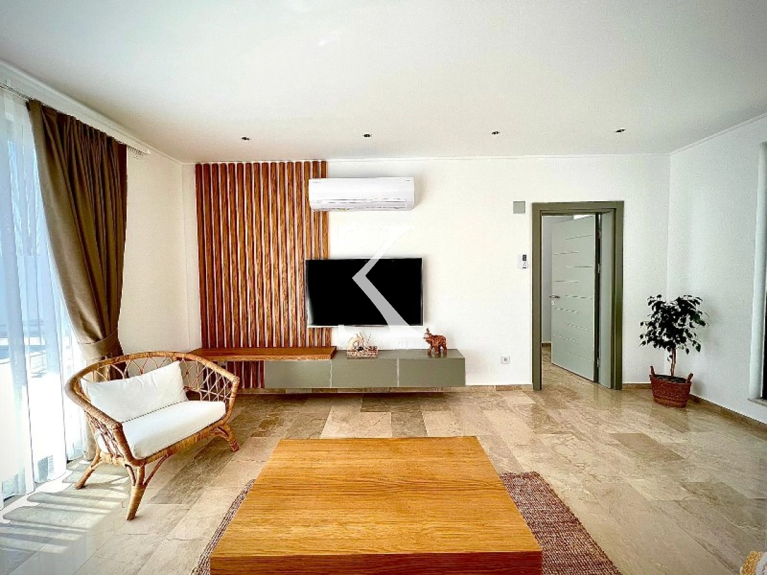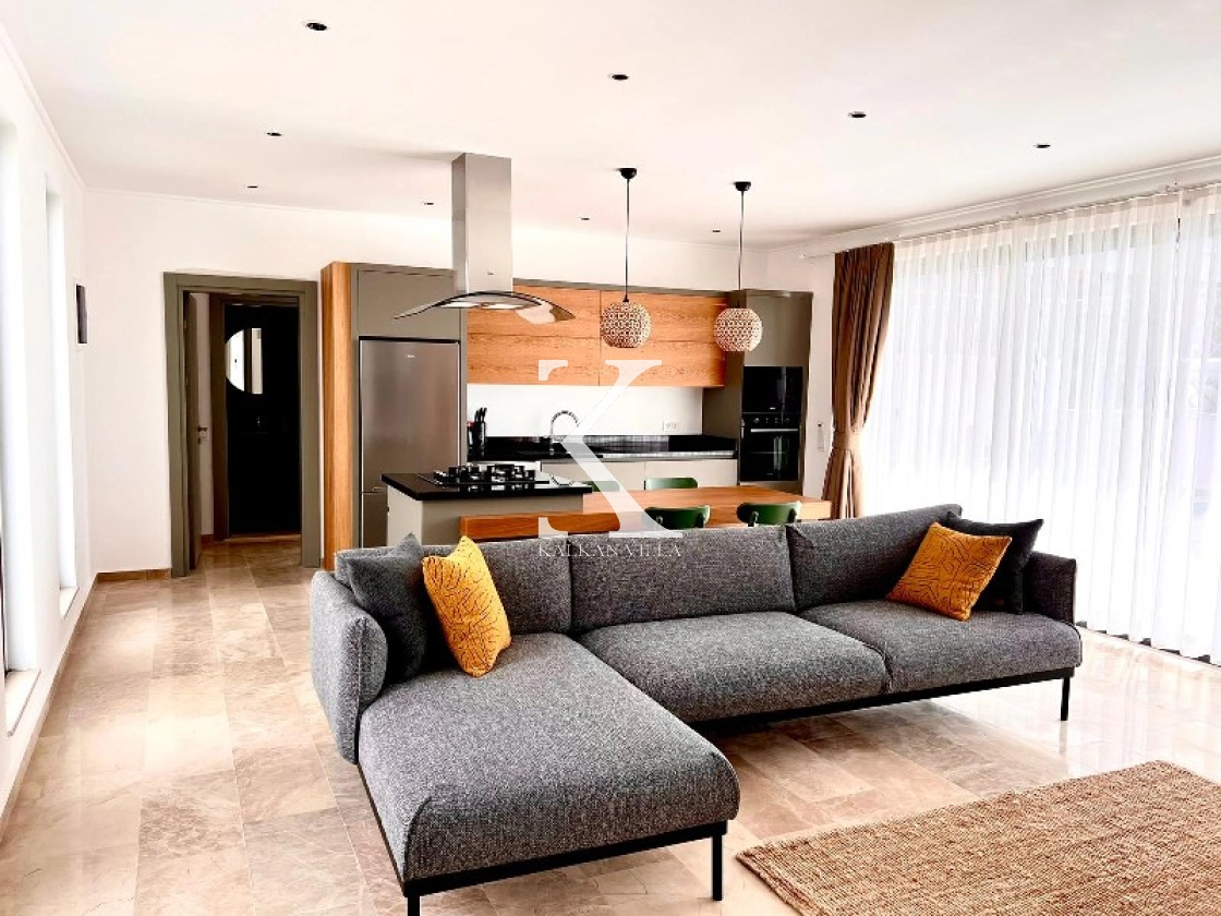 Modern ve sade bir tasarıma sahip iç mekân, konforlu eşyalarla donatılmıştır.