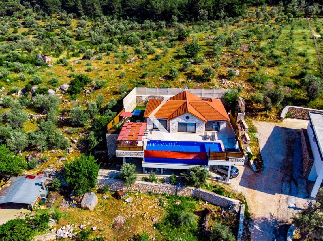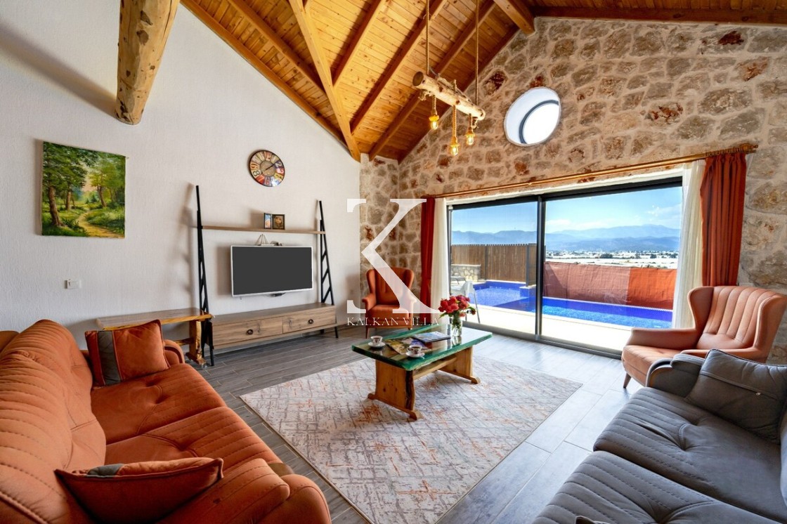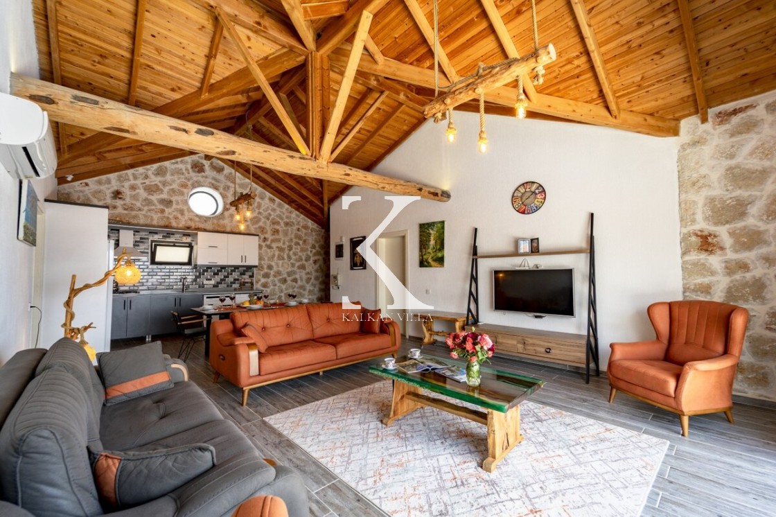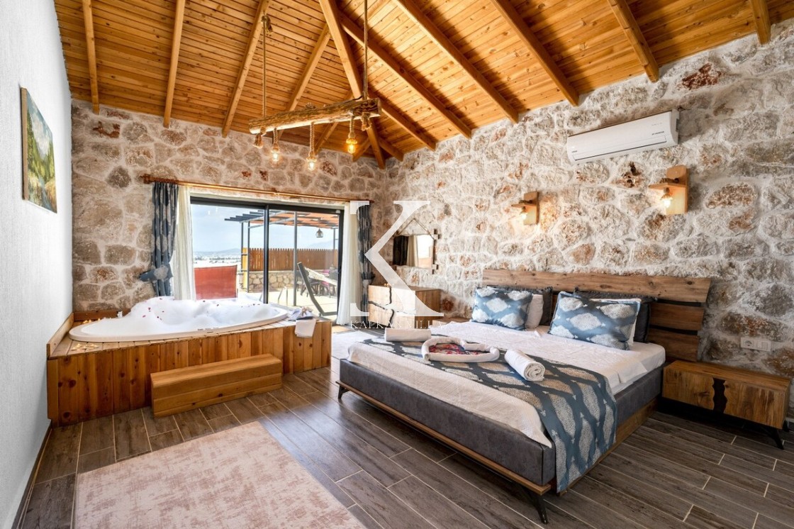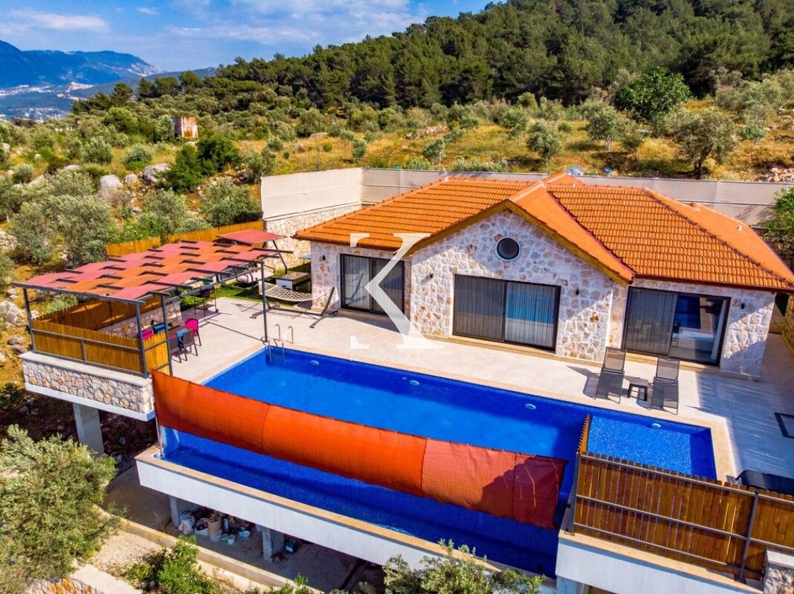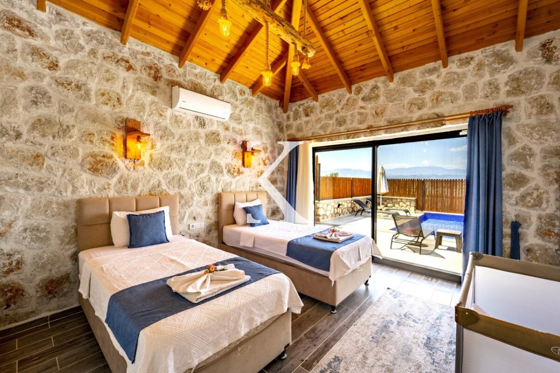 Kalkan Merkez’e araçla 20 dakika mesafede, doğa içinde taş mimarili villa