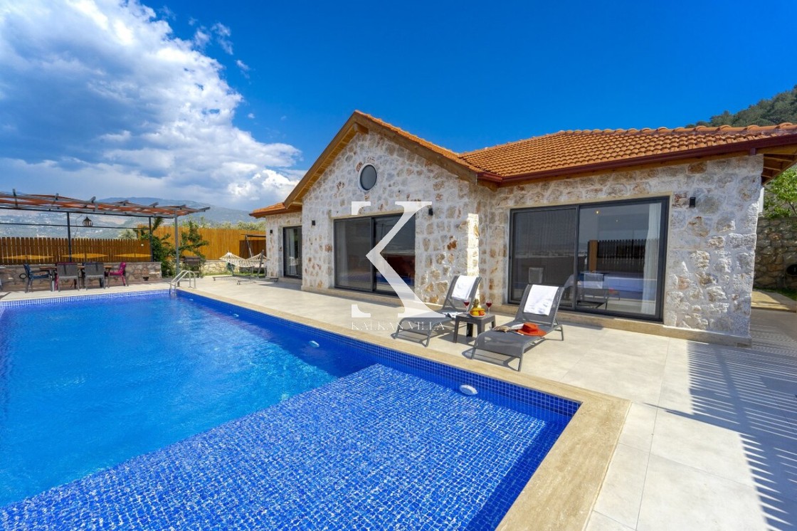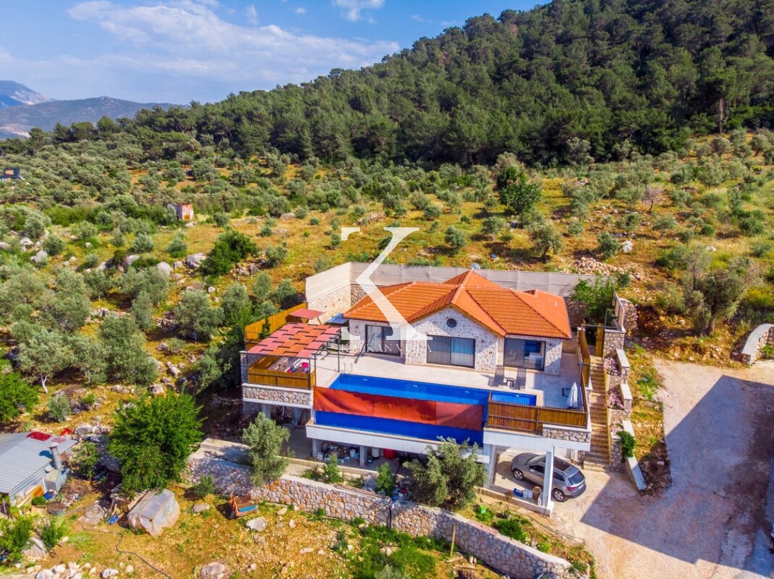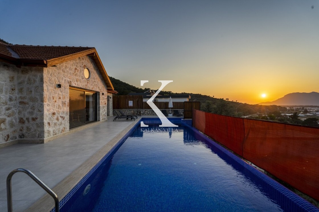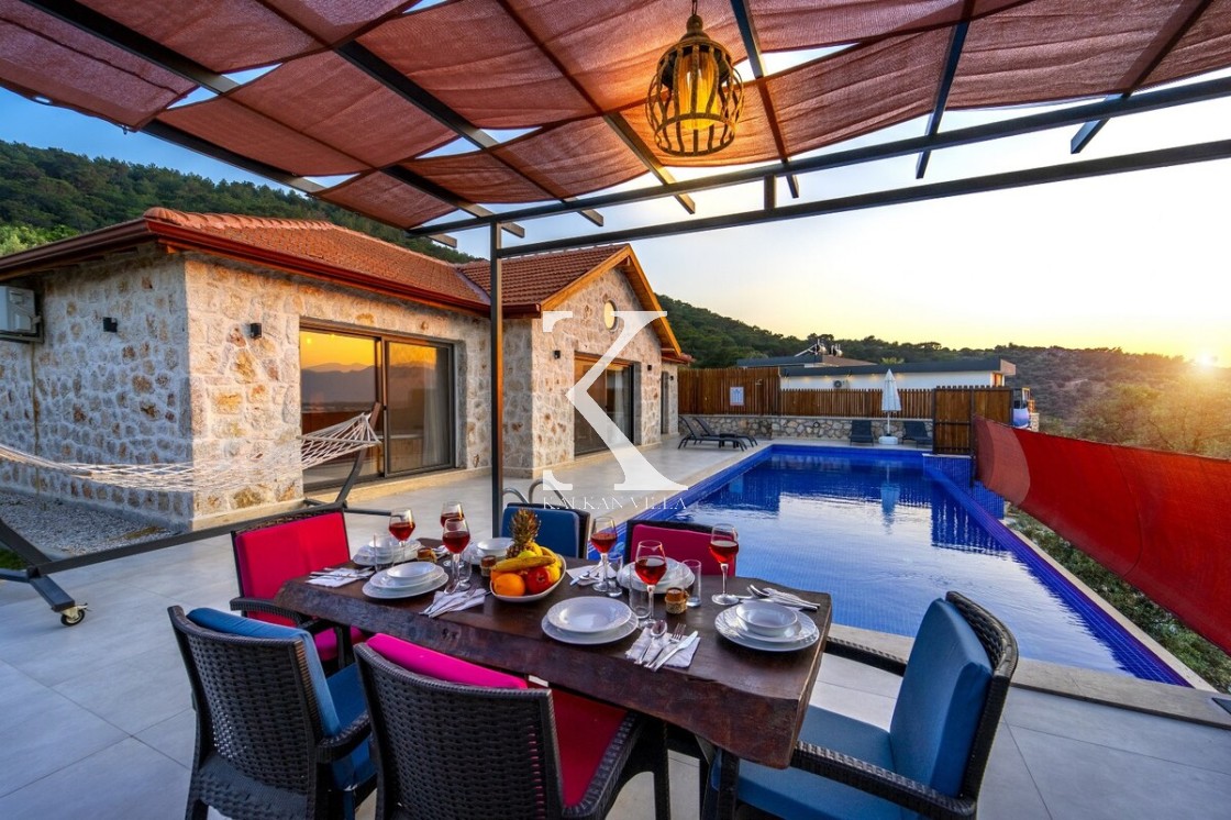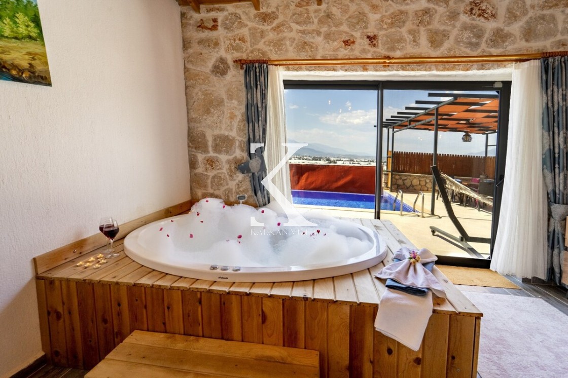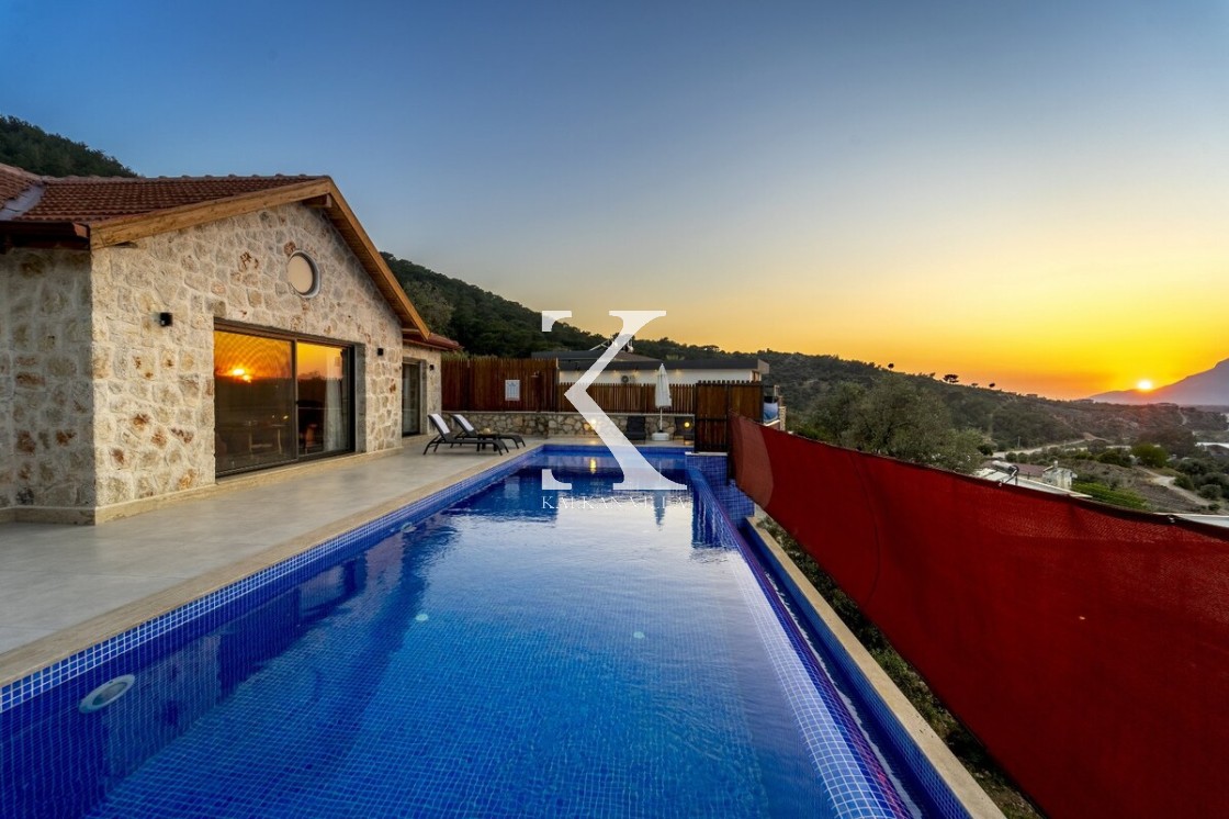 Kalkan Merkez’e araçla 20 dakika mesafede, doğa içinde taş mimarili villa