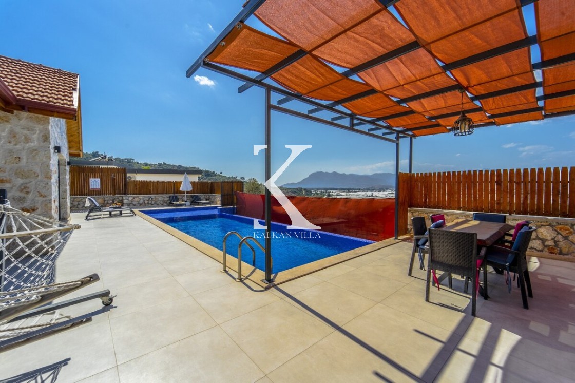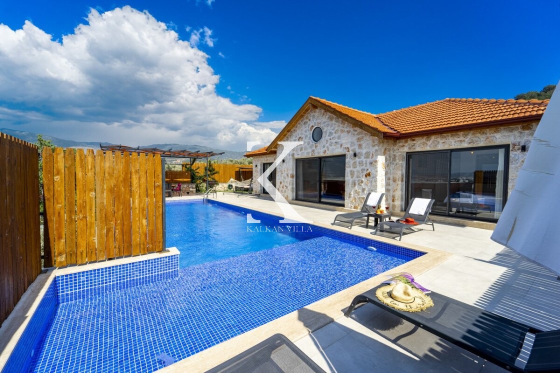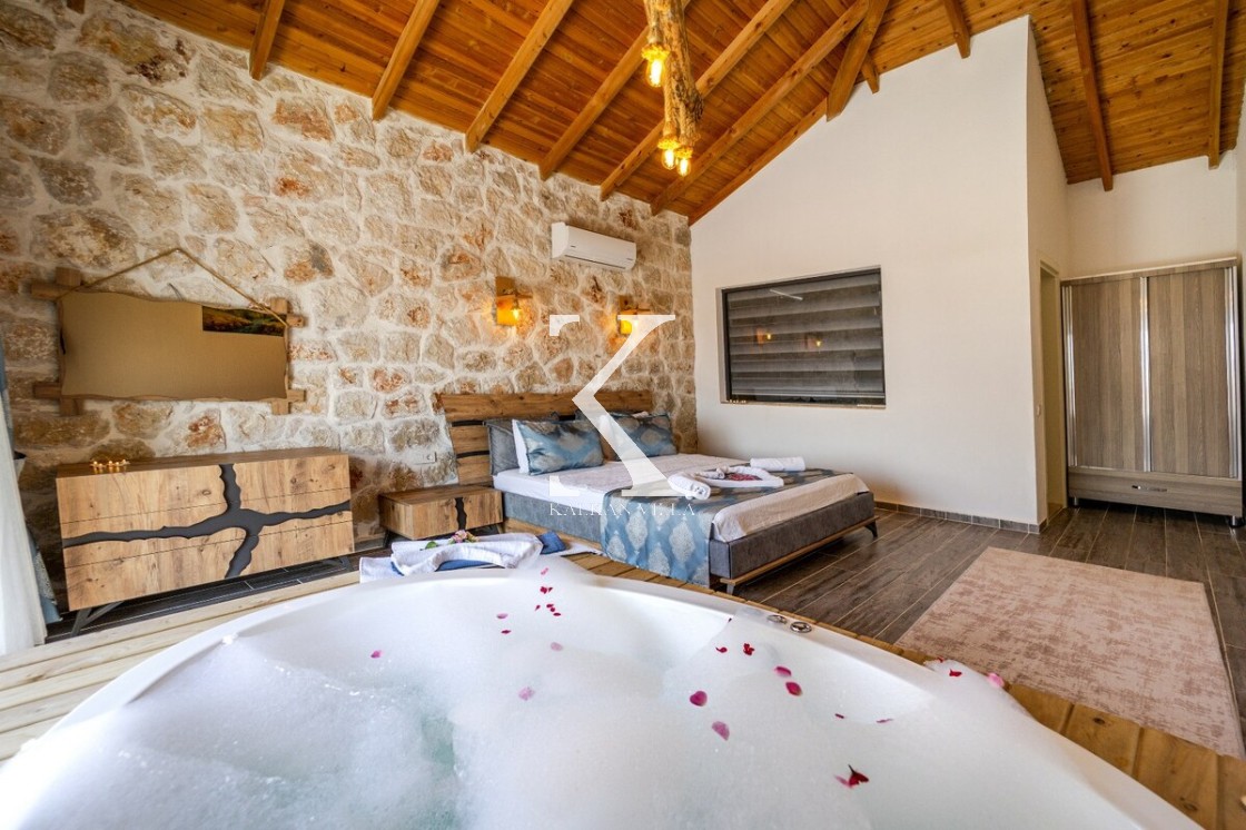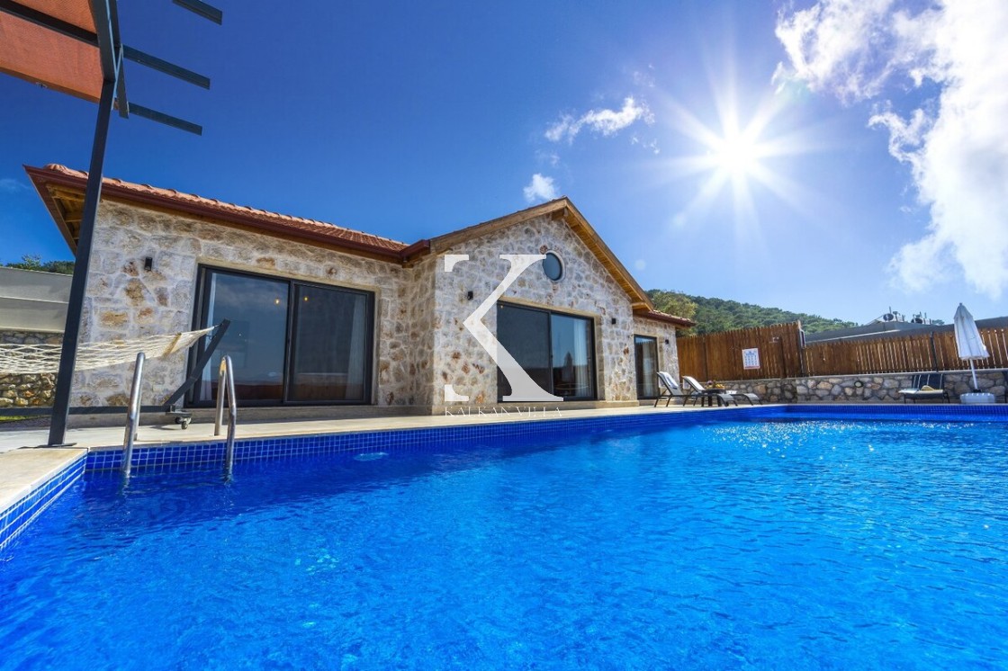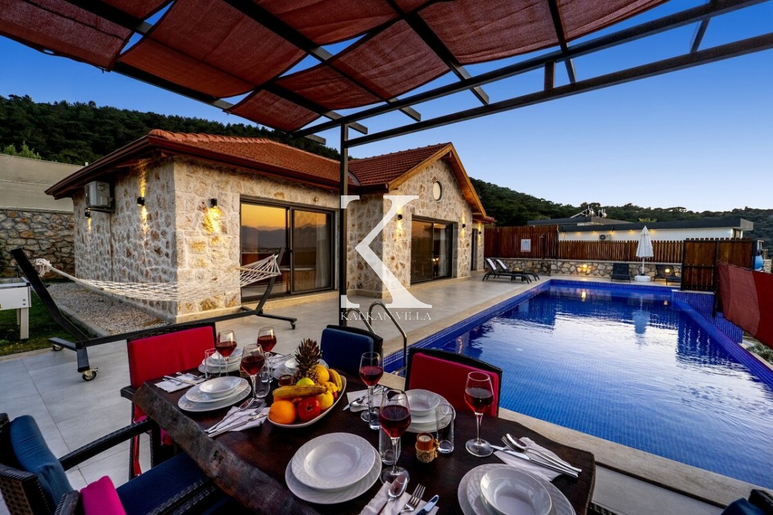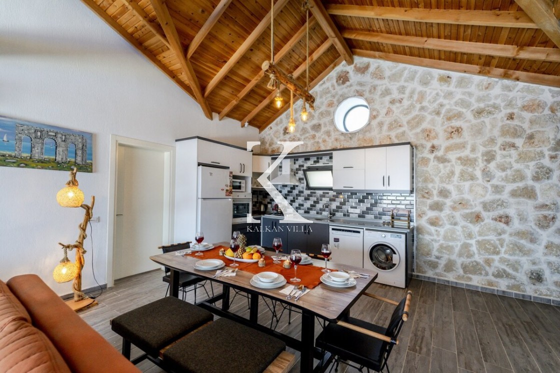 Kalkan Merkez’e araçla 20 dakika mesafede, doğa içinde taş mimarili villa