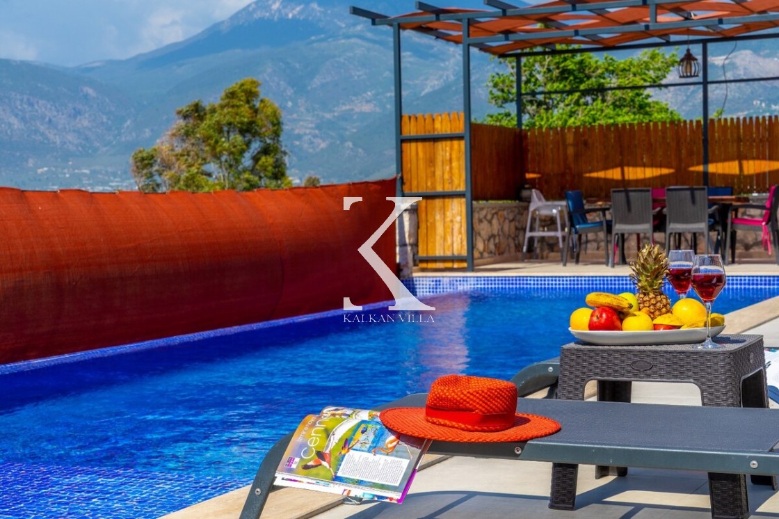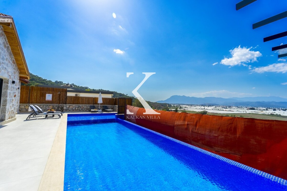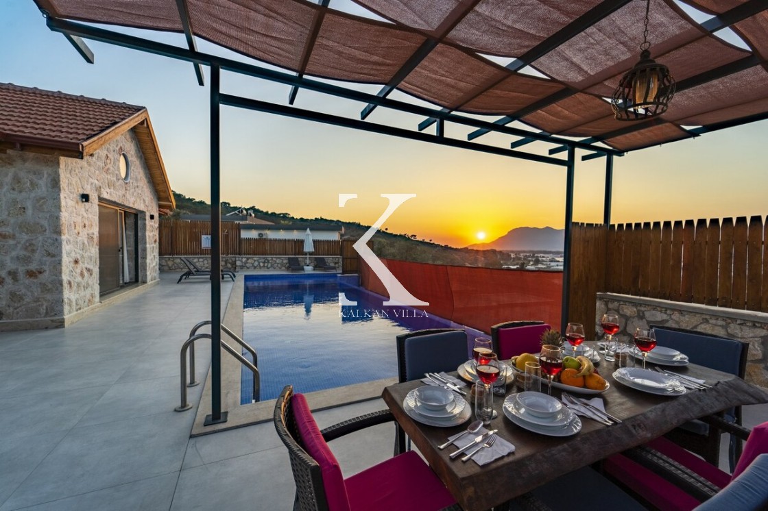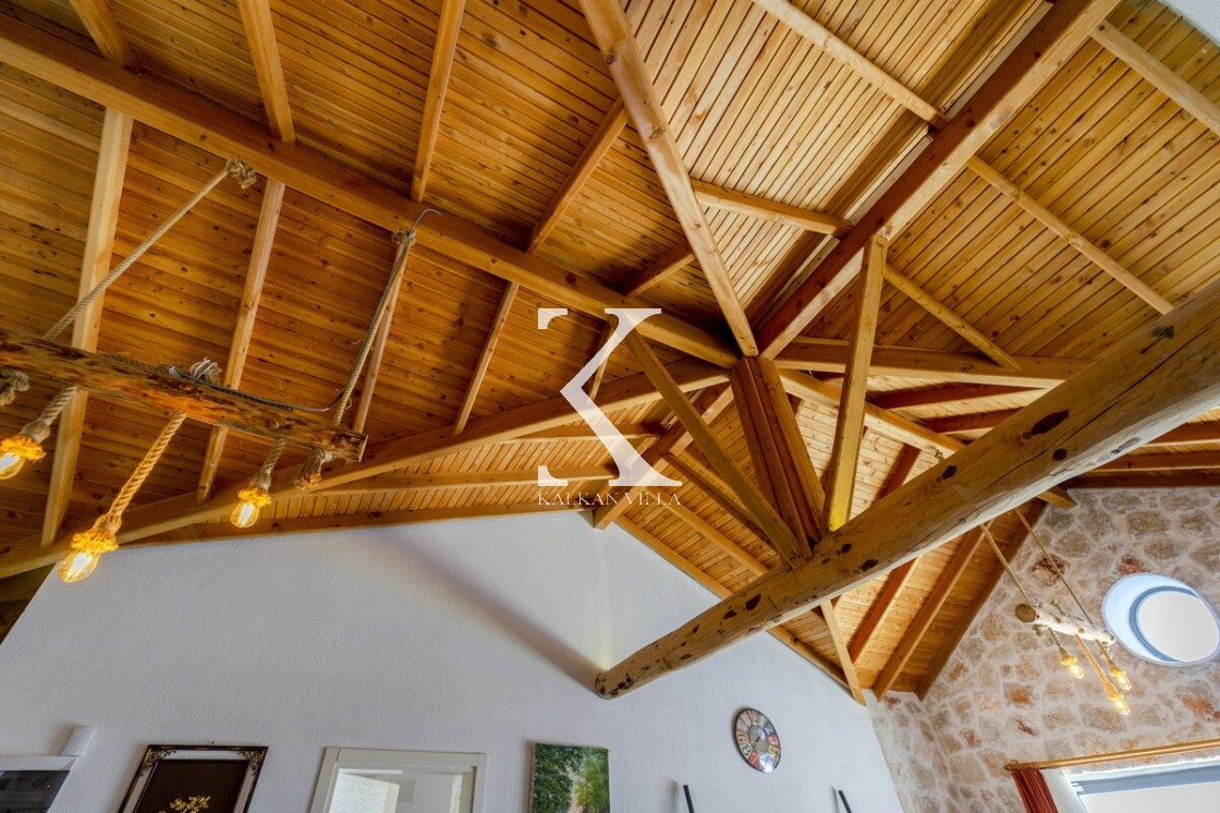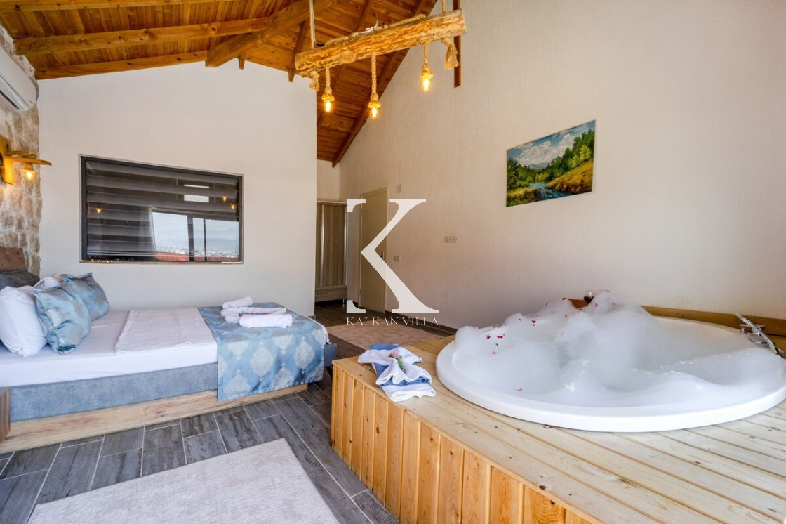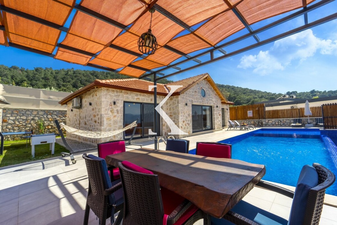 Kalkan Merkez’e araçla 20 dakika mesafede, doğa içinde taş mimarili villa