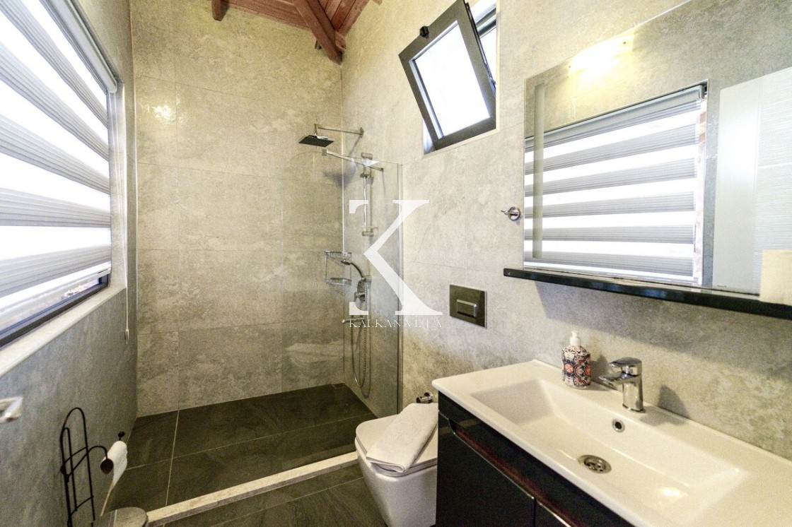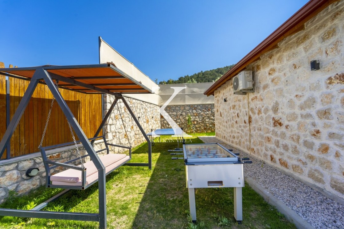 Tamamen taş yapıya sahip mimarisi, özenle seçilmiş lüks ve konforlu mobilyalar ile birleşerek sıcak ve samimi bir atmosfer oluşturur. Korunaklı özel yüzme havuzu, dış gözlerden uzak, mahremiyet odaklı bir tatil imkânı sağlar. Bahçede yer alan masa tenisi ve langırt, sevdiklerinizle keyifli zaman geçirmeniz için düşünülmüştür. Ayrıca çocuk havuzu ile aileler için ekstra konfor sunar.