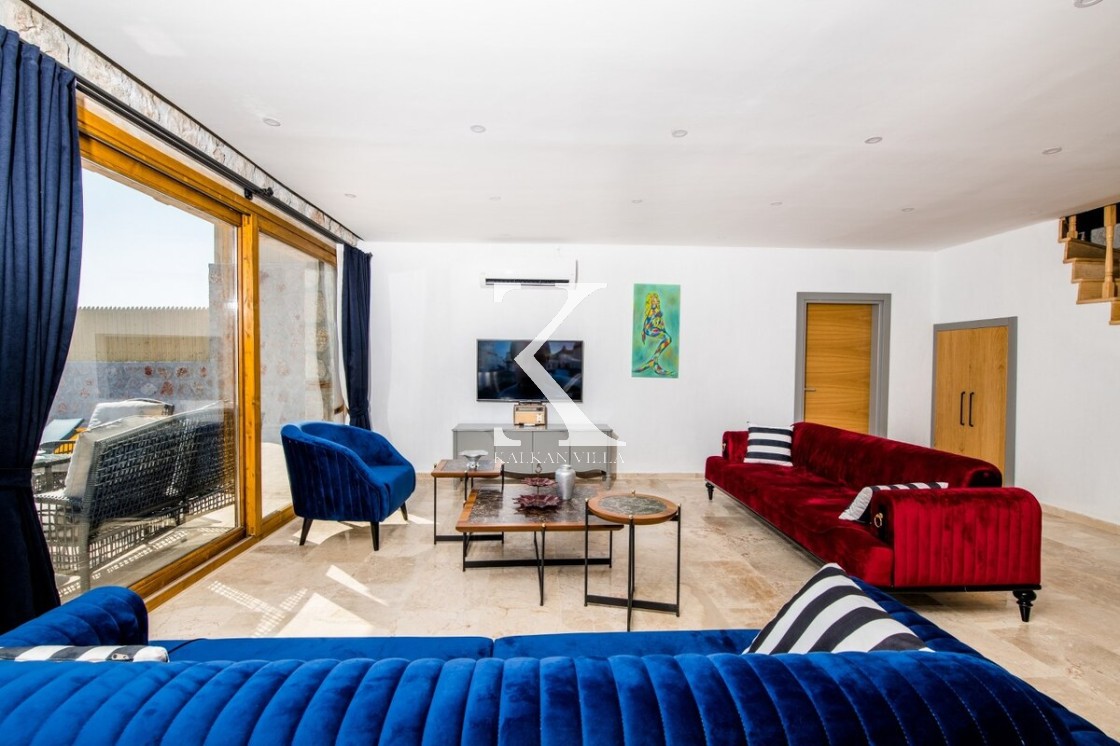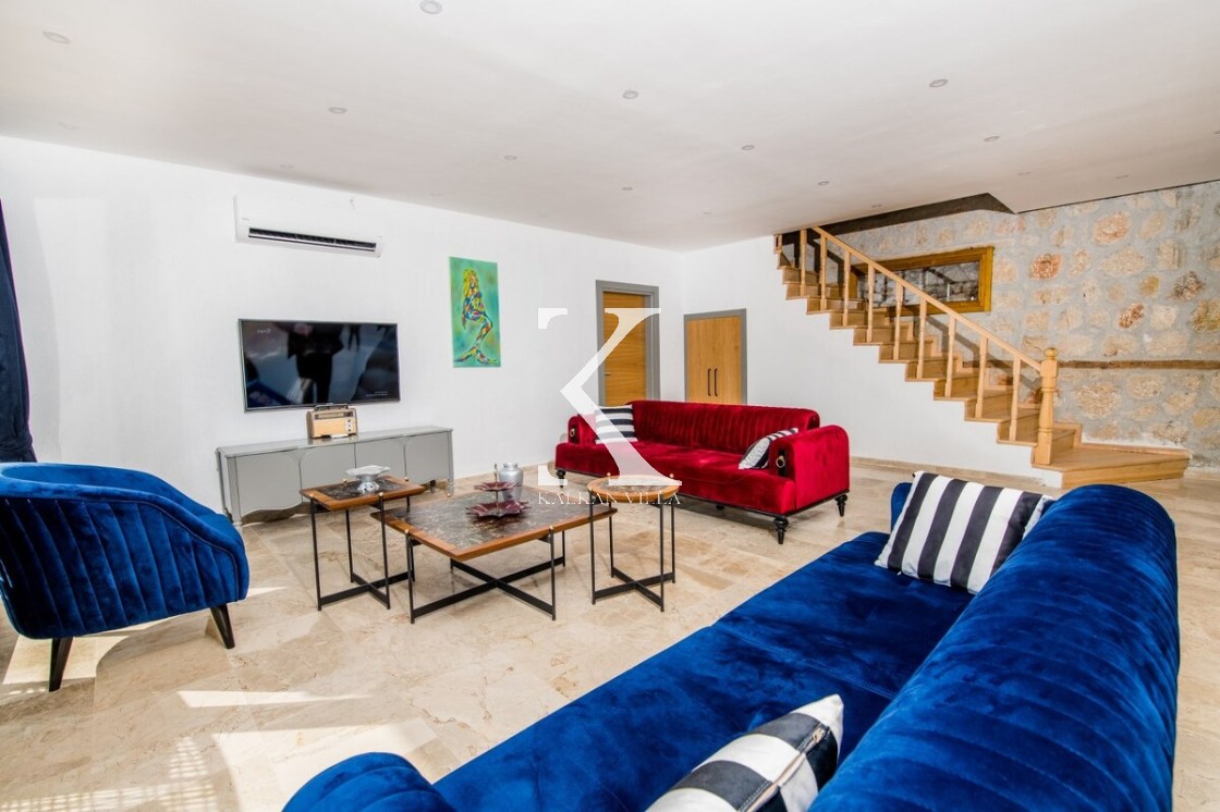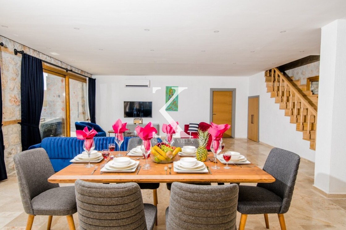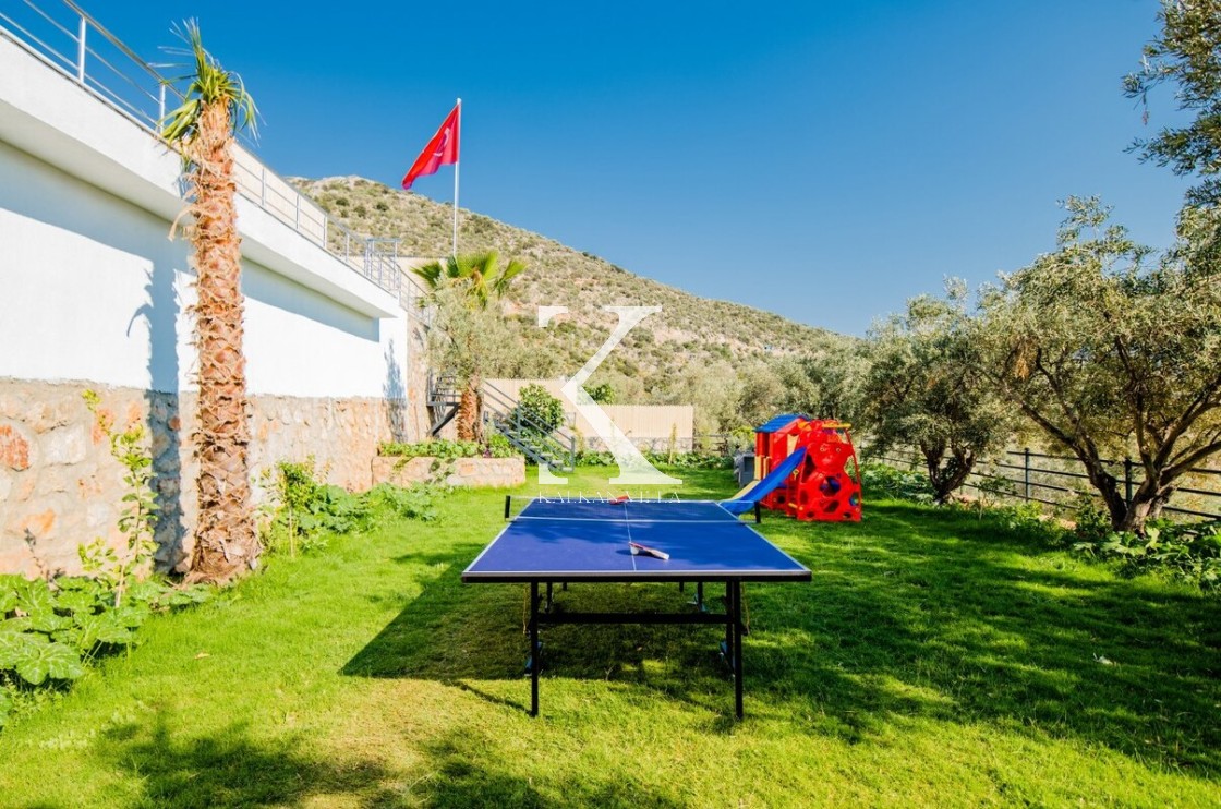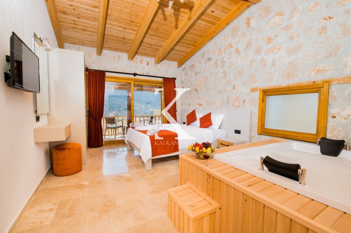 İç mekân, taş ve ahşap dokusuna uyumlu şık mobilyalarla dekore edilmiştir. Bahçe bölümünde salıncak, masa tenisi ve çocuk oyun alanı gibi eğlenceli detaylar bulunmakta olup, misafirlerimizin tatilleri boyunca rahat ve keyifli zaman geçirebilmeleri için her şey düşünülmüştür. Villamızın 3 yatak odasından 2 tanesinde jakuzi yer almaktadır.
