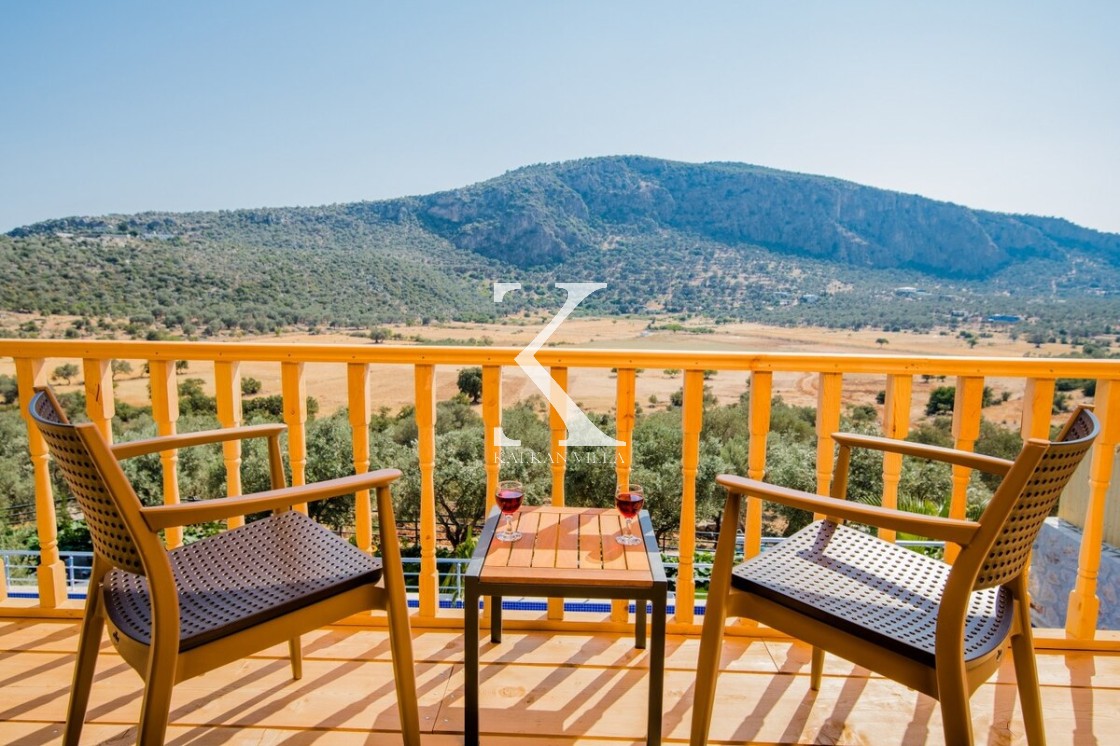 Havuz ve doğa ile kısmi deniz manzarasına sahip geniş salonda: