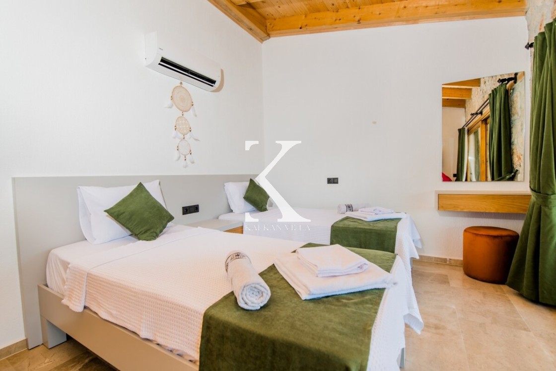Villa Gıygılı 1, Kalkan Ulugöl Bölgesi’nde, doğa içerisinde taş ve ahşap mimarisiyle öne çıkan, 3 yatak odalı ve 6 kişilik konaklama kapasiteli özel bir tatil villasıdır. Kalkan merkeze ve en yakın plaja yaklaşık 3 km mesafede yer alan villa, doğa manzarası eşliğinde geniş ve ferah bir bahçeye sahiptir.