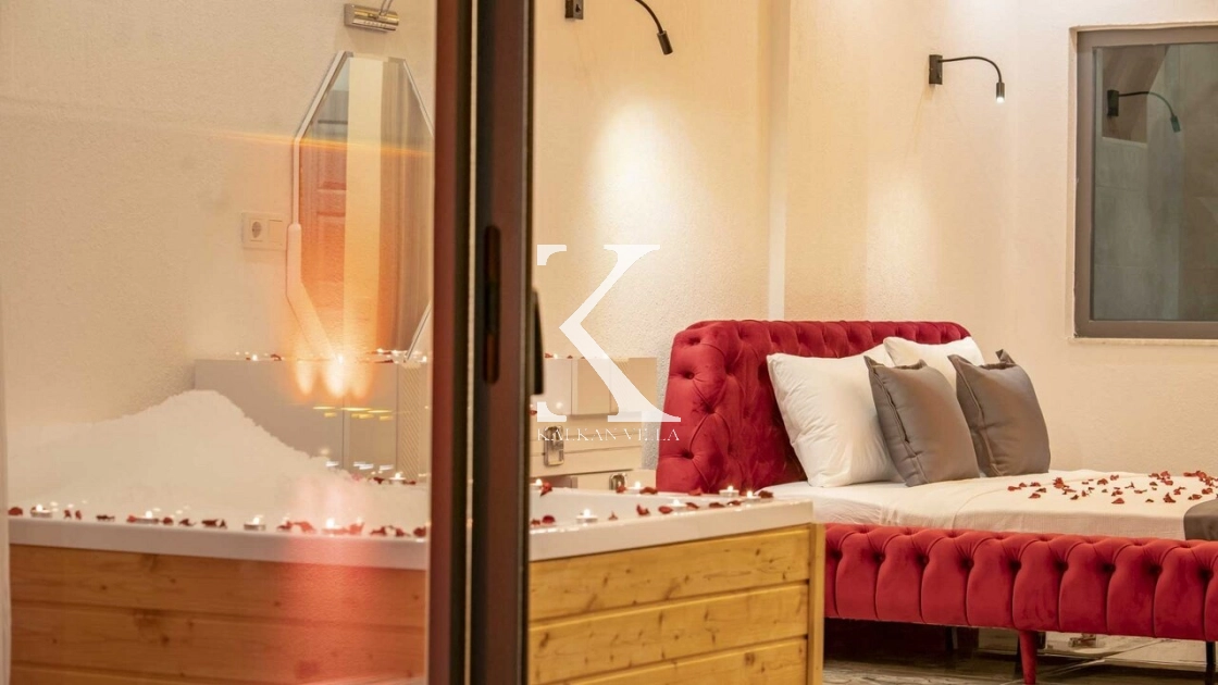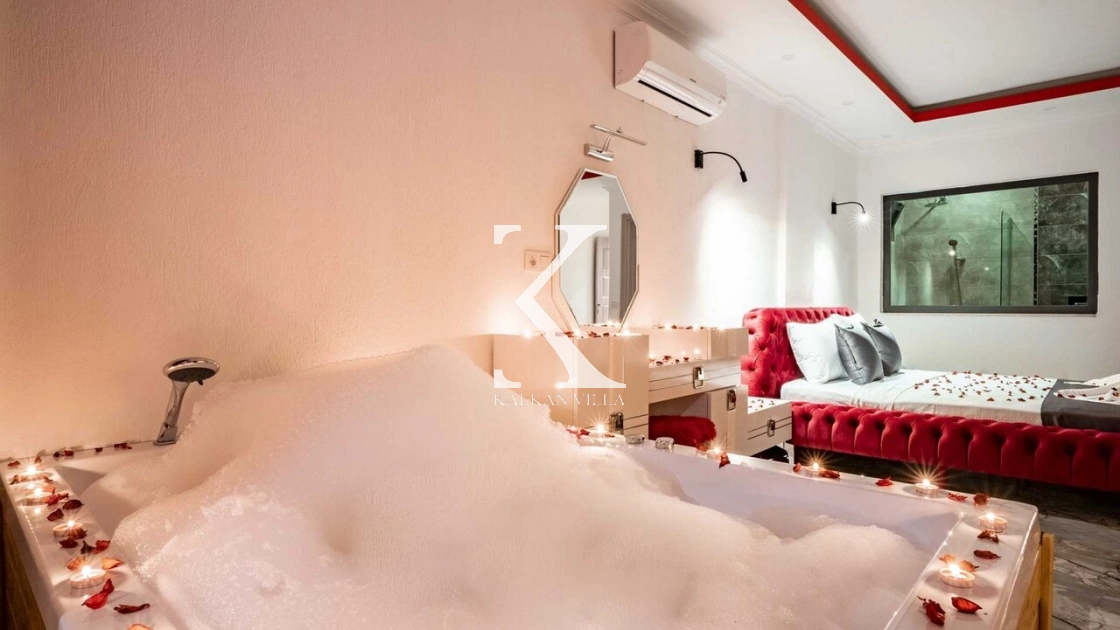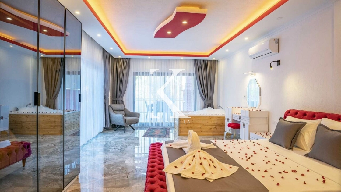 Çift kişilik yatak, balkon, elbise dolabı, komodin, jakuzi, klima, banyo ve tuvalet bulunmaktadır.