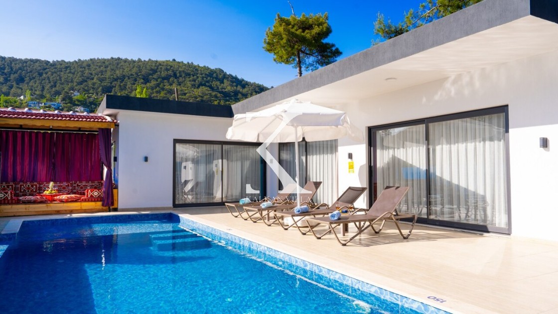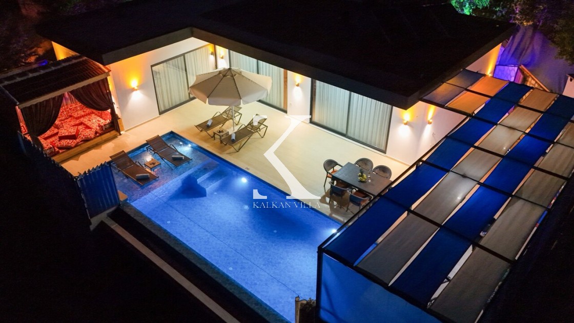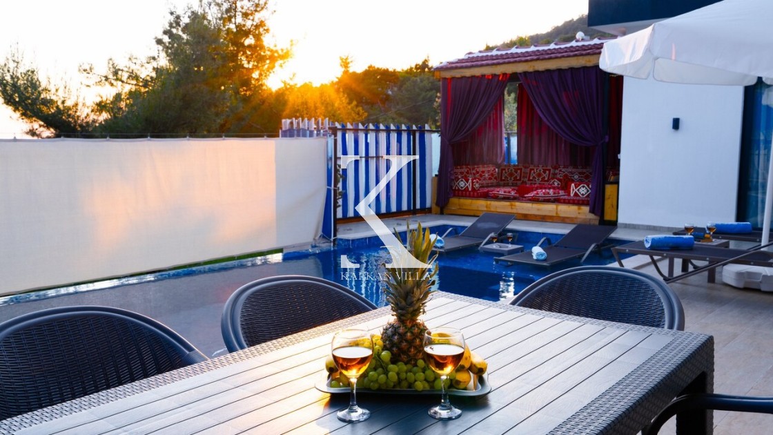Villamızın havuz terasının yan kısımları korunaklıdır; bu sayede dışarıdan görünmeyen, rahatsız edilmeden tatilin tadını çıkarabileceğiniz bir ortam sunar. Bu özelliğiyle, muhafazakâr aileler tarafından tercih edilen villalar arasında yer almaktadır.