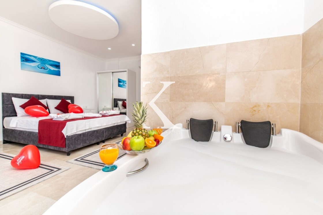1 adet çift kişilik yatak, makyaj masası, elbise dolabı, klima, LCD TV, komodin, jakuzi, banyo ve tuvalet bulunmaktadır. Balayı ve romantik konaklamalar için oldukça uygundur.