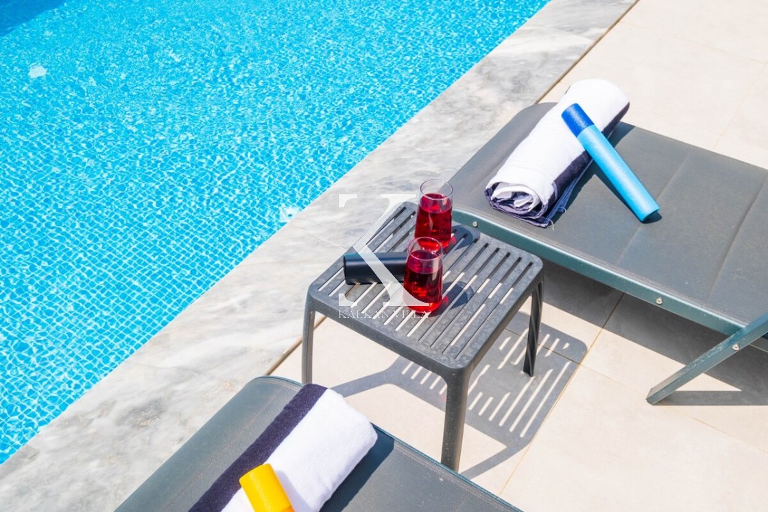 Modern & ferah: konforlu oturma grubu, TV, DVD oynatıcı, klima, internet; havuz terasına direkt çıkış.