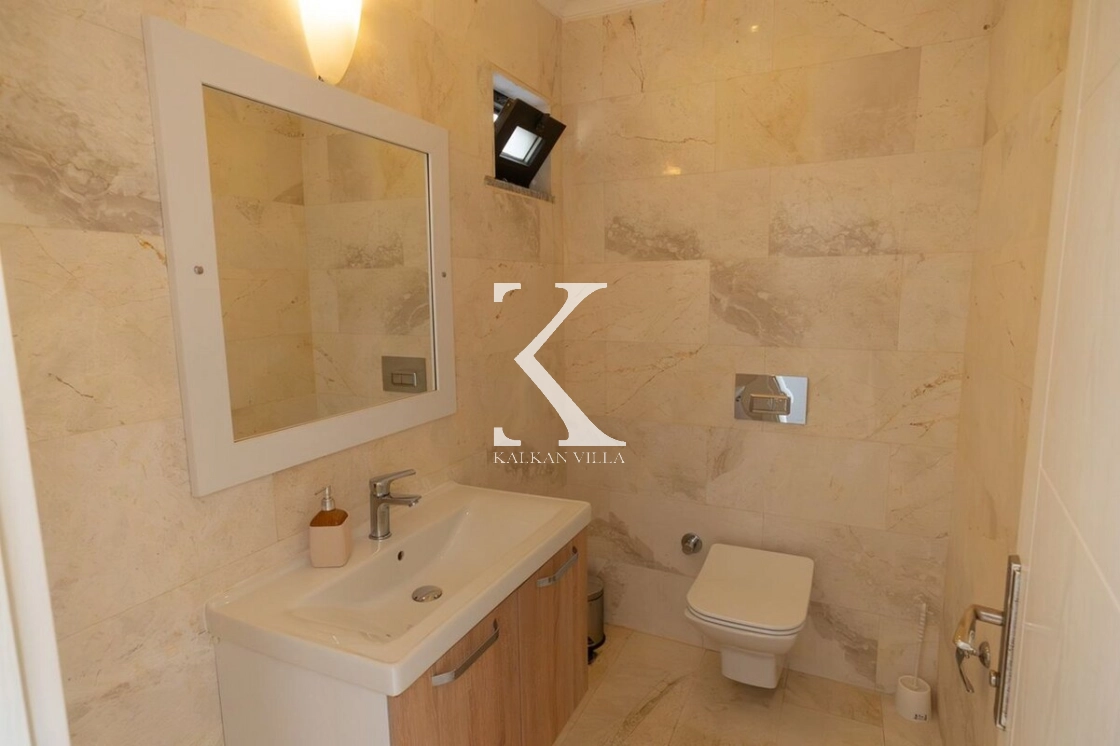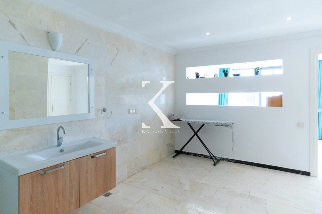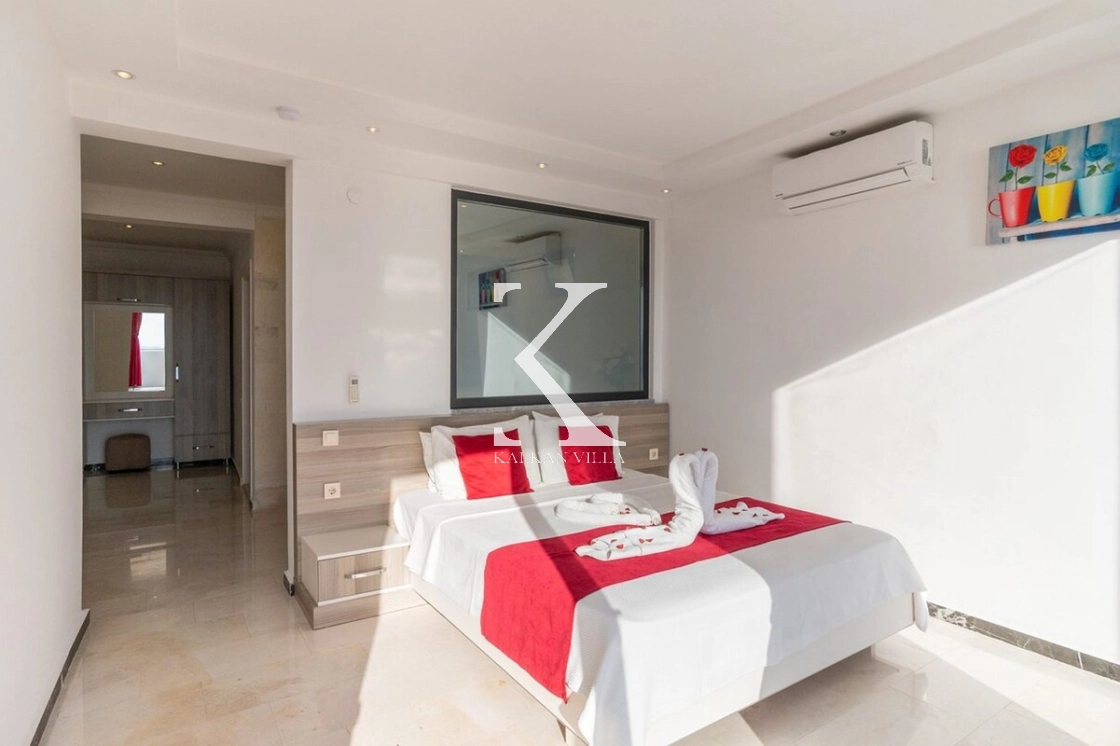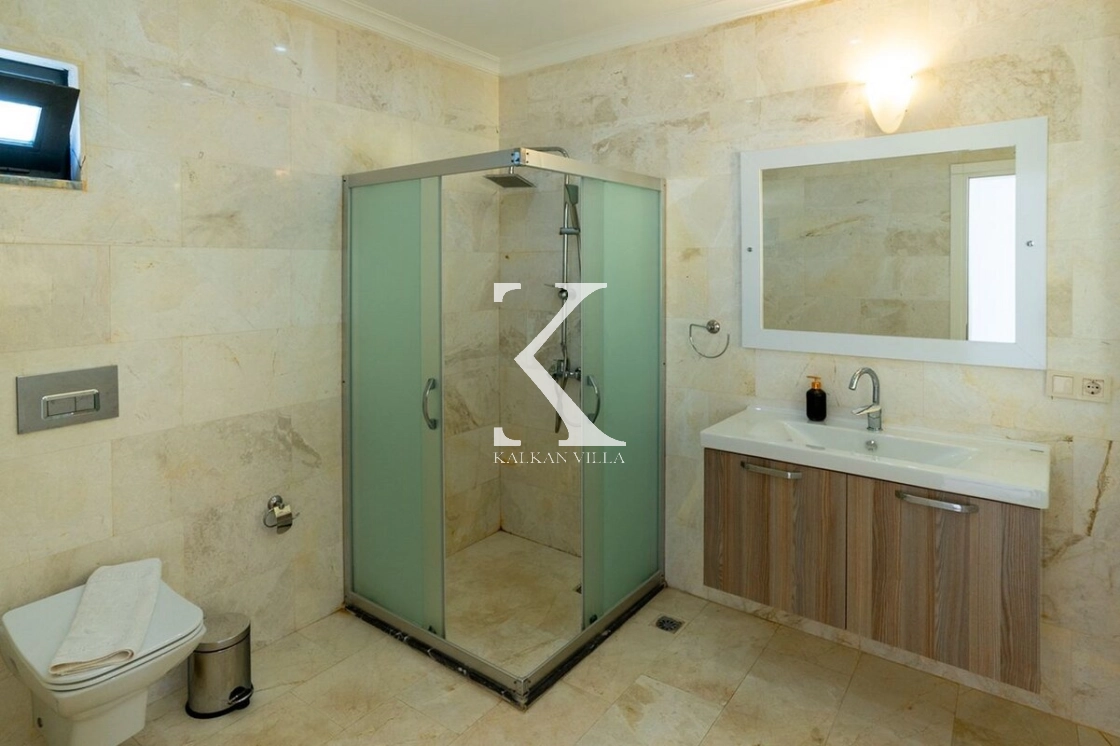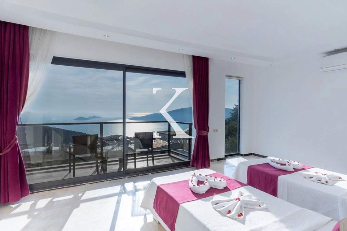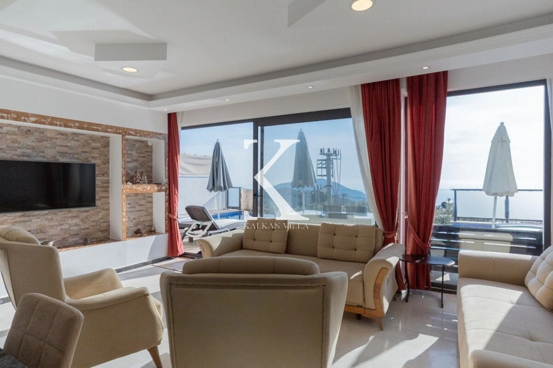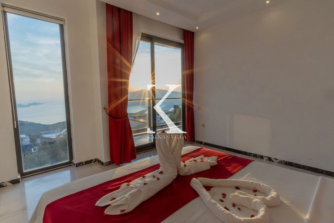 Modern ve konforlu eşyalarla dekore edilen villa, ferah ve aydınlık yaşam alanları sayesinde misafirlerine rahat bir tatil ortamı sunmaktadır. Villanın geniş pencerelerinden Kalkan’ın büyüleyici deniz manzarası ve adalar manzarası izlenebilir. Bu eşsiz manzara, tatiliniz boyunca huzurlu ve keyifli bir atmosfer oluşturur.
