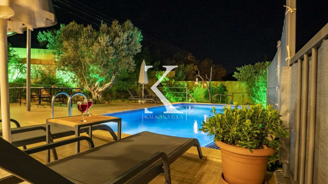 Villa Gri Ulugöl, Kalkan’ın yemyeşil Ulugöl Bölgesi’nde, doğa ile iç içe huzurlu bir konumda yer alan, 2 yatak odalı ve 4 kişi kapasiteli şık bir kiralık villadır. Modern ve konforlu biçimde döşenmiş iç mekânı, korunaklı havuz terası ve yeşillikler içindeki bahçesiyle balayı çiftleri, çekirdek aileler ve küçük arkadaş grupları için ideal bir tatil imkânı sunar.