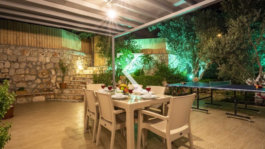 Bahçede: özel yüzme havuzu, barbekü, salıncak, oturma ve güneşlenme alanları