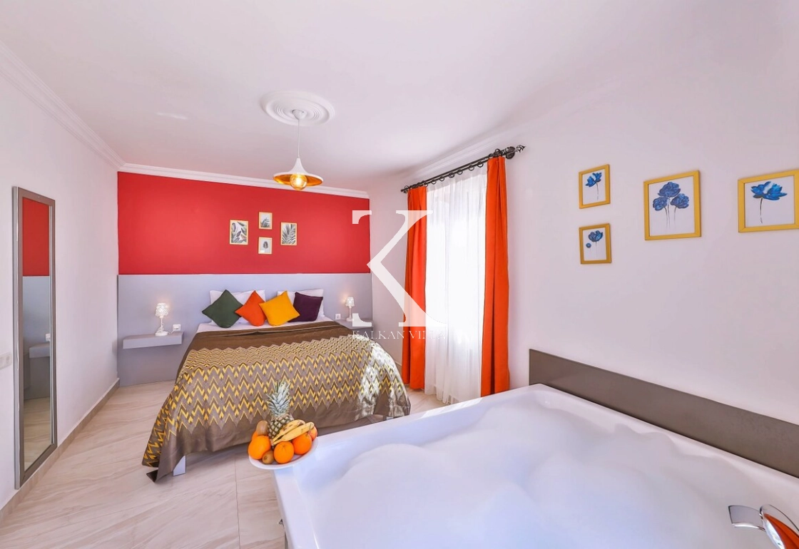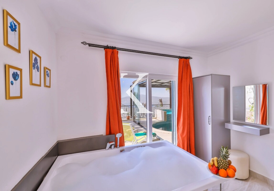 Villanın korunaklı özel yüzme havuzu, dış gözlerden uzak bir tatil imkânı sunarken; eşsiz deniz ve gün batımı manzarası eşliğinde keyifli anlar yaşamanıza olanak tanır. Yatak odasında yer alan jakuzi, tatilinize romantik ve rahatlatıcı bir dokunuş katmaktadır.