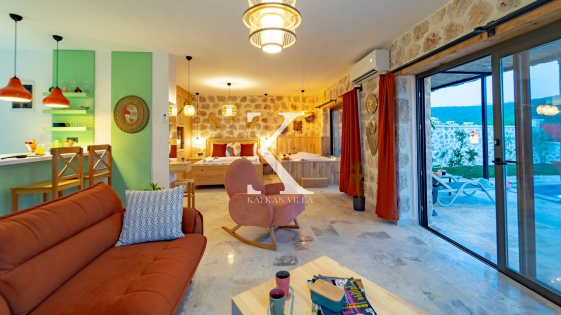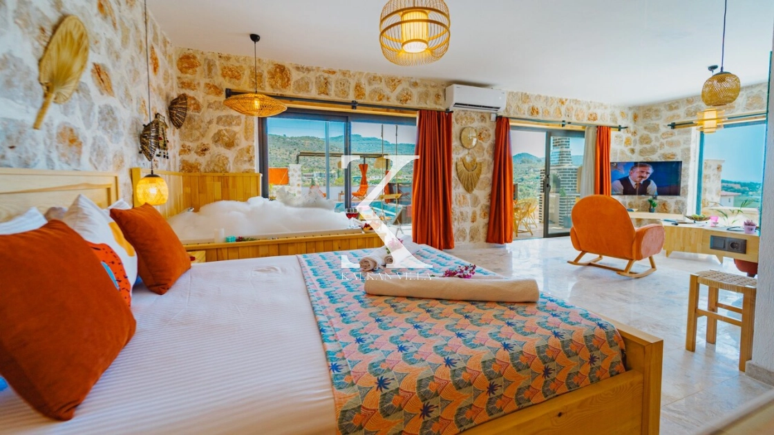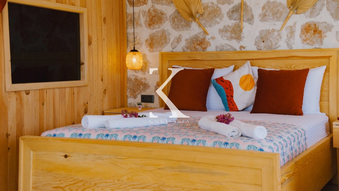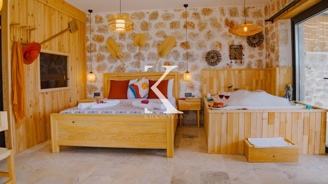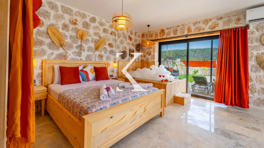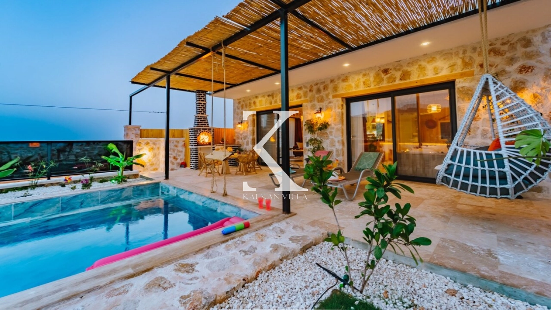 Villa Hanedan Luxury, Kalkan’ın Patara Bölgesi’nde, doğa ile iç içe konumlanmış; taş ve ahşap mimarisi, bohem tarz dekorasyonu ve lüks detaylarıyla öne çıkan özel bir tatil villasıdır. 1 yatak odalı ve 2 kişilik konaklama kapasitesi ile özellikle balayı çiftleri ve romantik tatil arayan misafirler için ideal bir seçenektir.