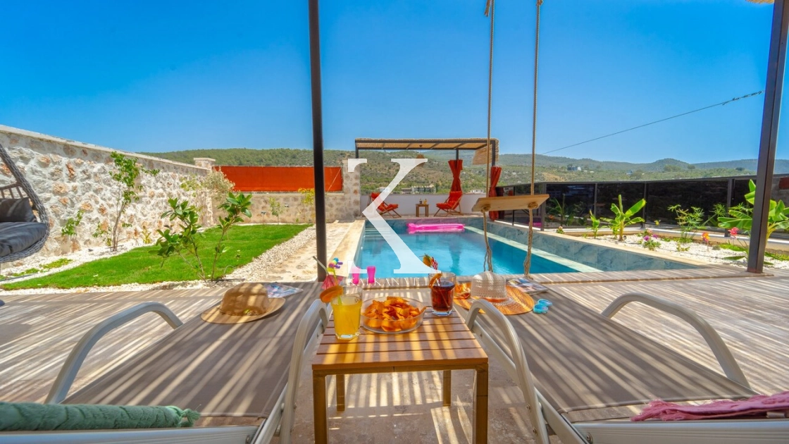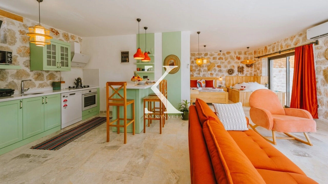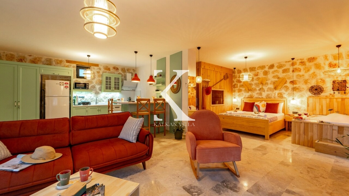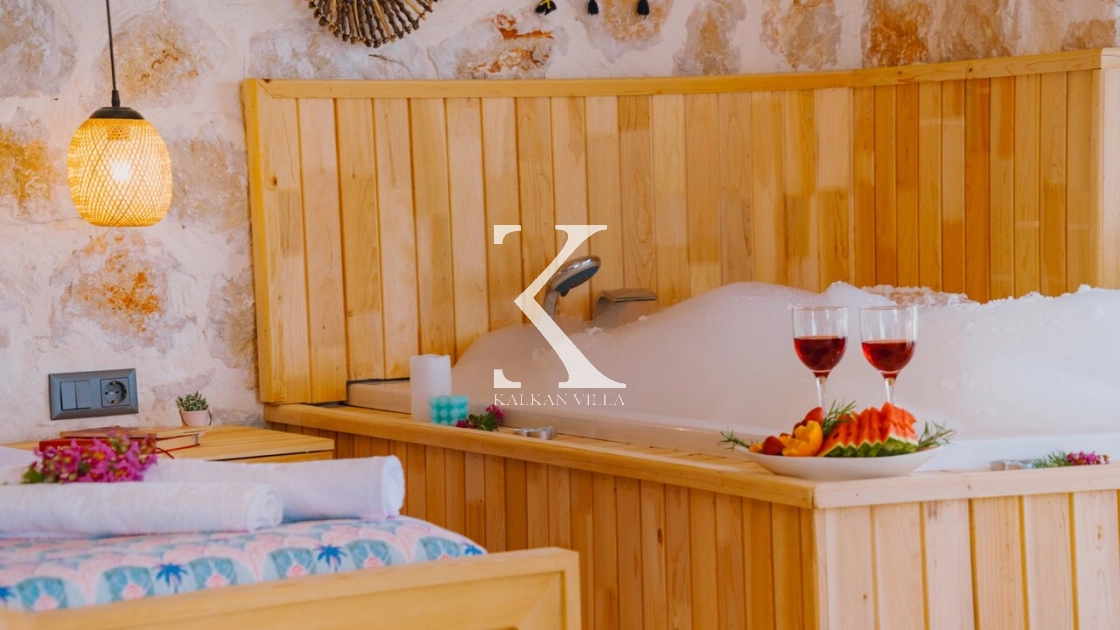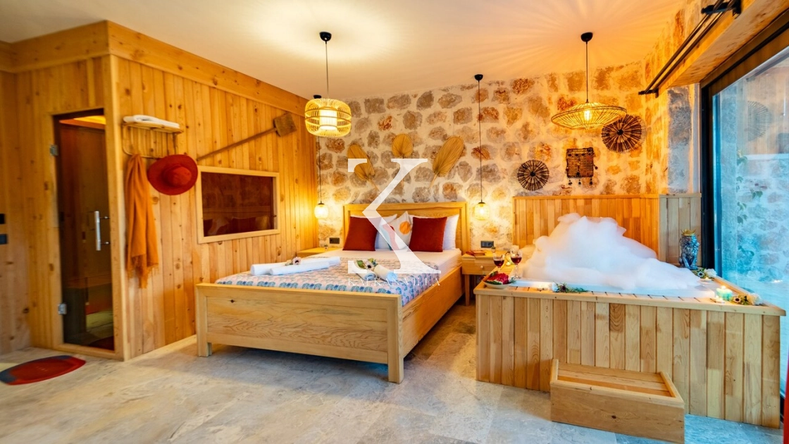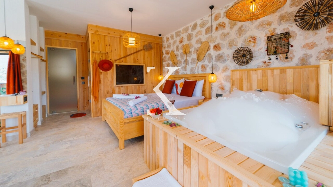 Villa Hanedan Luxury, Kalkan’ın Patara Bölgesi’nde, doğa ile iç içe konumlanmış; taş ve ahşap mimarisi, bohem tarz dekorasyonu ve lüks detaylarıyla öne çıkan özel bir tatil villasıdır. 1 yatak odalı ve 2 kişilik konaklama kapasitesi ile özellikle balayı çiftleri ve romantik tatil arayan misafirler için ideal bir seçenektir.