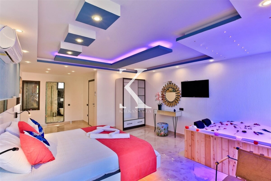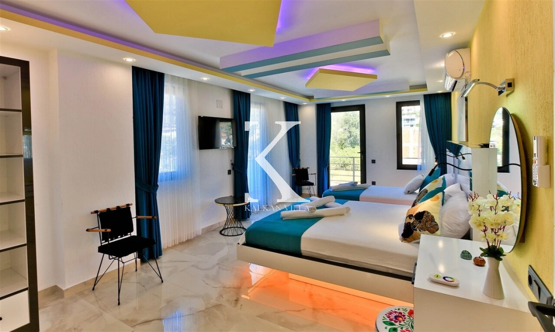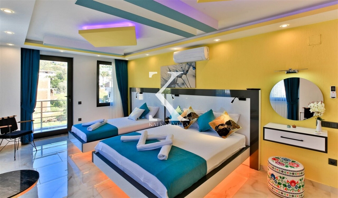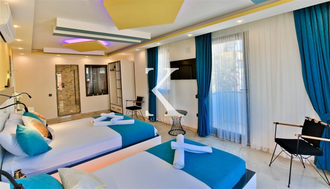 Villa Hanedan Patara Duo, Kalkan’ın Patara Bölgesi’nde, doğa ile iç içe huzurlu bir atmosferde konumlanan, 2 yatak odalı ve 5 kişilik konaklama kapasitesine sahip özel bir kiralık villadır. Modern ve renkli detaylarla dekore edilen iç mekânı sayesinde hem çekirdek aileler hem de balayı çiftleri için konforlu ve keyifli bir tatil seçeneği sunmaktadır.