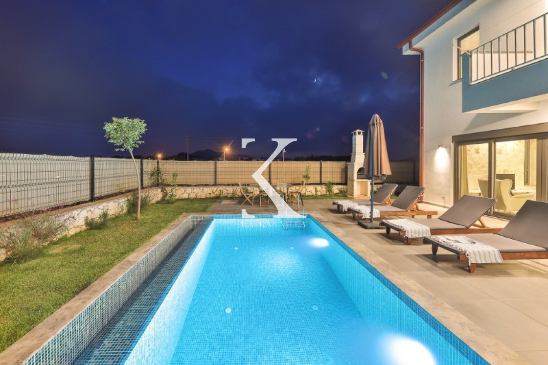 Villanın geniş bahçesinde; sıcaktan bunaldığınızda serinleyebileceğiniz özel havuz, şezlonglar, oturma köşesi, yemek masası ve barbekü alanı yer alır. Sevdiklerinizle mangal başında keyifli akşam yemekleri ve uzun sohbetler için ideal bir atmosfer sunar.